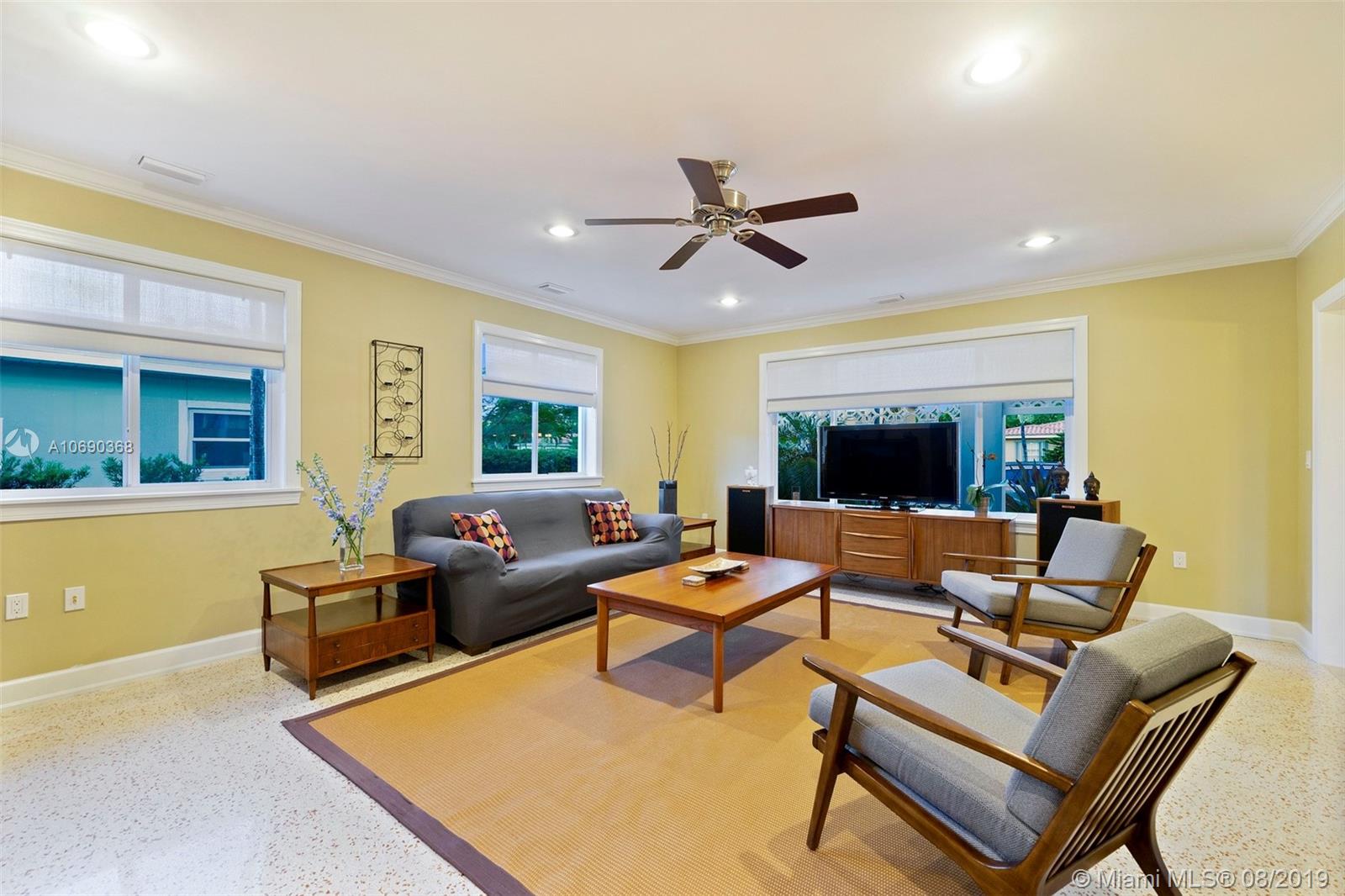Stunningly beautiful home on Treasure Island in North Bay Village. Immaculate and extensively remodeled to meet the highest standards. The home is on a lushly landscaped lot with lighting and coral stone paved circular driveway. Island kitchen features open floorplan with soft close solid wood cabinetry, under cabinet lighting, granite countertops, top of the line stainless steel appliances and gas range. Large living room has built-in bar with commercial beverage refrigerator. Master bedroom and spa bath have stunning details. Features include solid strand bamboo and terrazzo floors, upgraded electrical, recessed lighting, solid core doors, new ductwork and AC. Entertain outdoors, the travertine paved patio is your own private oasis. This is a special place you will want to call home.