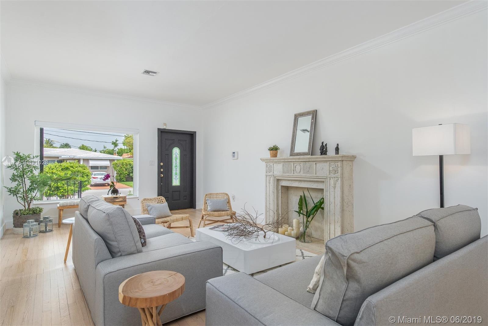 Completely updated home in Surfside. All work done with permits up to City code. Open floor plan - around 2,000 sft including converted garage. Home features 3 bedrooms, 3 bathrooms, family room that opens to backyard and can be used as 4th bedroom. High ceilings, Hurricane impact windows and doors, gorgeous original bleached wood floors. Kitchen w/ quartz counter tops and stainless steel appliances. Beautiful bathrooms with bathtub or shower. Large fenced backyard secluded with lush vegetation with plenty of space to add a large Pool. Steps To the Beach, Community Center, Tennis Courts, Parks, Houses of Worship, Schools, Bal Harbor Shops, and so much more.