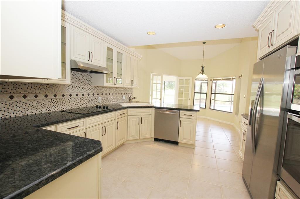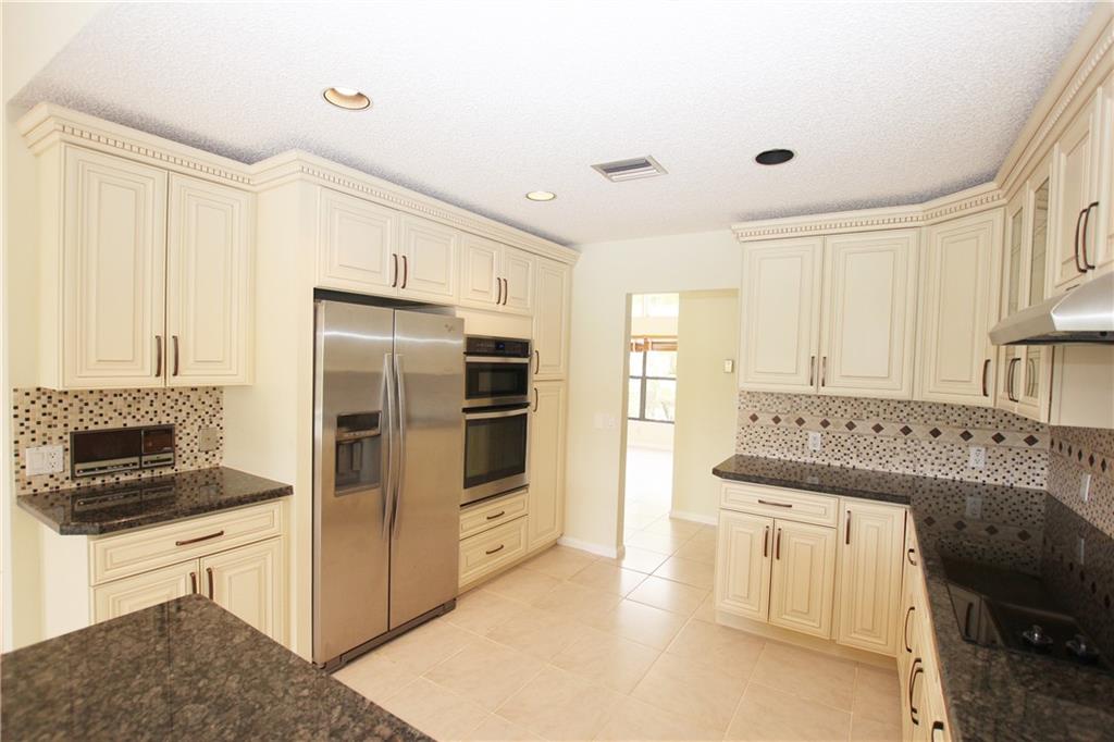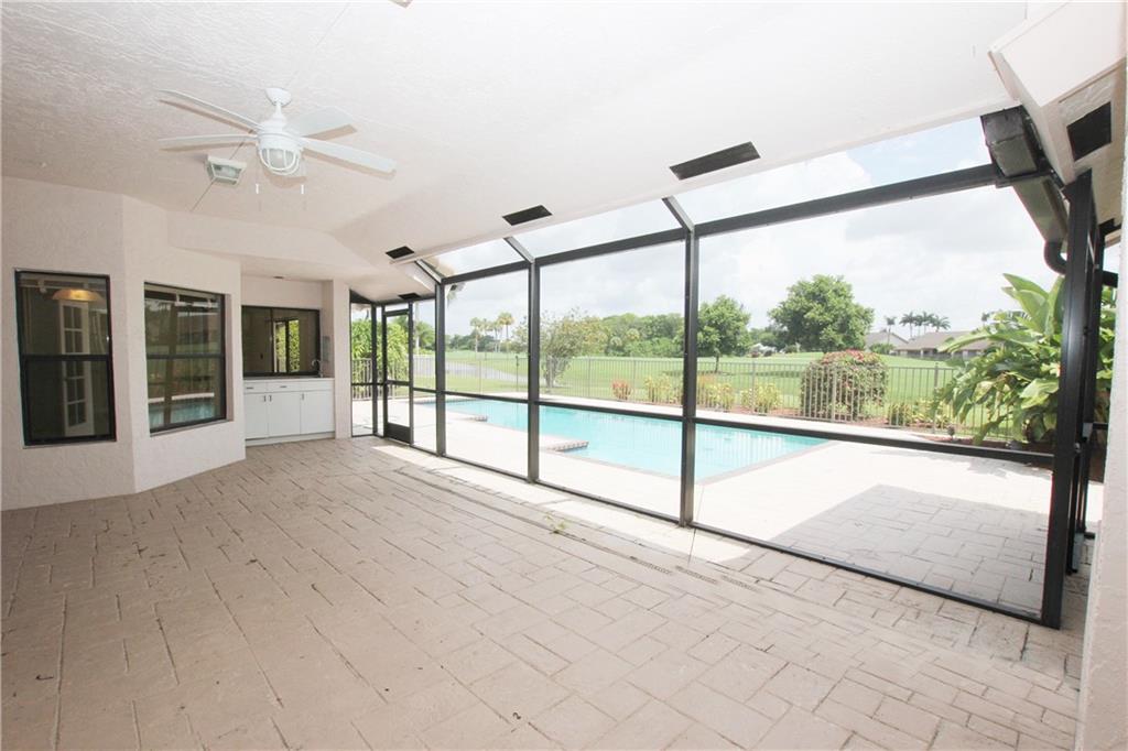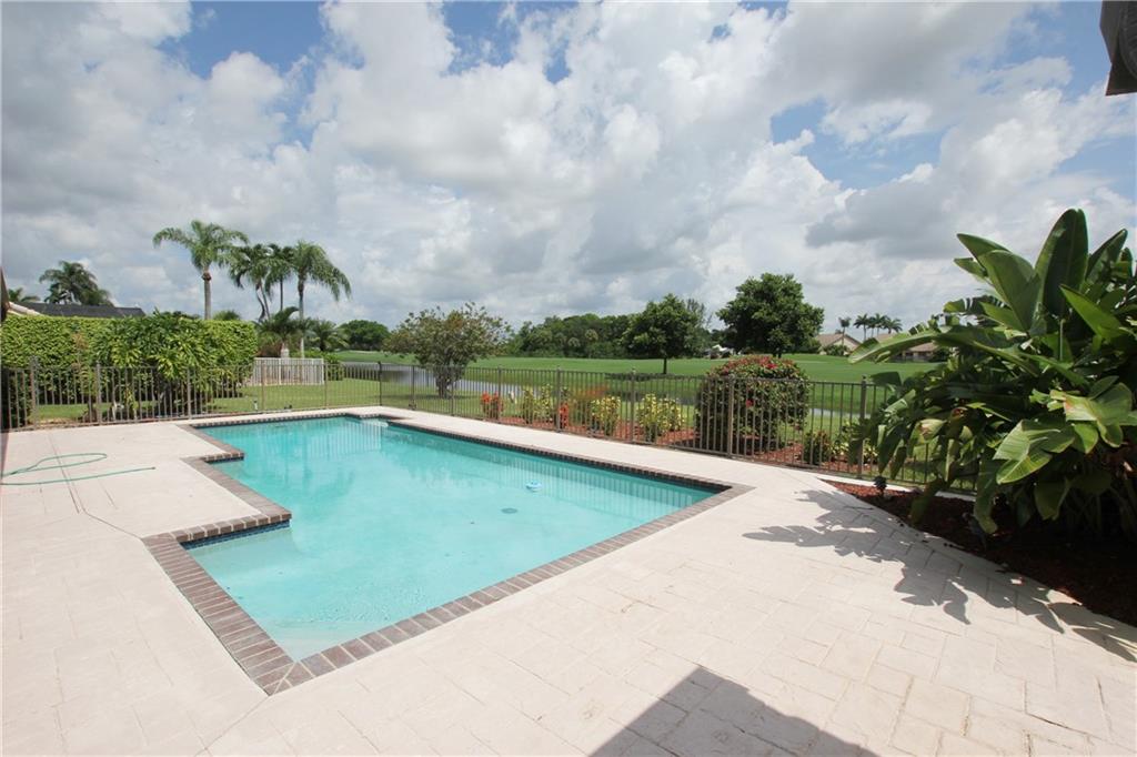 Fantastic 3/3 + Bonus room single family home with pool/water & golf views. Home features include: Vaulted ceilings, newly remodeled custom kitchen with wood cabinets and stainless steel appliances, granite counter tops, split bedroom plan, separate golf cart garage, screened in patio, tile & wood floors throughout, large laundry room with extra storage & fenced yard. Boca Woods features two 18 hole championship golf courses, 7 Har-Tru tennis courts, two paddle ball courts, full gym, driving range, putting and pitching practice area, pool side grill & restaurant/bar.