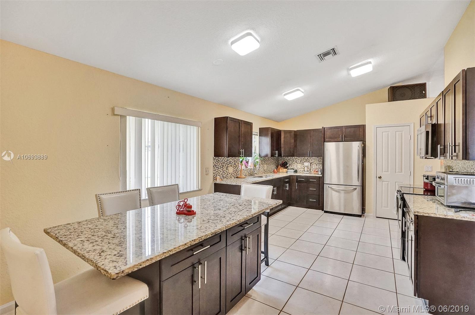 One of a kind home in this gated community! To start, this driveway could fit up to 10 cars, family gatherings anyone? to the lot is one the biggest one in the community, over 15,000 sqft. The entire home has tile through except for some bedrooms that have the laminated floors. The formal living/dining area has a vaulted ceiling which gives the spacious feeling. The family room and kitchen are separated. The kitchen has been upgraded with wood cabinets, granite countertop with a movable center island and SS appliances. The patio has a small screened area but the options are endless on this lot since is one the biggest one in the community, over 15,000 sqft. includes cable, internet plus all the amenities that Silver Lakes offer. No Rentals are allowed.