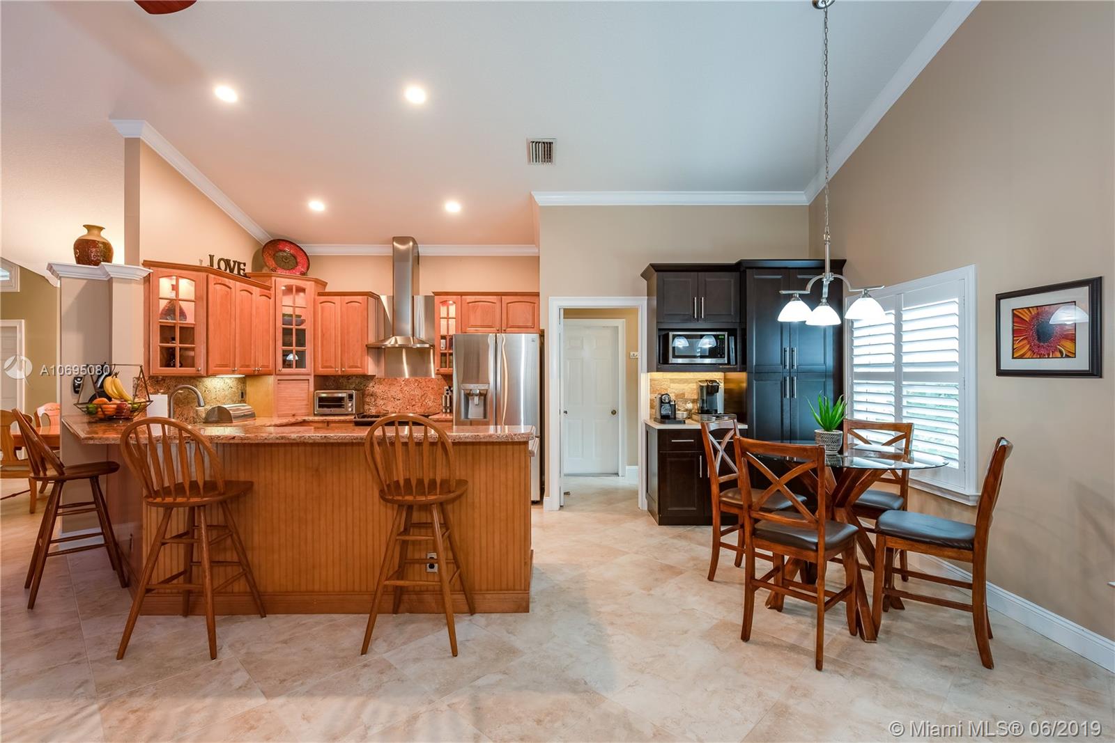 Wow! Over $95,000 in upgrades in this 4/2.5 Davie pool home. HIGH END features include all impact windows & doors, crown molding & baseboards, plantation shutters with moldings, gorgeous door frames & more. Handy Coffee bar with pantry and Airstone backsplash Phenomenal wine bar with cabinet & Airstone tile wall. Kitchen is remodeled with stainless stovetop hood & kenmore elite appliances. Walk outside to a perfect Florida patio complete with travertine deck, remodeled salt water pool & wired Tiki hut. Open concept floor plan is drenched in natural lighting from the abundant windows & high ceilings. Updated 1/2 bath. Pristine condition throughout this turn-key home. Arboretum is a friendly neighborhood located close to highways shopping & restaurants. Excellent Davie schools. Must see!