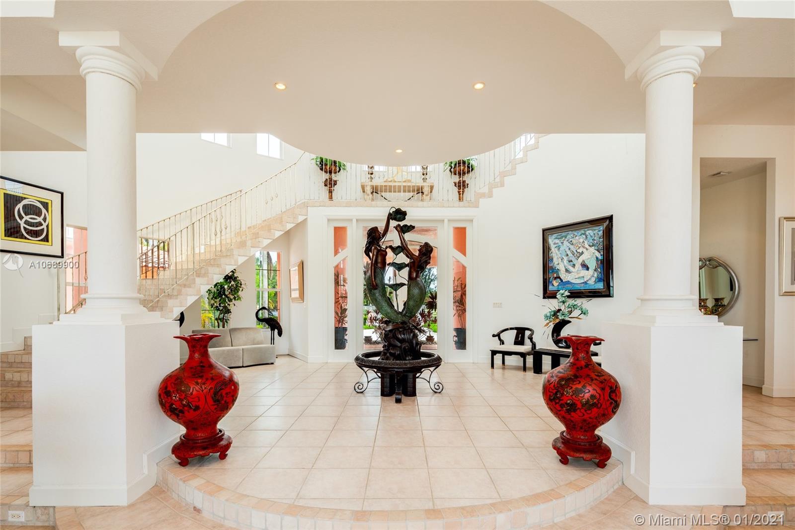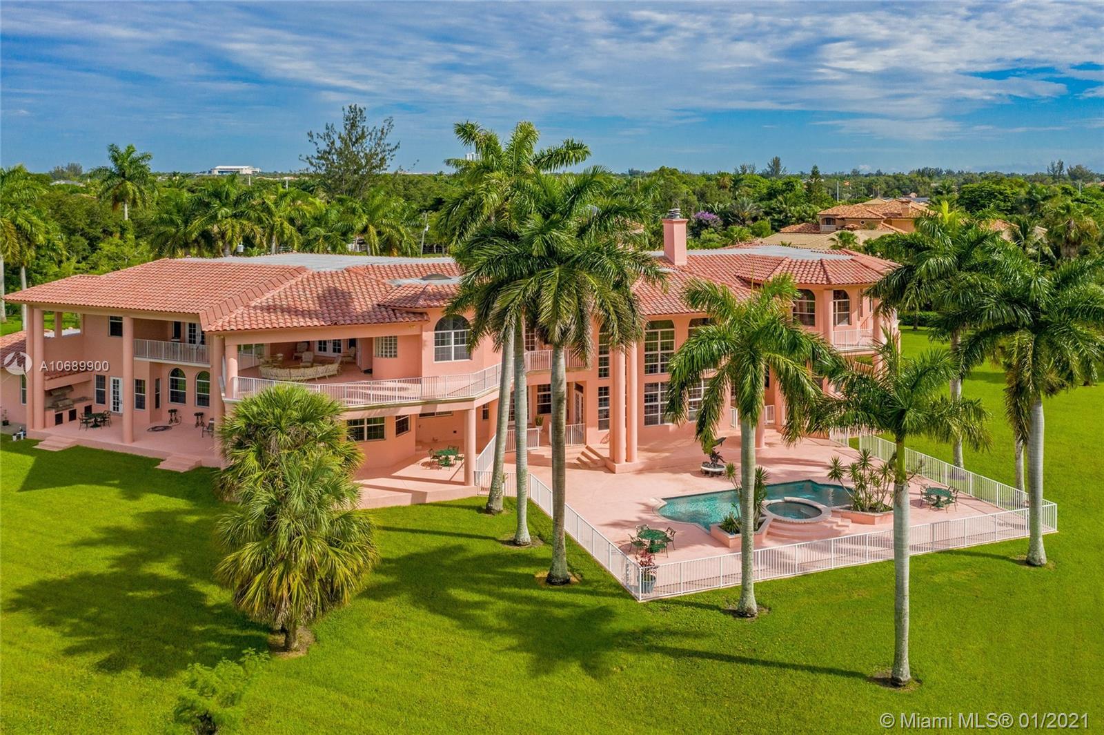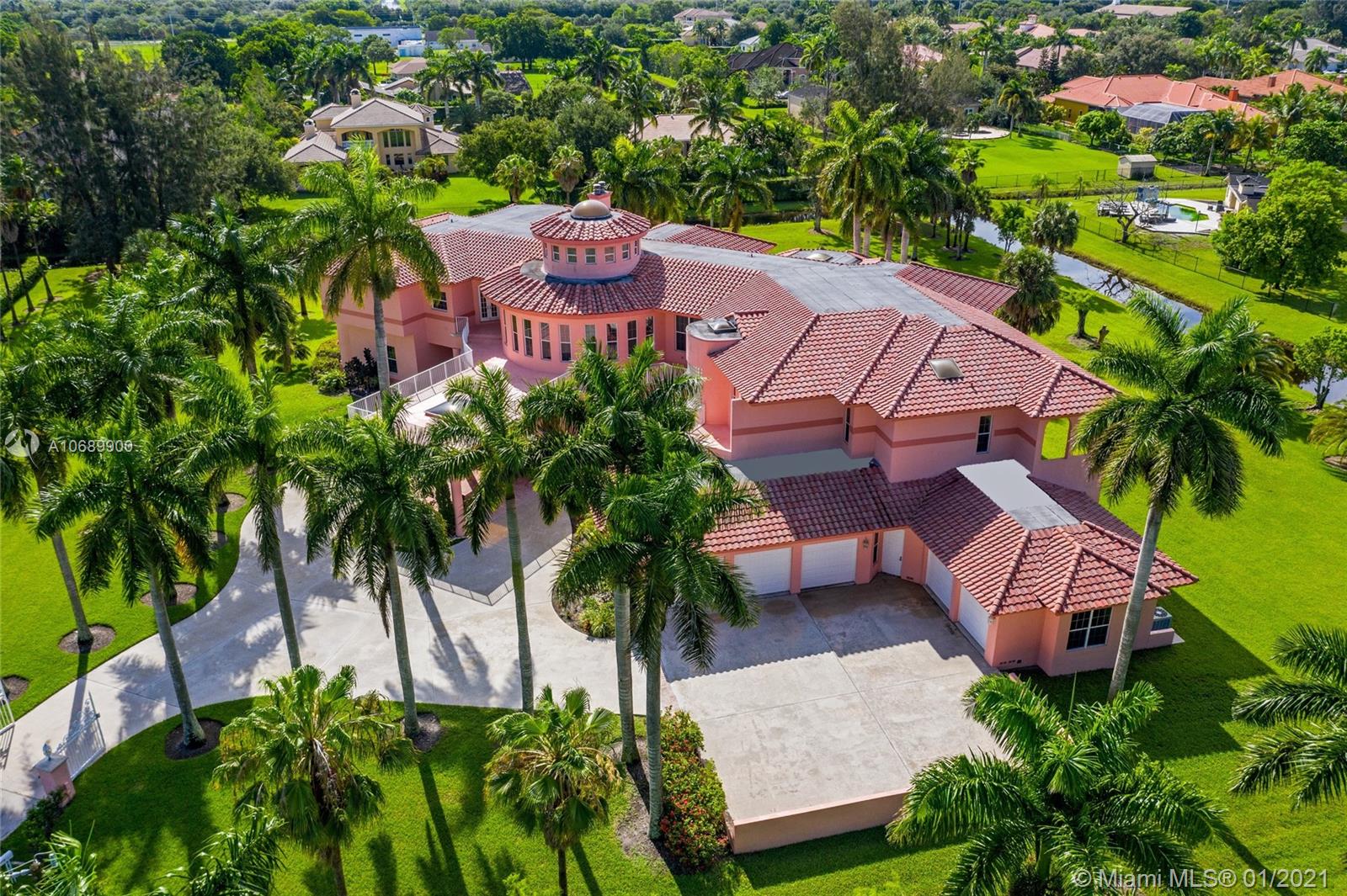 This secluded mansion is a 5 bed, 6.5 bath 10,353 sq. ft. corner lot home which sits on 2.25 acres on a private cul-de-sac street. Large glass double pane windows provide an abundance of natural light, and every bedroom has either a balcony or terrace. Addtl. Rooms include a media room, office and bar area. The roof was replaced in 2012. The interior of the house is original and in need of updating. The expansive backyard has room to add a soccer field, tennis and/or basketball court. This is the best lot in all of Plantation Acres (2.25 acres) and once you put your finishing touches on this property it will be the home that everyone is talking about!