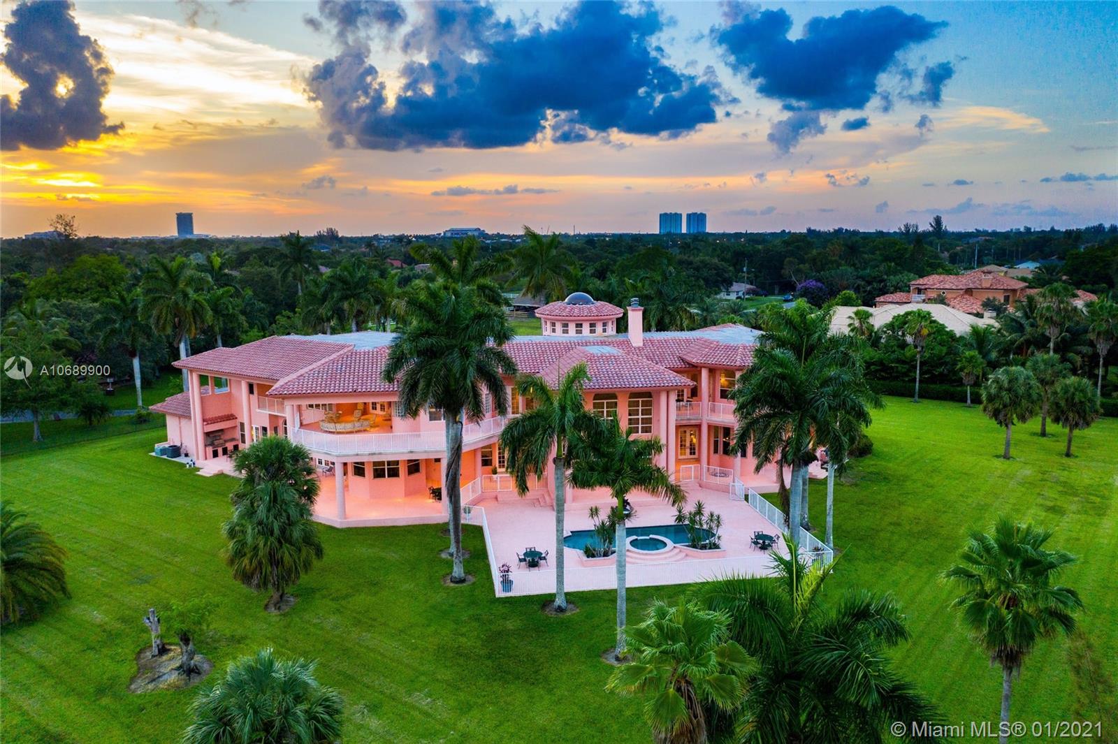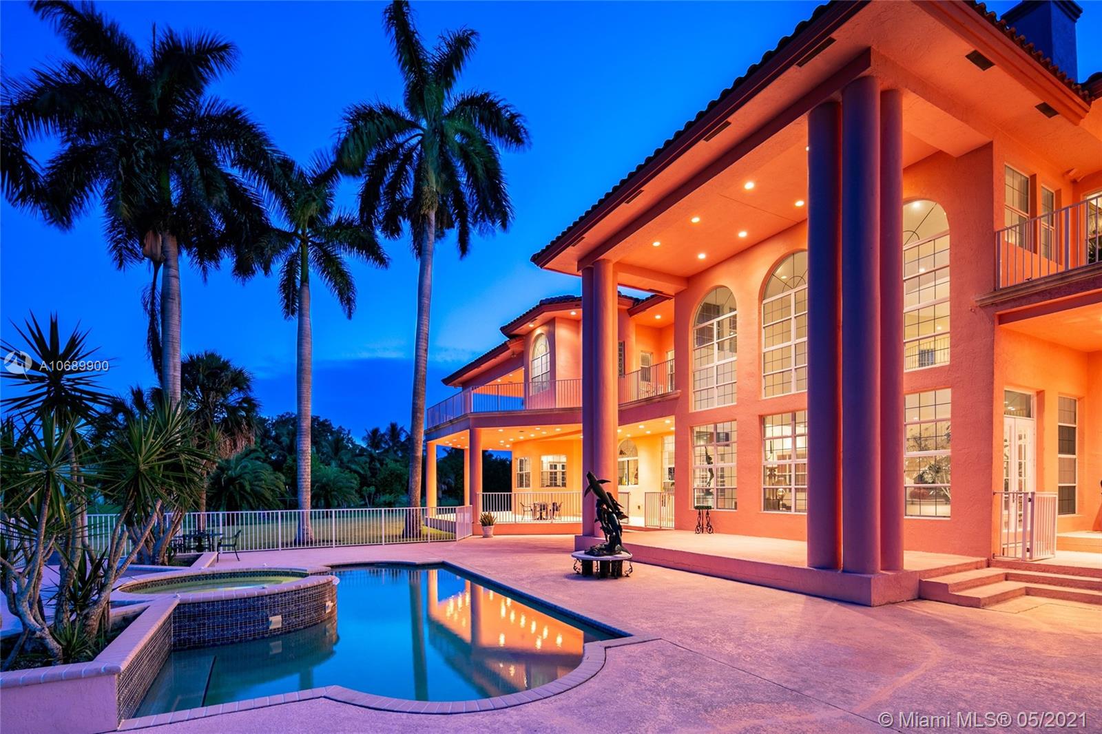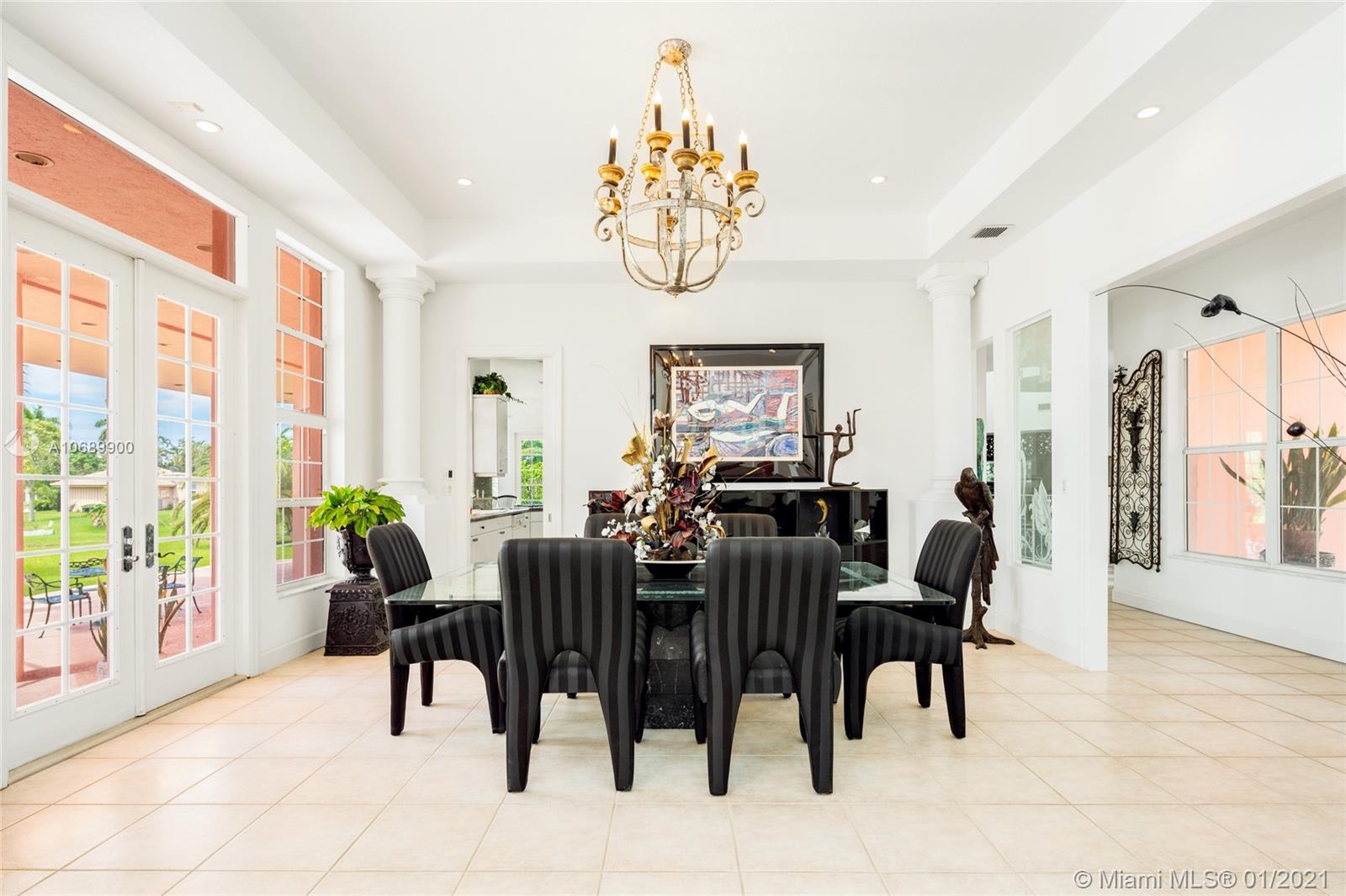 This secluded mansion is a 5 bed, 6.5 bath 10,353 sq. ft. corner lot home which sits on 2.25 acres on a private cul-de-sac street. Large glass double pane windows provide an abundance of natural light, and every bedroom has either a balcony or terrace. Addtl. Rooms include a media room, office and bar area. The roof was replaced in 2012. The interior of the house is original and in need of updating. The expansive backyard has room to add a soccer field, tennis and/or basketball court. This is the best lot in all of Plantation Acres (2.25 acres) and once you put your finishing touches on this property it will be the home that everyone is talking about!