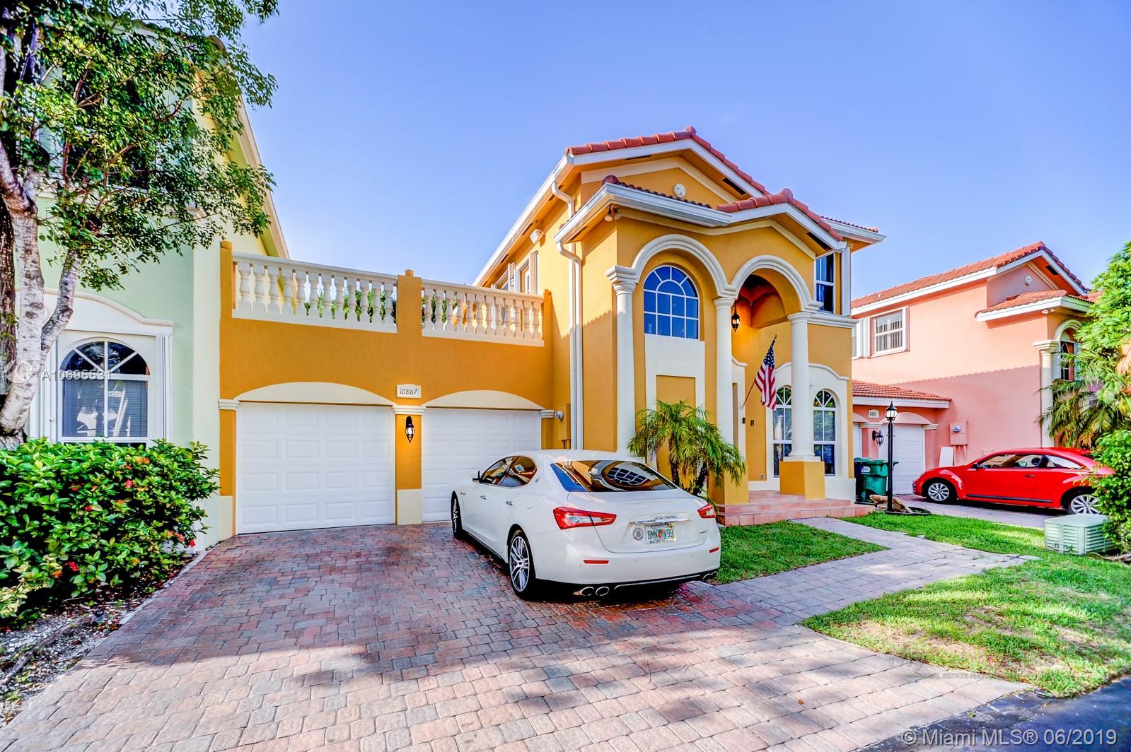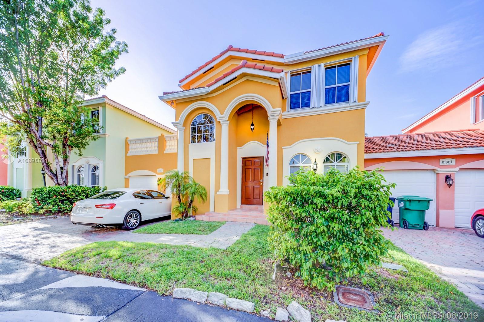 This house is one of Miami's 2000 award-winning best Designed homes located in the beautiful family-friendly community of Piazza Vecchia. Piazza Vecchia is a Gated Community located in best area of Doral. It is blocks away from 41st street in 107th ave. This house was designed with a 2nd-floor Terrace being a great entertainment area that connects to the patio which has a nice paver space with an outside 1/2 bathroom. This 2-story home features 3 bedrooms, 2 full baths & 2 half baths and Accordion Shutters throughout the house. Located around A+ schools! Close to major highways, Downtown Doral, and all mayor malls. Call listing agent for a private showing.