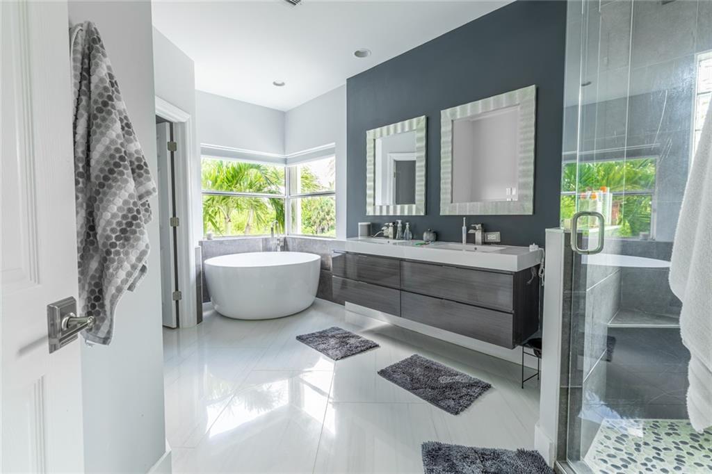 Ultra Modern upgrades dress this spacious home on the cul-de-sac in desirable BOCA EAST. This modern masterpiece features a gorgeous, top of the line kitchen complete with Thermador appliances, including an induction cooktop, and a 150 bottle wine fridge. Relax in your one of a kind home theater, that features a full bar to entertain your guests. Marble floors and grey walls dress the spacious foyer with white, stacked stone fireplace. Spacious master bedroom is complete with a beautifully updated bathroom. Cool off in your pool which is surrounded by a turf putt putt course. This rare find in Royal Palm Forest, will have buyers buzzing. Schedule a showing today.