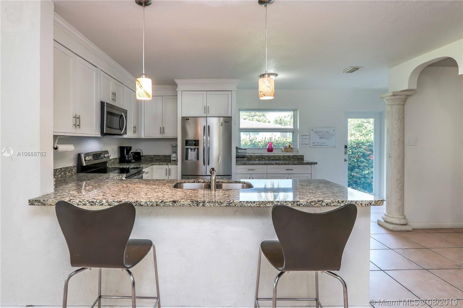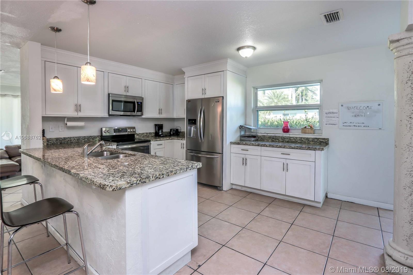 Large, bright and open 3bed/2bath home w/ Lots of windows in Hollywood Lakes. Completely updated kitchen w/ stainless steel appliances & granite counter-tops. Double sinks in master bath and 2nd bath. Huge carport on rear of home. Beautiful Florida room, formal dining, enormous living space and tiled throughout home. Hurricane impact doors and windows. New roof done 2017. Washer and Dryer in utility room. Just steps away from the Intracoastal and only 5 minutes to Beach, nightlife and restaurants, including Margaritaville.