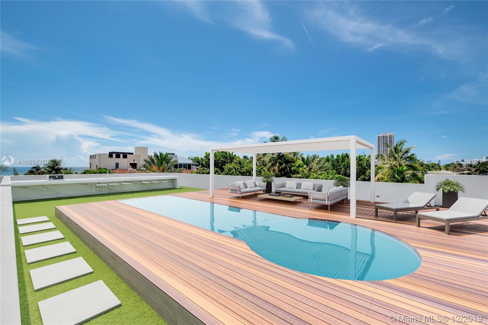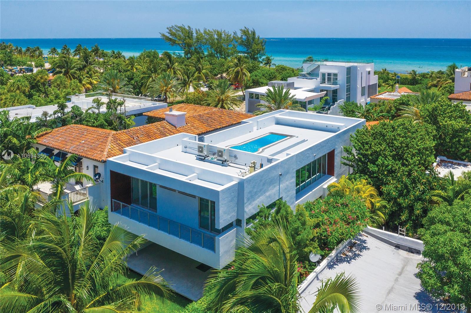 Enjoy living in this brand new contemporary home just steps from the beach in the exclusive gated community of AltosDelMar! This never lived in custom home features 3 Bedrooms, 3.5 Bathrooms, an open floor-plan with double height ceilings, Bulthaup custom kitchen with integrated Miele appliances, two-car garage, private backyard and patio. Natural light flows through glass walls of floor to ceiling hurricane impact windows & doors, illuminating the top of the line features throughout. Take in expansive ocean and city views from your private rooftop deck and sparkling pool.