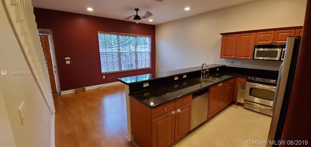 Beautiful 2 bed-2.5 Bath townhome in Cobblestone (Pembroke Pines). This home has updated kitchen cabinets, granite counter top, stainless steel appliances. Washer and dryer. Laminate flooring throughout. Master bedroom features a spacious walk-in closet and balcony. 2-car driveway, accordian shutters and recently painted outside. Gated community, roving security, close to malls and I-75. HOA fees INCLUDE house alarm system, Basic Cable and Internet. This is a MUST see!!