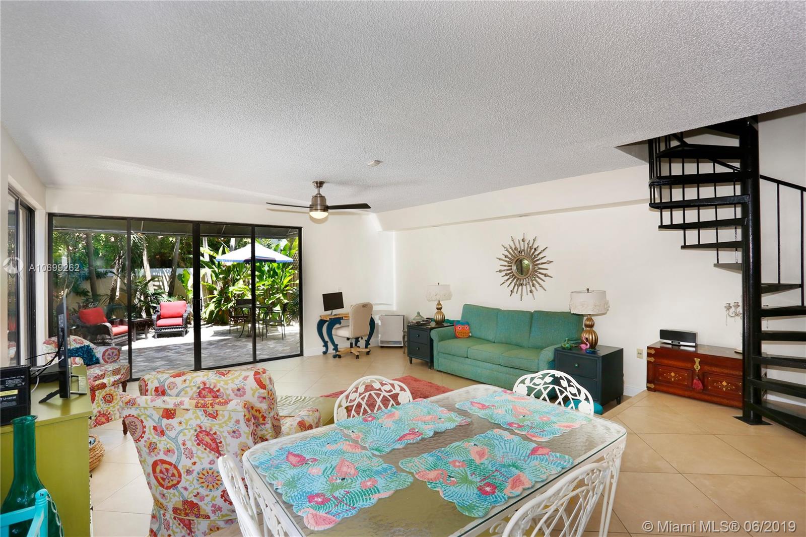 Light and bright, spacious Center Grove town home. This extra wide unit (same width as the $1M+ modern town homes) is located on a quiet street inside a well established gated complex. Lots of natural light from tall sliding doors and windows. Over sized, no maintenance patio with mature mango tree. Spacious bedrooms on the second floor with private baths. Powder room on the first floor. Updated kitchen with quality cabinets and appliances. Separate laundry/utility room. Extra outdoor storage. Two car gated parking spaces plus guest parking outside. Pool in the community. Walk to downtown Coconut Grove, shopping, public transportation, local parks and marina. Not a condo association!! NOT IN A FLOOD ZONE!