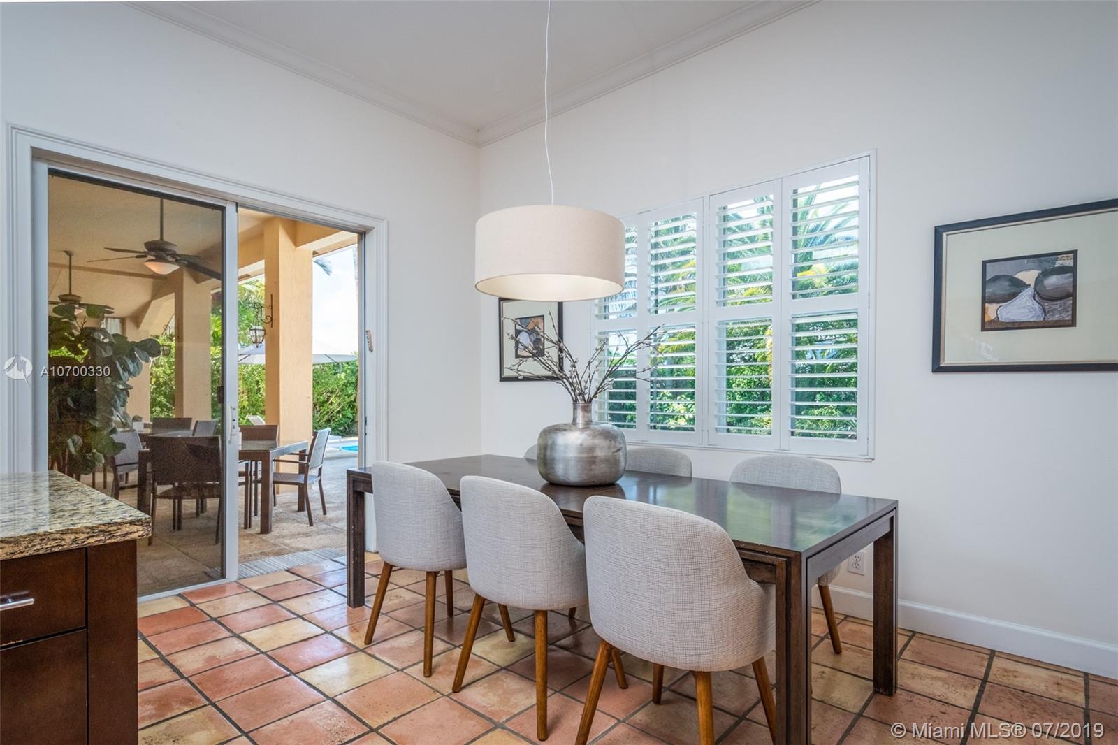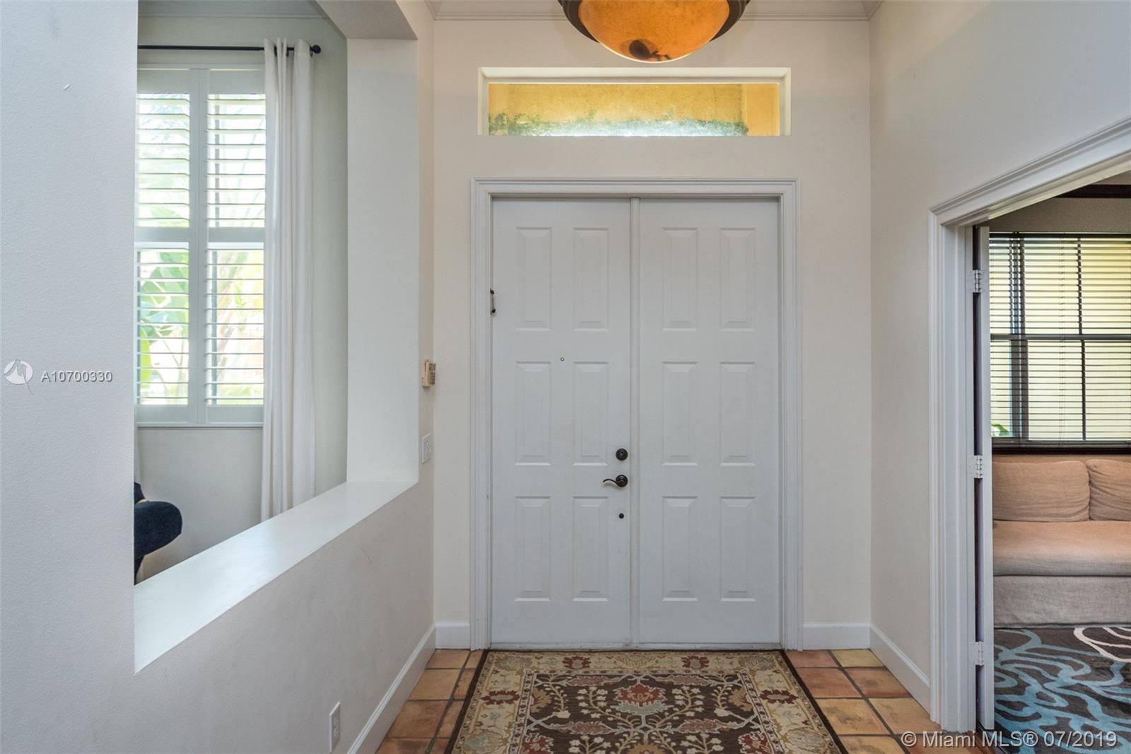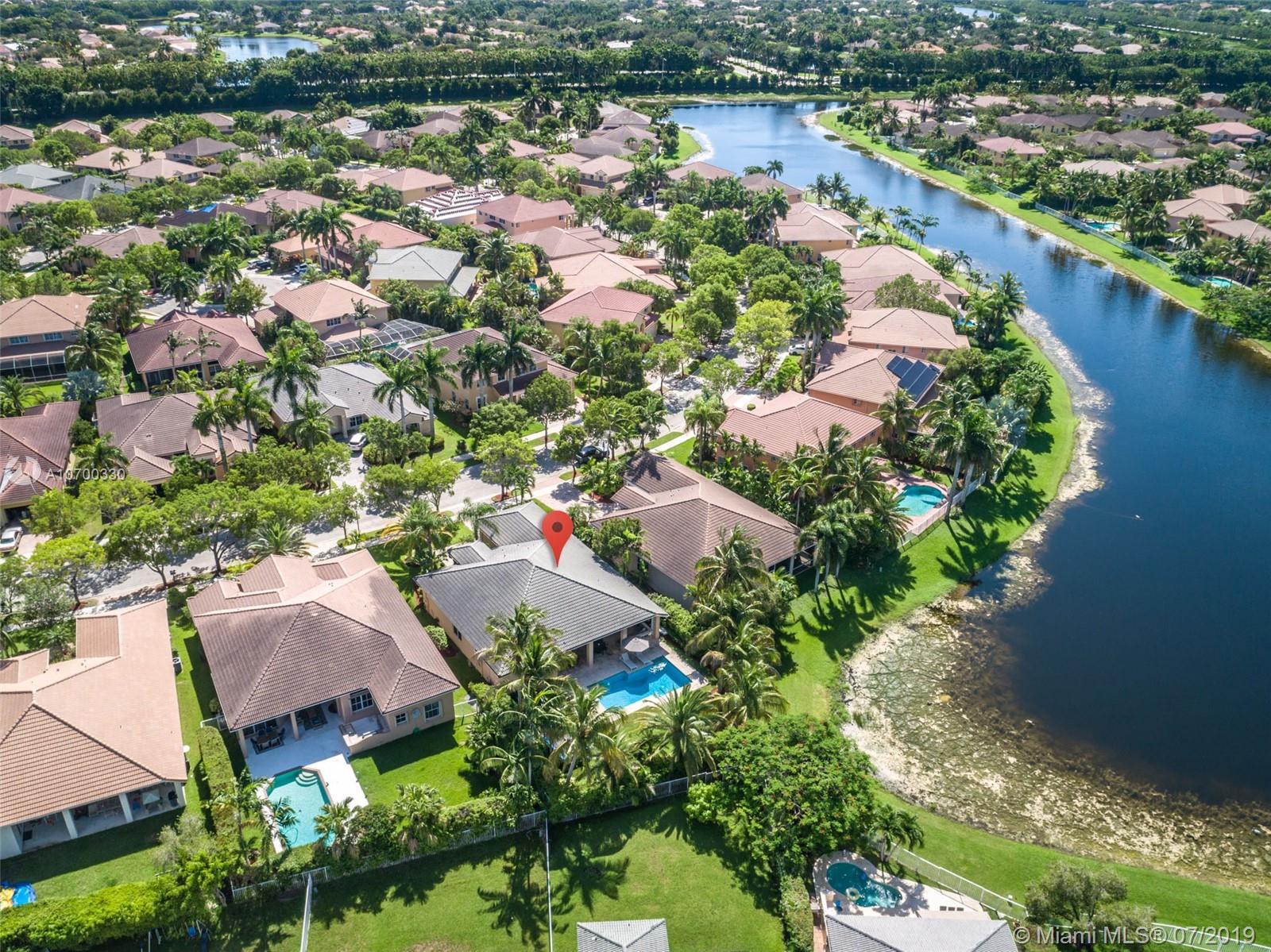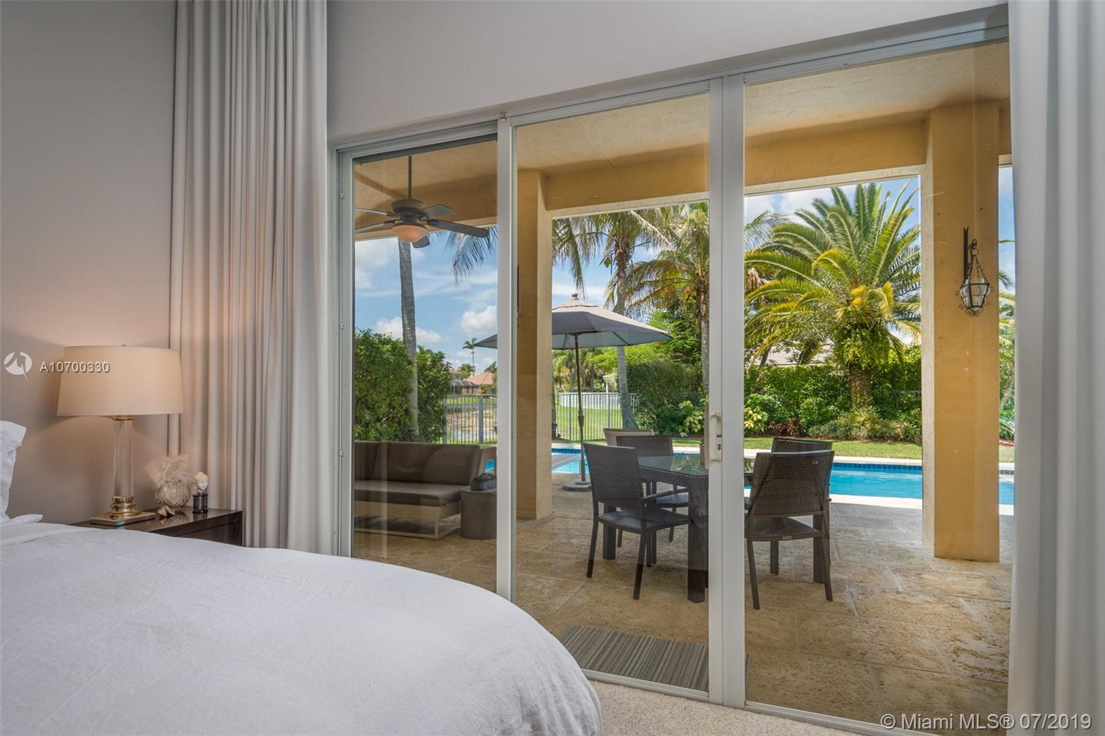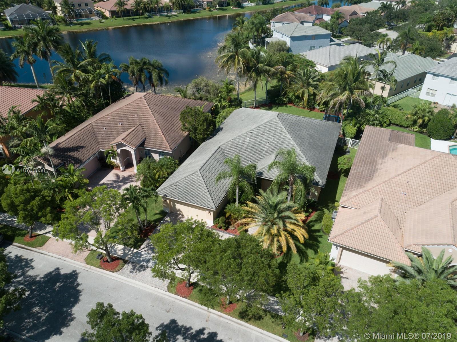 Tucked on a 11,625 square foot lot, ficus hedged for privacy. Popular Dove model with soaring ceilings and custom contemporary heated pool with full length covered patio with privacy shade curtain. Fully fenced with plenty of room for a play set and beautiful view of the lake. Three sets of sliders to pool. Spacious kitchen with loads of cabinets, center island with granite and large pantry. Shows light and bright. Plantation shutters and crown moldings throughout. Shows like a model out of Restoration Hardware. Great curb appeal. Hurricane protection. Walk to community pool/water slide and amenities.
