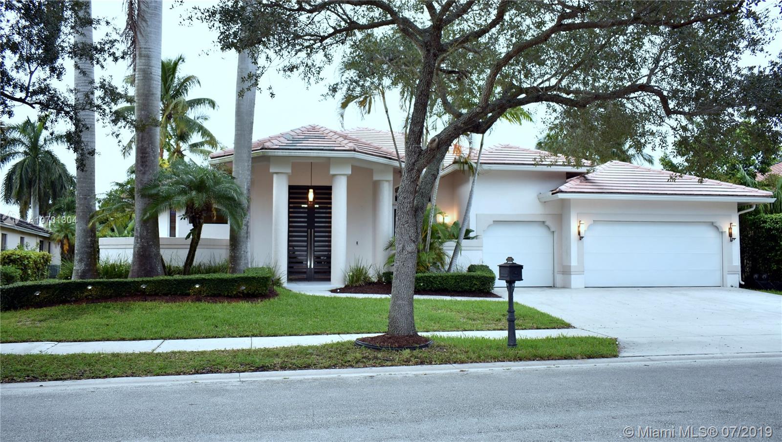 Warm Modern Masterpiece with 5 Beds / 4 baths set on an over 11,000 sq.ft. lot in prime Weston Hills. Newly renovated in 2016, this property offers high ceilings and open spaces. Designed for large scale entertaining, the vast living rm flows to the outdoor living rm & pool. Enter in the courtyard with a beautiful pond and Magnificent Custom Front Doors, Large dining, living, family rm and fabulous open chef's kitchen with full length islands, vaulted ceilings and loads of light. Top of the line Vikings appliances make it complete. Impeccable condition, all hurricane impact windows and doors (2018), 3 car garage, washer/dryer and AC units replaced in 2015. The master suite features beautiful pool views, walk-in closets & spectacular bath. 2 add'l bdrm suites with en-suite baths.