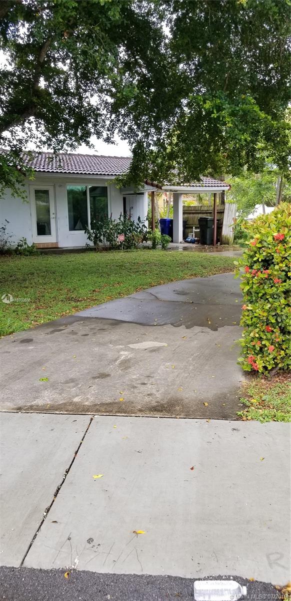 Delightful 2/1 situated on a tree-lined, corner lot with circular driveway and carport! 20' of canal waterfront with no fixed bridges. Huge fenced yard, suitable for a pool. Updated Kitchen with Stainless Steel appliances, 5 burner Gas stove, granite countertops, and breakfast bar. Laundry room, Central A/C, and Hurricane Impact windows! Original terrazzo floors, and a tiled roof give this home distinctive Florida style.