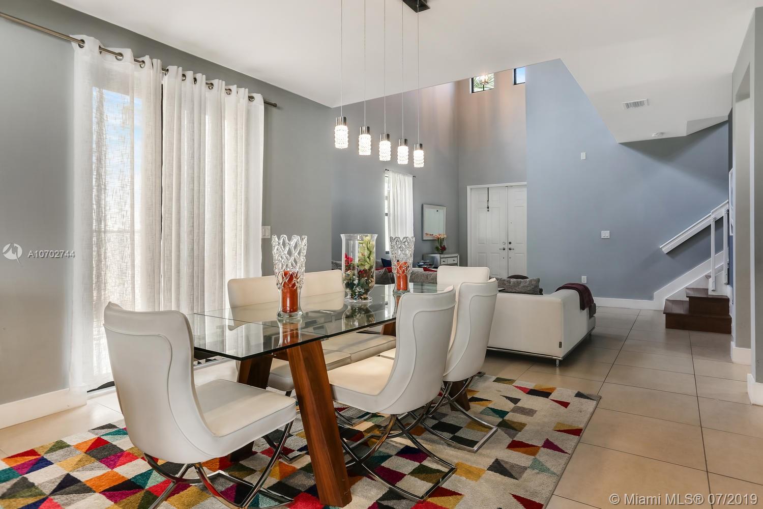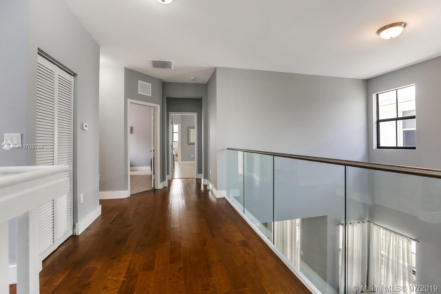 Splendor and luxury await in this open contemporary designed single-family home in the boutique community of Vintage Homes in Doral. 2 master bedroom suites in this 4 bedroom 4 full bathroom executive home. Built-in 2014 the home features tile and wood flooring. Impact windows and door, 2-car garage, beautiful patio ideal for entertaining. Elegant kitchen with wine cooler, wood cabinets, quartz countertops, glass tile backsplash, center island, and a breakfast area. The gated community offers a children's play area, clubhouse overlooking the pool, whirlpool tub and the lake. Fully equipped fitness center, media room with kitchen counter area for entertaining, sun deck, men's and women's locker rooms with showers and saunas. Bike and jogging trails and more you need to see for yourself!