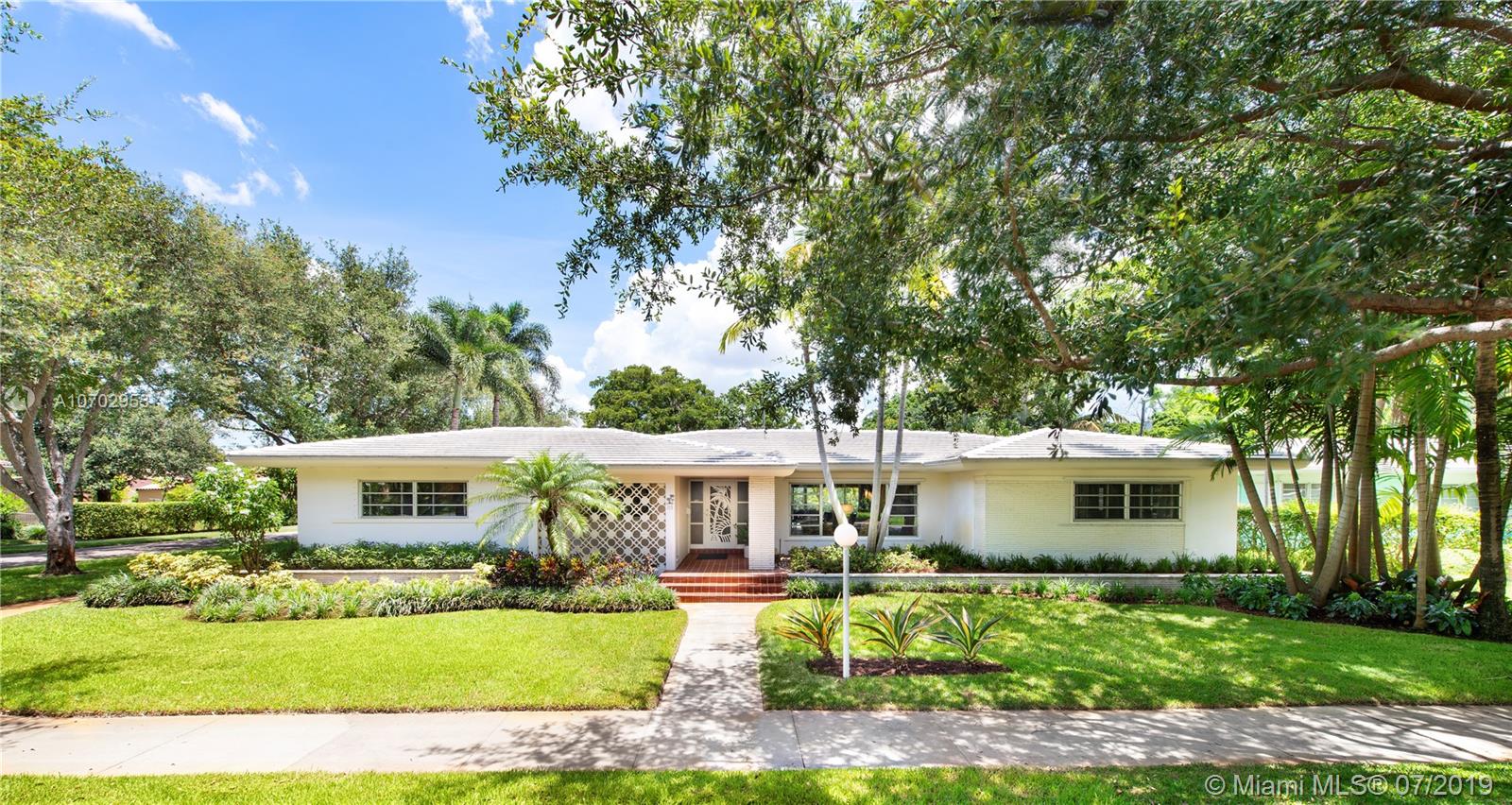 Mimo delight, this home is a modern beauty with amazingly large bedrooms, loads of closet space and beautiful floor plan. All living areas overlook large pool and covered patio area with ultimate privacy. Large formal entry, living/dining with sliding doors along the back that open to pool, patio and entertainment area. Beautiful eat-in kitchen with sliding doors to outdoor pool and patio. Huge laundry/pantry and oversized 2 car garage. True 4 bedroom, 3 with on suite baths and ½ bath. Mimo integrity has been maintained and lovingly cared for. If you like Mimo, you will fall in love. As per tax roll Liv area sf 2,793, Adj sf 3,329 (includes 50% of garage/33% of covered porches) Total sf 4,137.