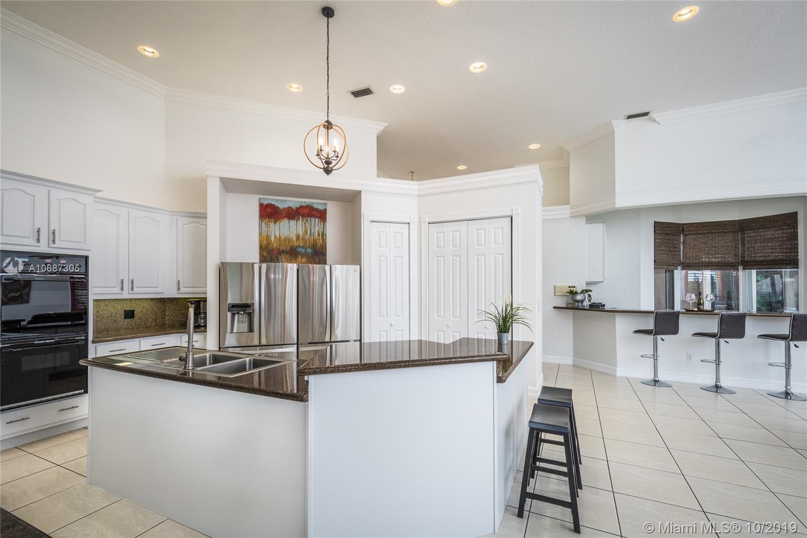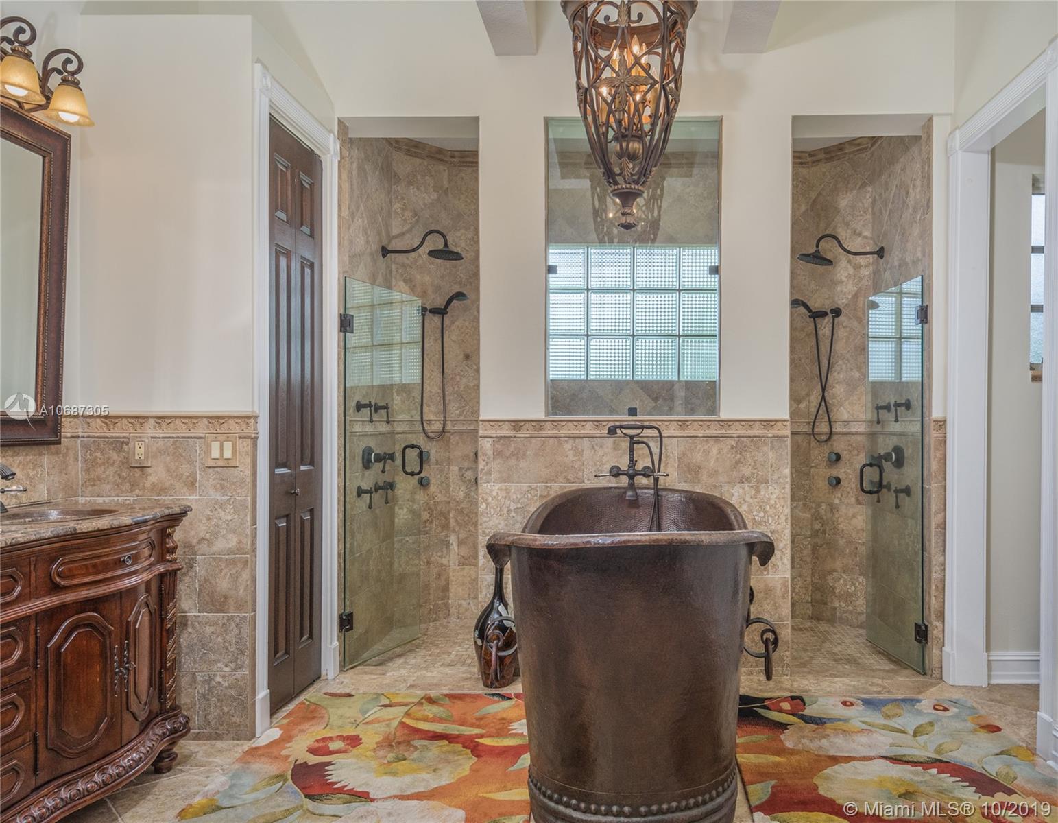 Looking for privacy and room to roam? This estate home is an entertainers paradise tucked in exclusive Westfield Estates. 2.76 acres of pure privacy. Enter this estate home via your long paver driveway to your porte cochere entrance. Soaring ceilings welcome you home. Main house features five spacious bedrooms with 4.5 remodeled baths. Main house has full accordion protection. Windows on back yard oasis with heated salt water pool, travertine patio with expansive covered patio, mosquito control system and detached roofed tiki hut with grand summer kitchen and view to private lake. Attached Guest house with Impact Glass perfect for in laws, office or playroom w/ steam shower and windows overlooking pool. https://player.vimeo.com/video/346642904?autoplay=1&loop=1&title=0&byline=0&portrait=0
