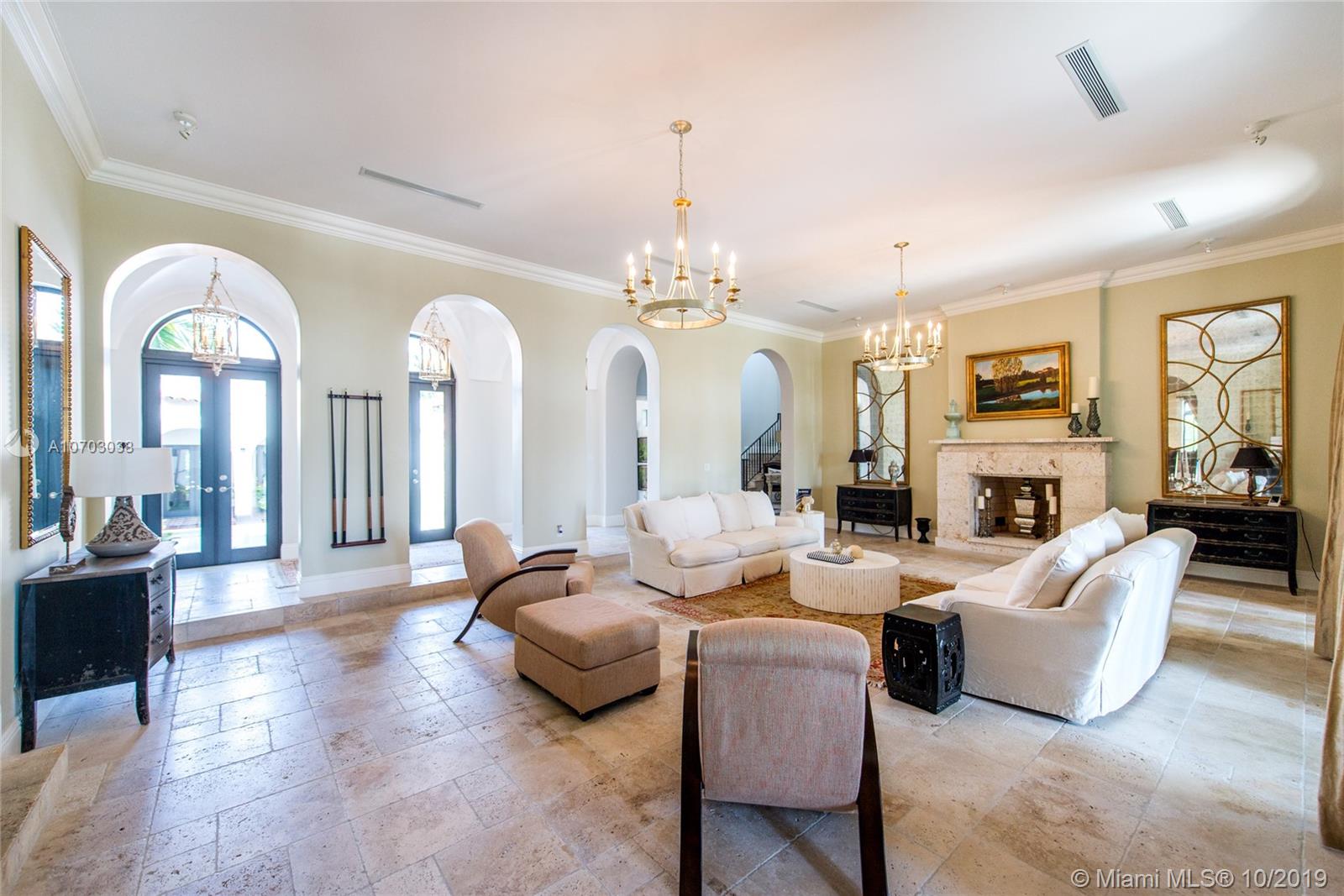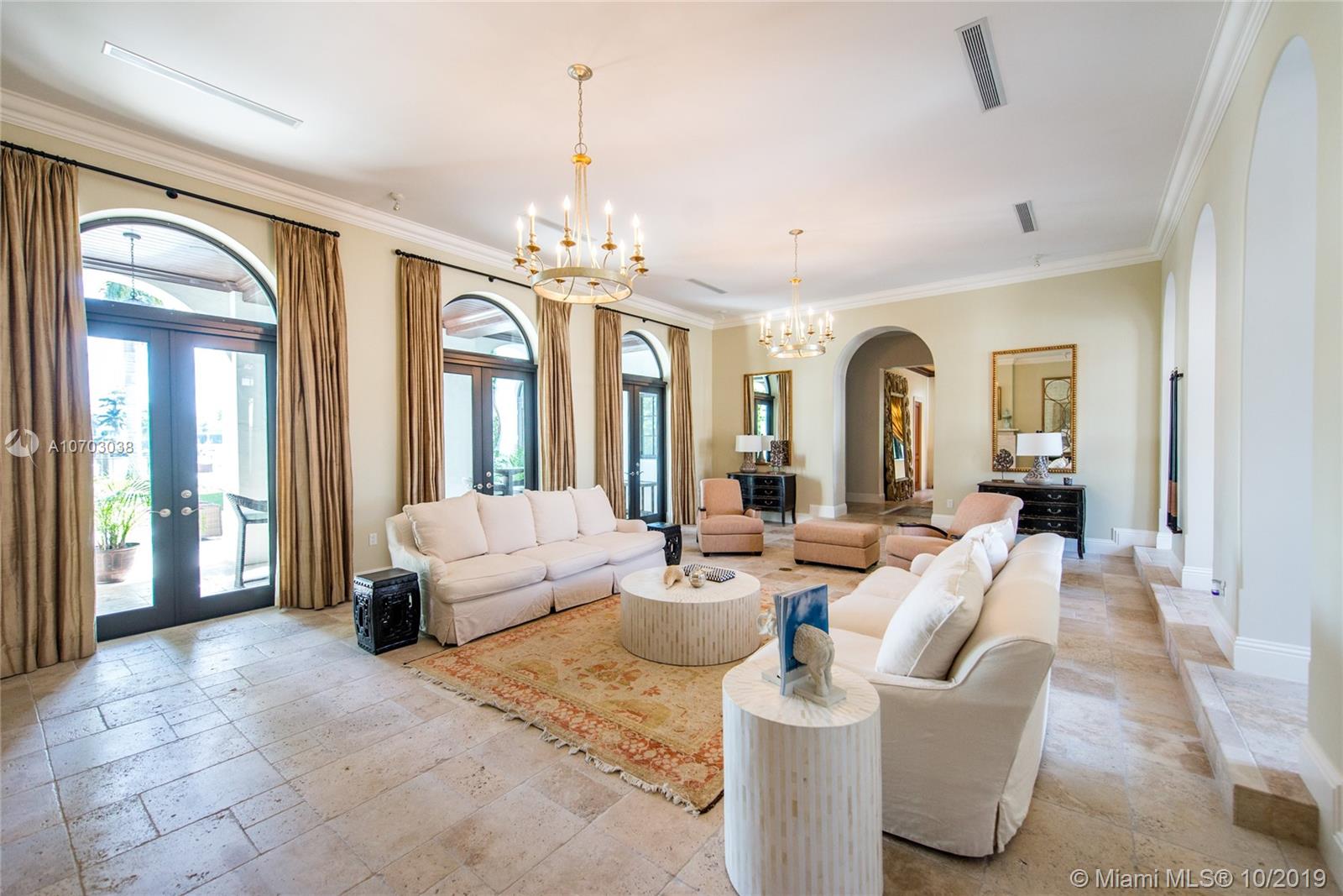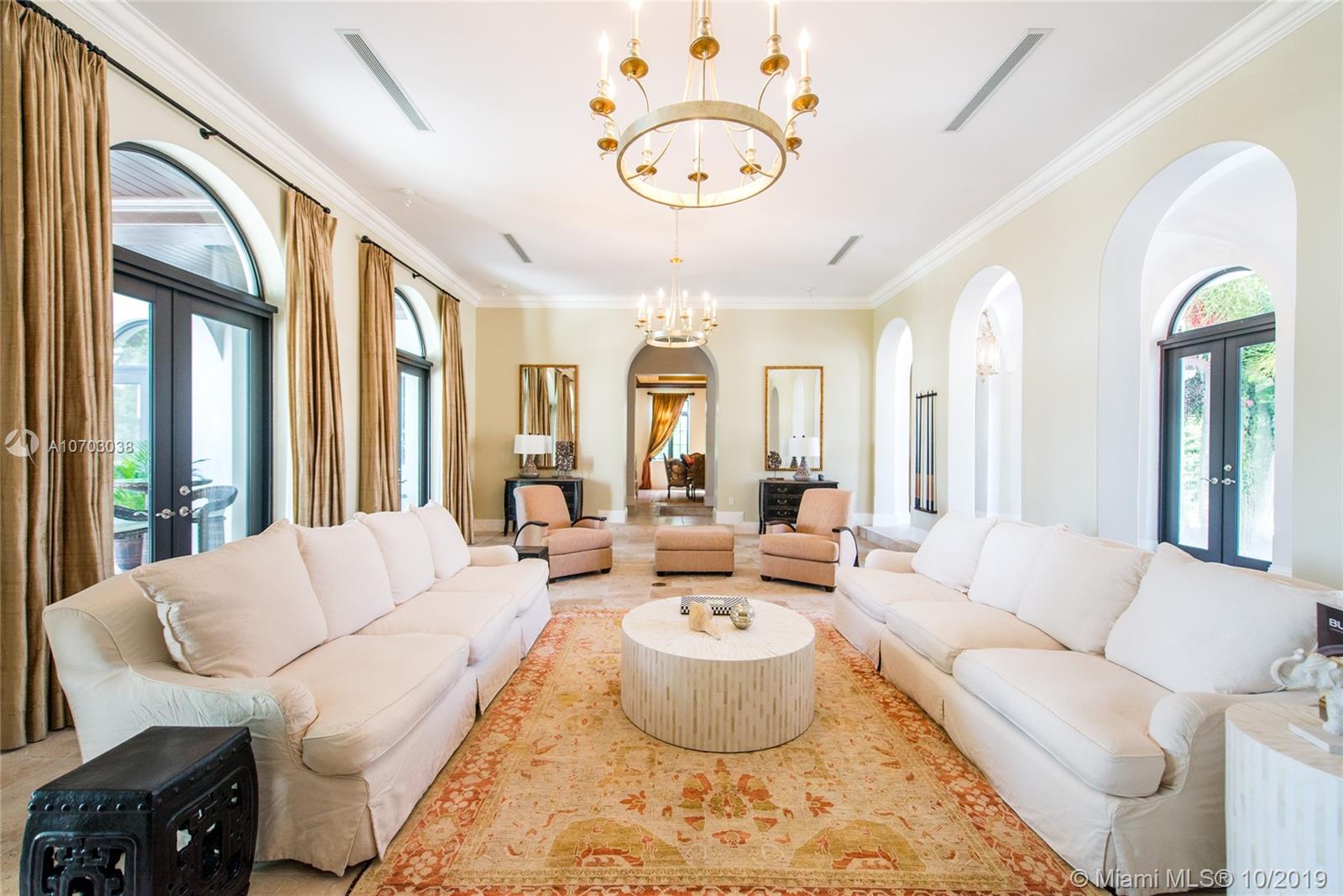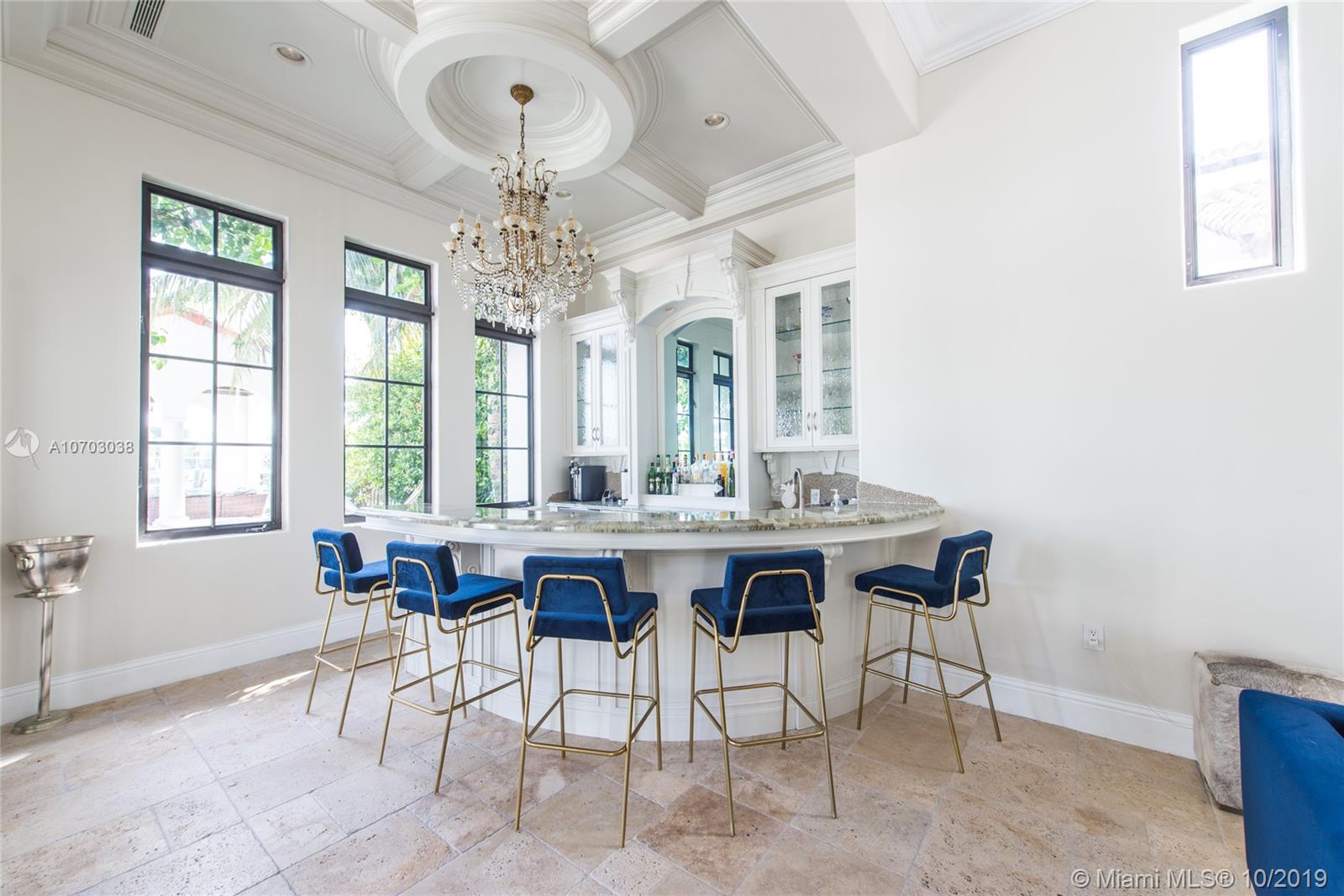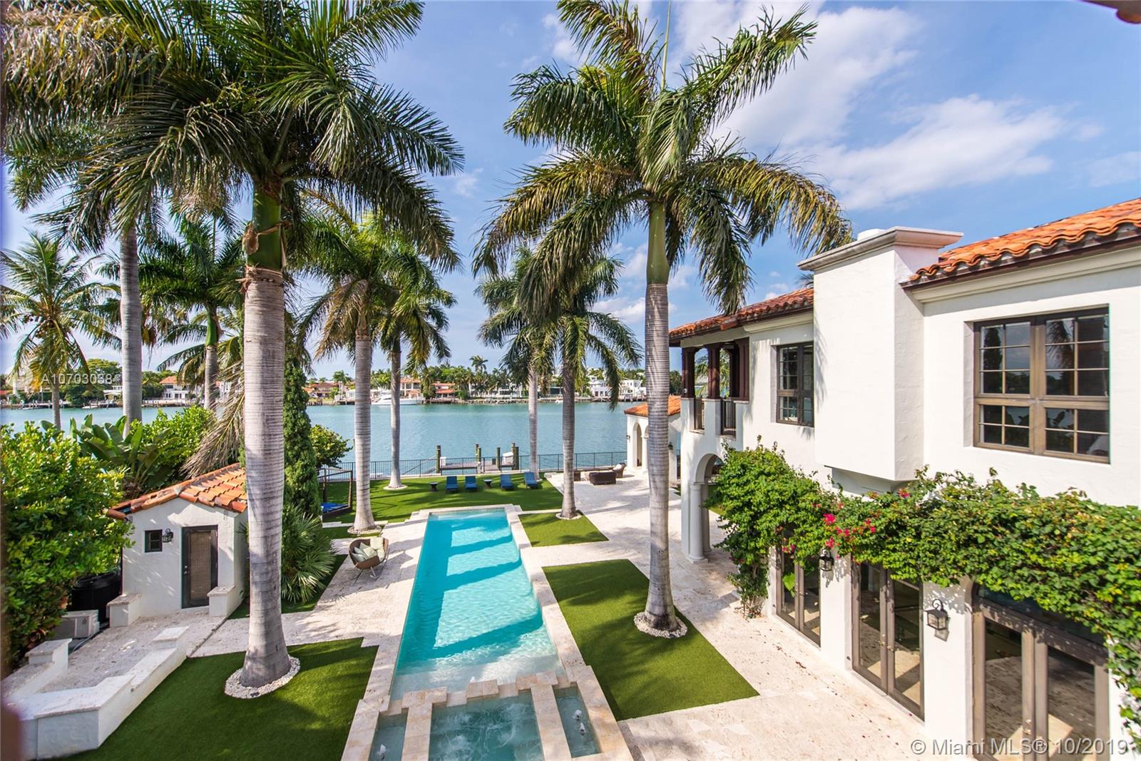 Exclusivity, fine design and bay breeze in Palm Island. Set on a spacious 30,000 SF lot and boasting 13,201 SF of living area, this 8 bedroom, 10/2 bathroom estate is the epitome of Miami Beach living. The Master Suite includes spacious his and hers bathrooms, his and hers closets and a private terrace overlooking the bay. Enjoy waterfront views from every room including the kitchen, family room and formal living room. Entertain indoors in the expansive formal dining room, outside in the central courtyard or by the bay and infinity pool. A private dock with 100 Feet of frontage completes this magnificent estate situated minutes from S Beach, Downtown & the Miami International Airport.