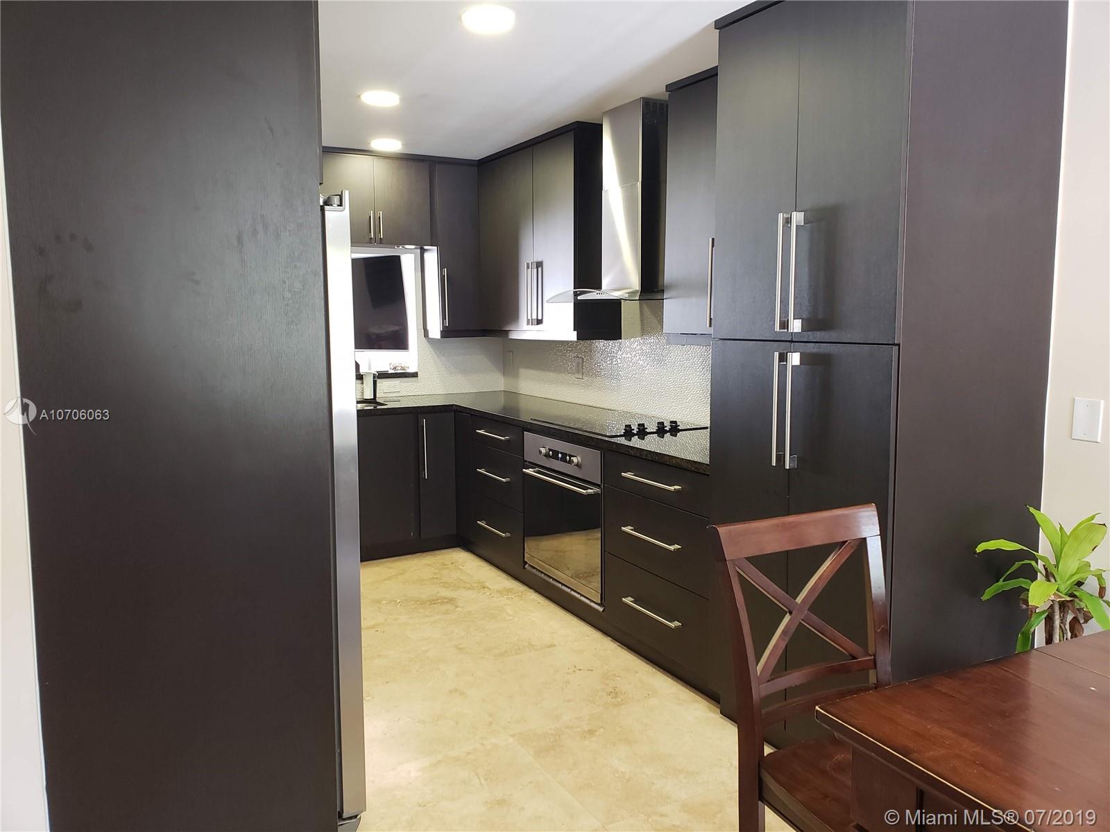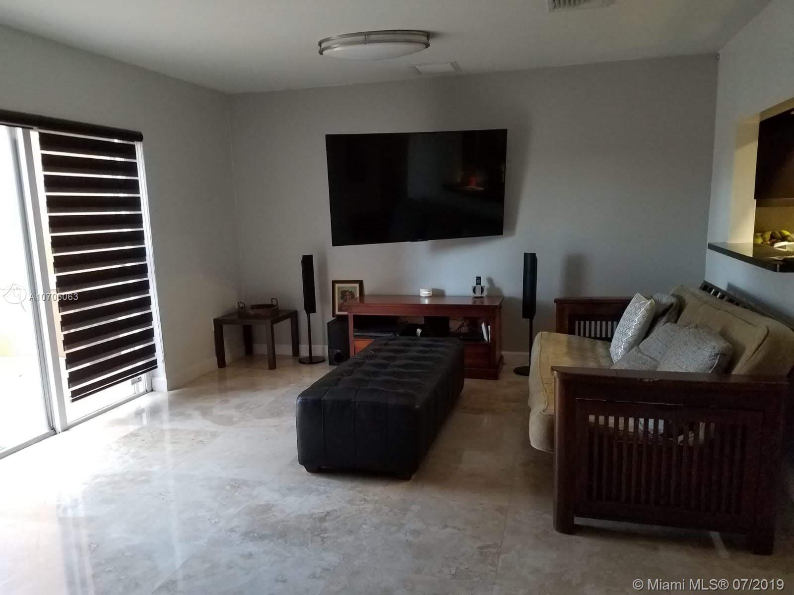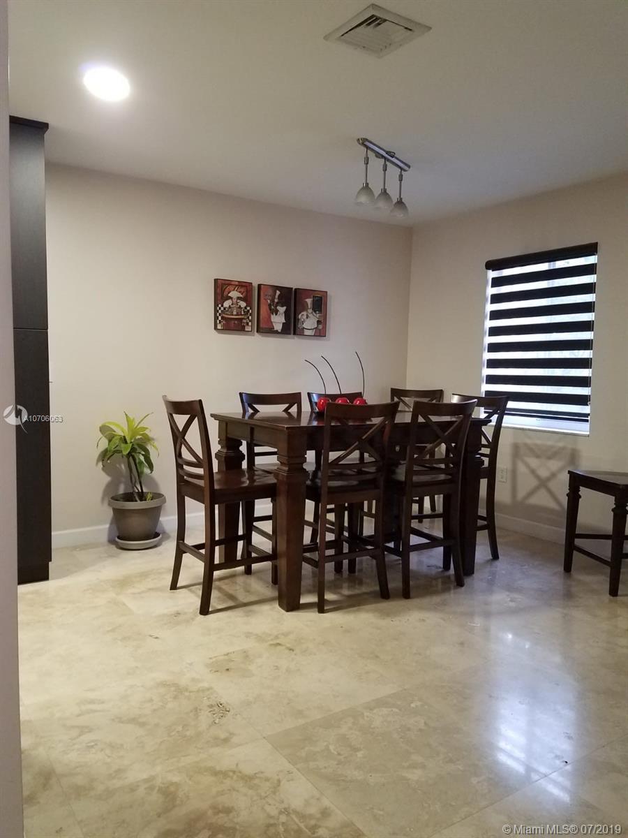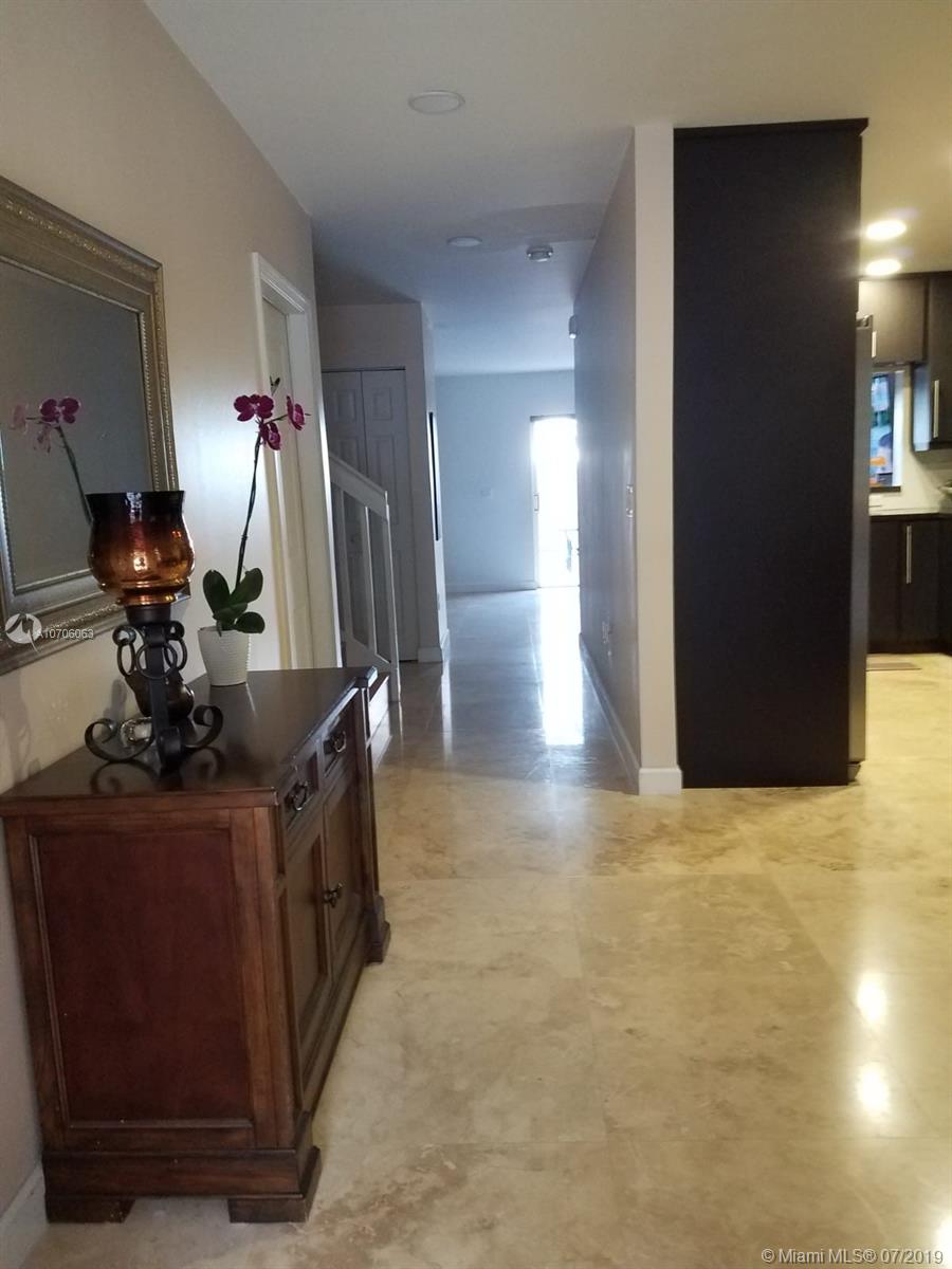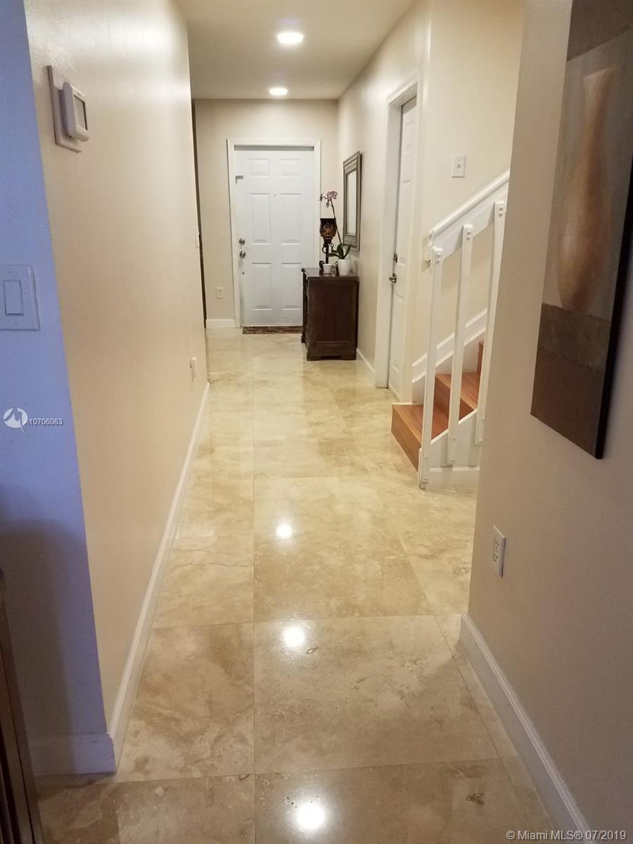 Ready to move in and rarely available! 3 Bedrooms and 3 Bathrooms, completely renovated townhome with newly installed travertine floors throughout first floor and laminate wood in 2nd floor. Kitchen completely remodeled with dark wood and granite counter-tops. Marble pavers in private backyard, high efficiency central air conditioner (lowers electricity bill by half), camera security system, accordion hurricane shutters, fully renovated master bathroom and guest bathroom. Beautiful light filtering zebra blinds on the first floor, LED lighting throughout first floor, renovated front porch with travertine tiles and newly installed grass in entrance.