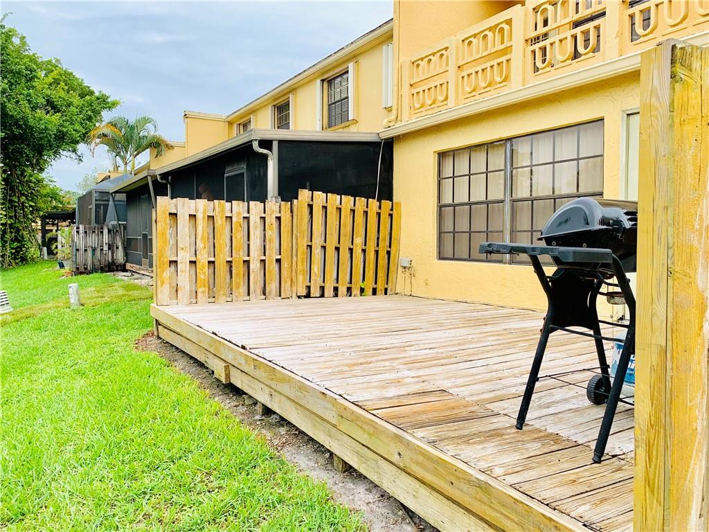 Corner/Waterfront town home w/ Hard to find 3 bedroom 3 bathroom.Updated eat in kitchen.Spacious living room overlooks wood deck and wide lake. Built in Custom entertainment center and bar with matching tables can stay. Lots of shelves and storage.Each bedroom has its own bathroom w/ 1 bedroom and bathroom on the first floor. Up stairs has a Master bedroom w/ built in furniture and a lg. open balcony and walk in closet. 2nd bedroom upstairs has it's own bathroom as well. Nice size rooms w/ lots of built ins that can stay for someone who likes them or all the furniture can stay if new owner wants to rent it furnished. Huge storage closet up stairs. Maint fee is $135 to Palm Isles monthly and $36 quarter to Welleby Management.