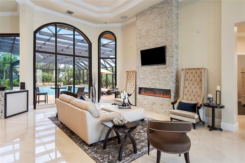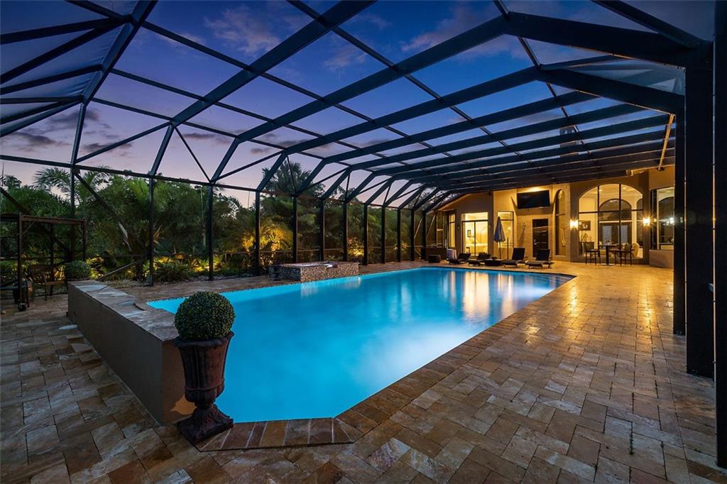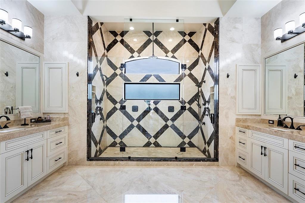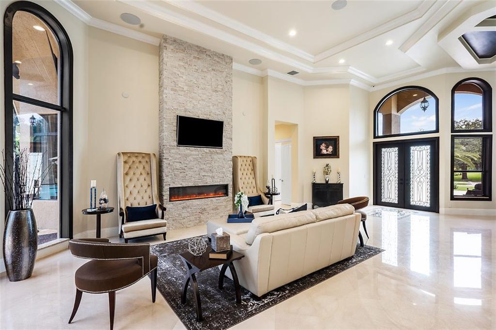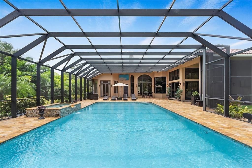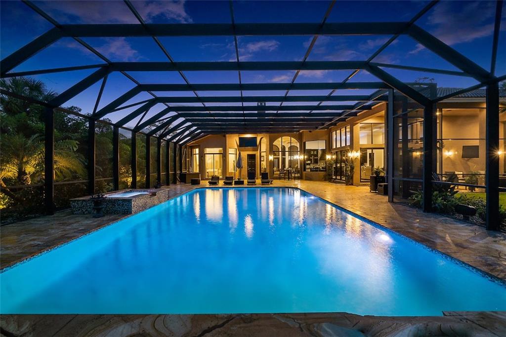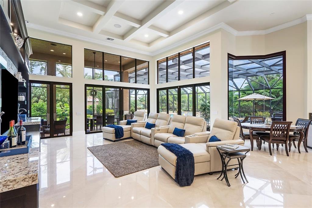 Meticulously & recently reconstructed to perfection with the finest materials under the critical eye of owners! Dramatic yet light & airy w/clean lines. Open design w/floor to ceiling walls of glass & soaring ceilings w/tasteful details. The kitchen will take your breath away with it's MASSIVE thick granite island, stunning cabinetry, top of the line appliances & pantry room. Offerings: state of the art theater room/36 x 36 marble floors/stack stone marble fireplace & display walls/Lavish master retreat w/breathtaking bath, huge jaw dropping shower, spray systems, rain shower, freestanding tub, thick stone counters & beautiful vanities/ An Enormous straight line heated pool with an exotic stone waterfall & spa take center-stage in the unbelievably large screened outdoor living areas.