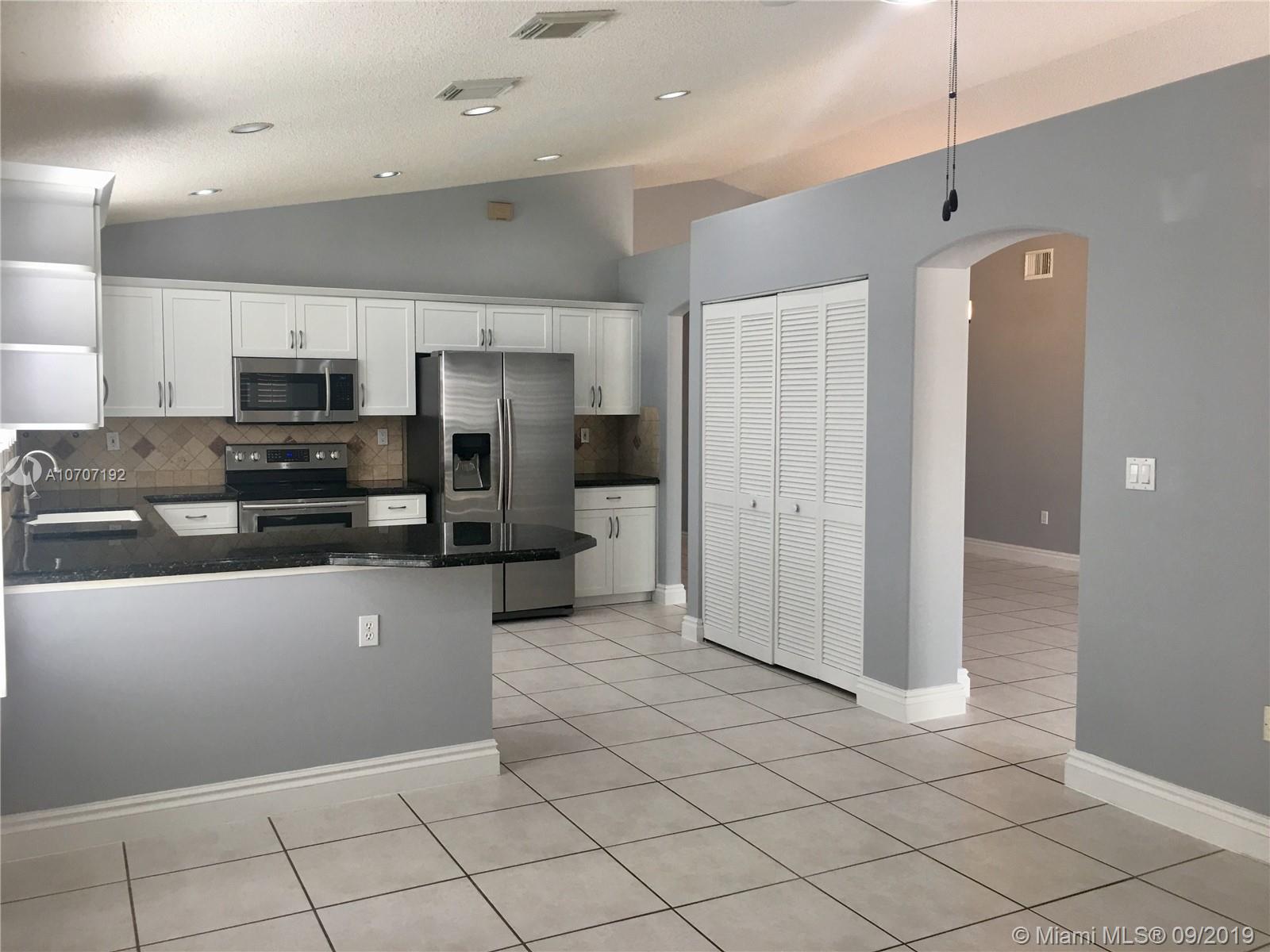 West Pembroke Pines Keystone Lakes waterfront home located in gated community. Updated kitchen with stainless steel appliances and granite countertops. Remodeled bathrooms, tile floors throughout living areas, hardwood floors in bedrooms, freshly painted with neutral colors, vaulted ceiling in living room, breathtaking water views, stamped concrete driveway and walkway, paver patio, S-tile roof, newer A/C, tot lot, A+ schools. Easy access to all major highways.