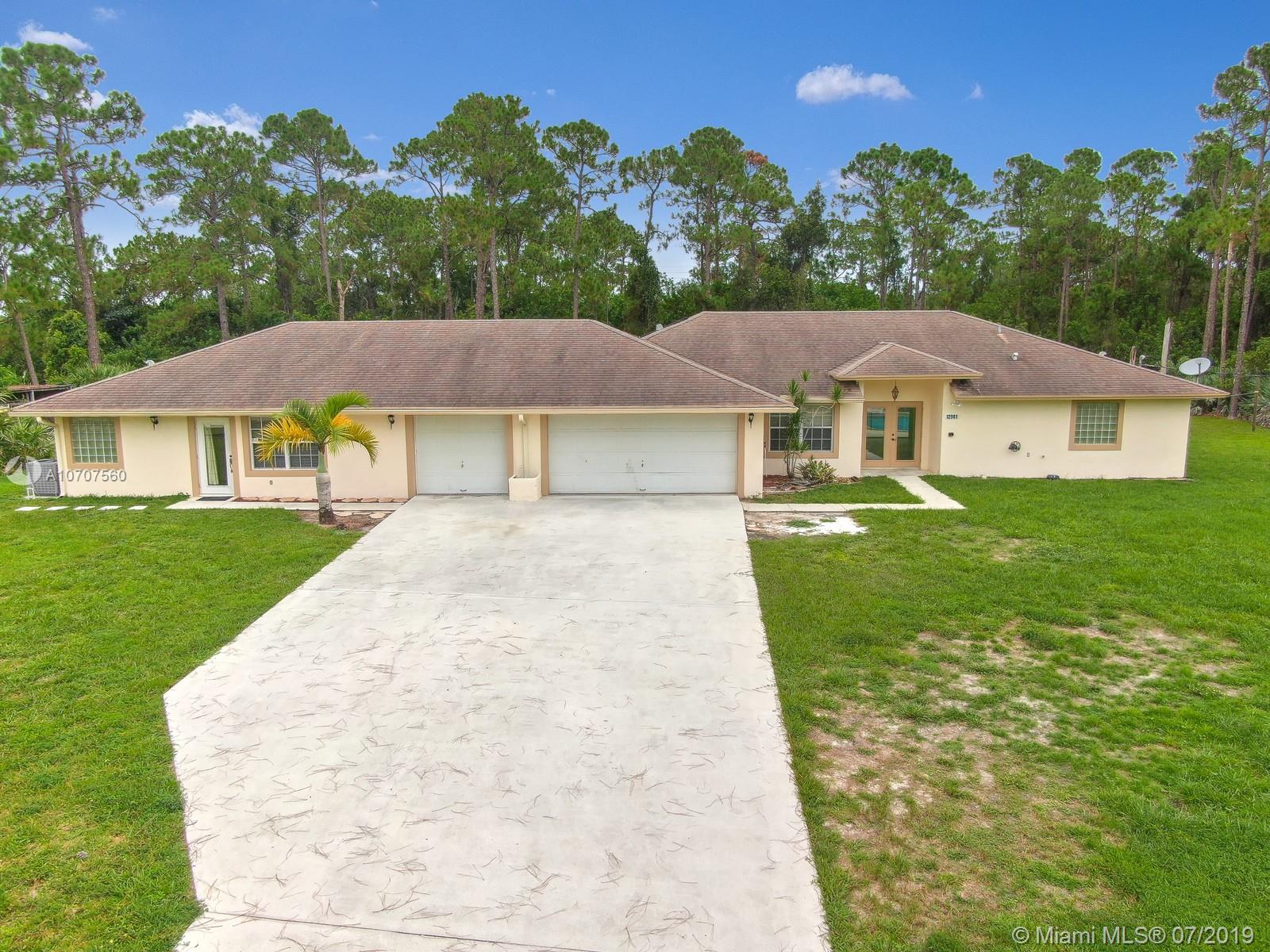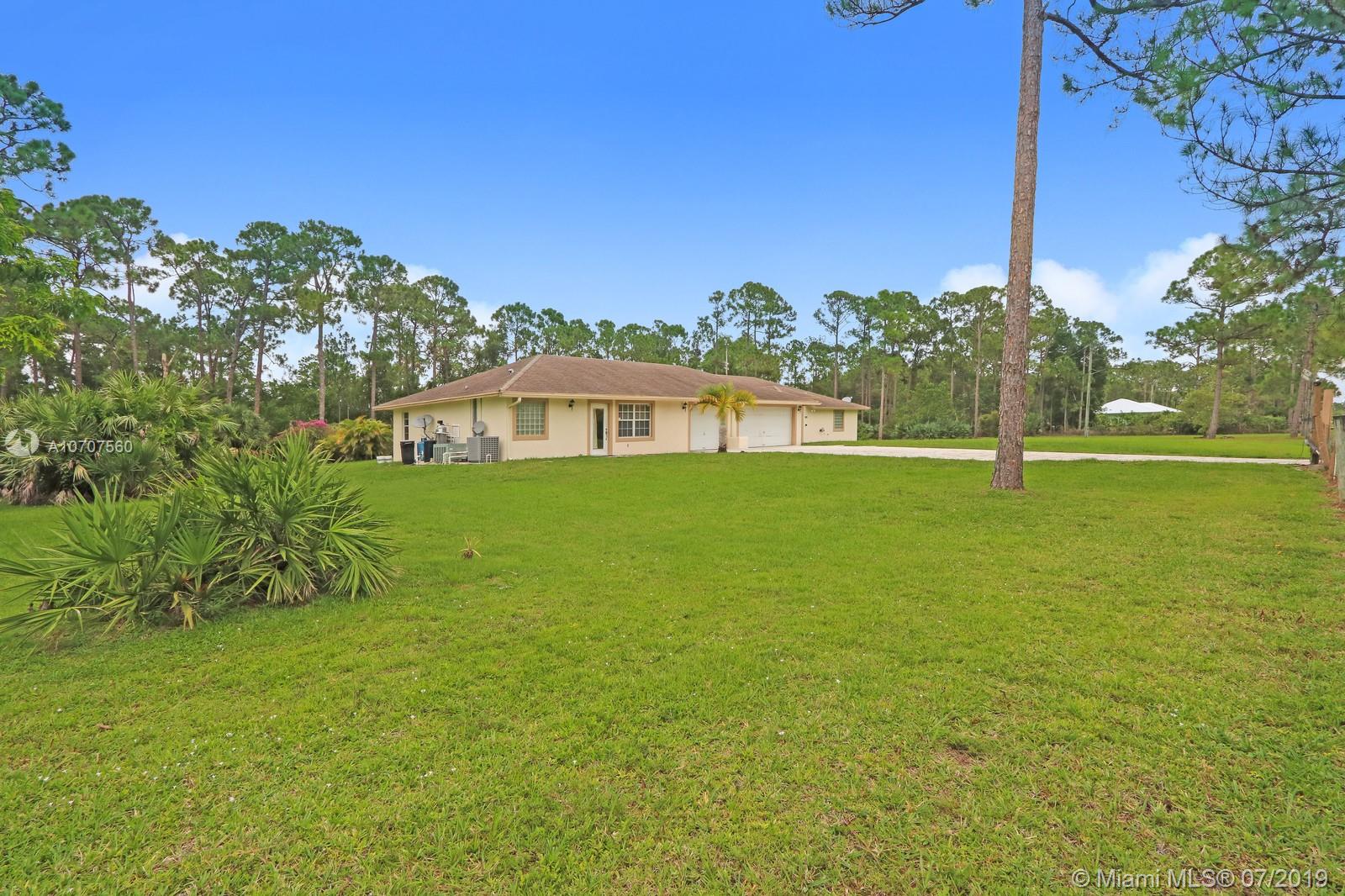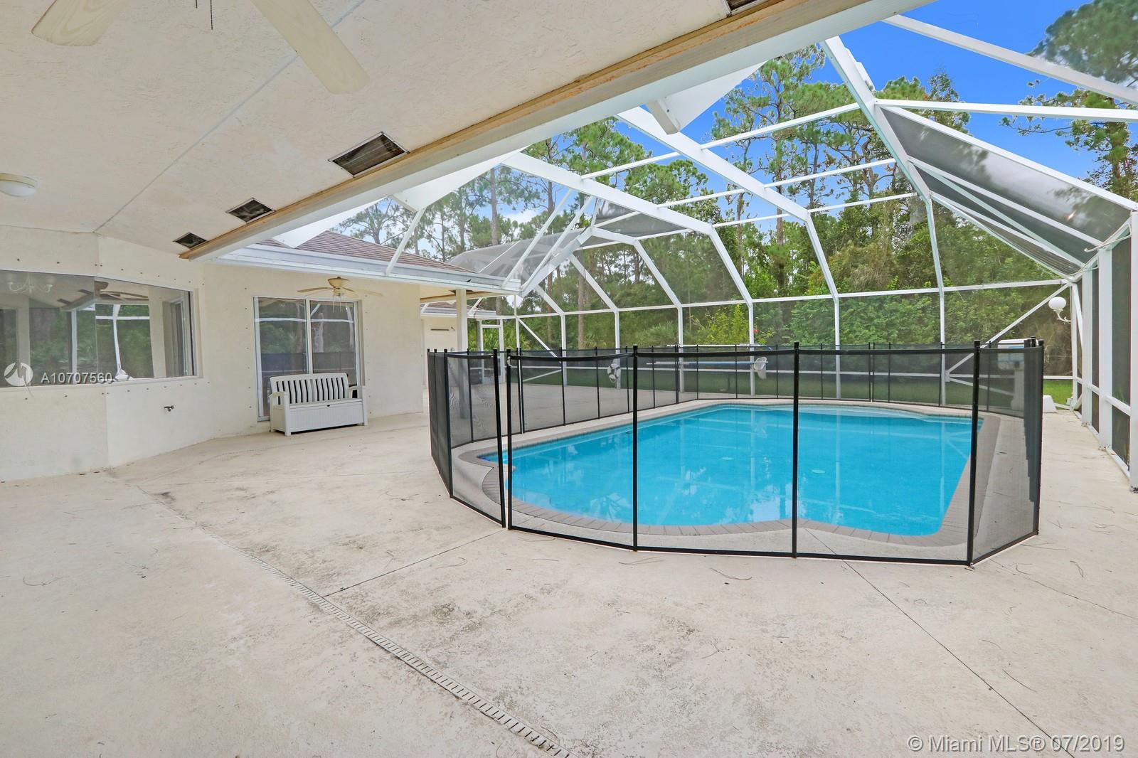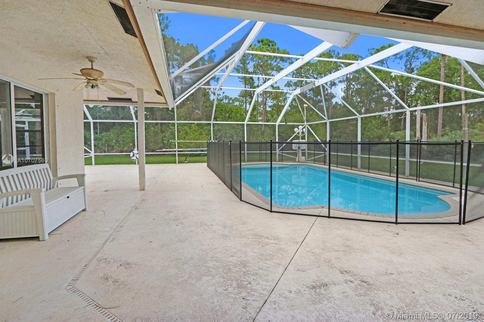 Beautiful corner home sitting on over 2 acres of land in The Acreage. The house is nestled among native Florida Pine trees. Spacious home with large bedrooms and baths. Screened pool with child fence. Tile flooring throughout the home. Separate in-law suite attached to the home. Great potential for horses, as there's already a paddock on the property.