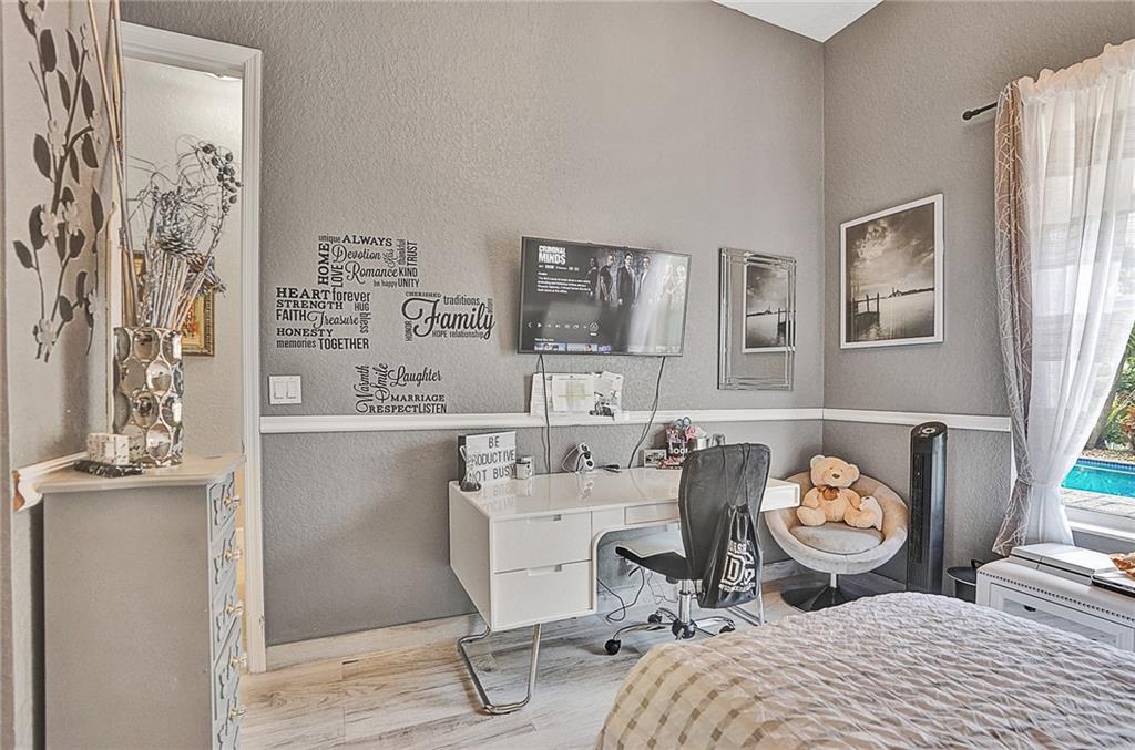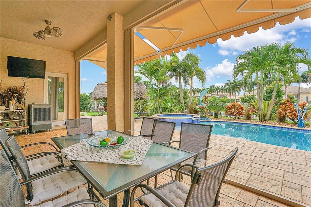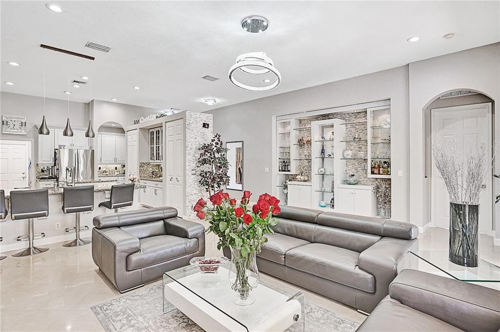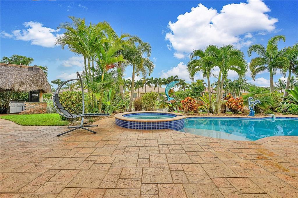 Meticulously remodeled in 2018!! Over half an acre lot, 5 bedrooms, 3 bathrooms, beautiful and very spacious water front home in the prestigious community of Hibbs Grove in the heart of Cooper City. The home features a gourmet kitchen with a center island, granite counter tops, double oven and top-of-the-line stainless steel appliances. A formal living and dinning rooms, and a very large family room with motorized blinds. Tile floors throughout the house, high ceilings, all closets are custom made. Split floor plan. An amazing backyard, perfect for entertainment! with a new heated pool and a spa, a large patio with awning, Tiki Bar with built-in barbecue grill, and lots of extra space. Hurricane impact windows and accordions shutters, gated community. Rated A+ schools.