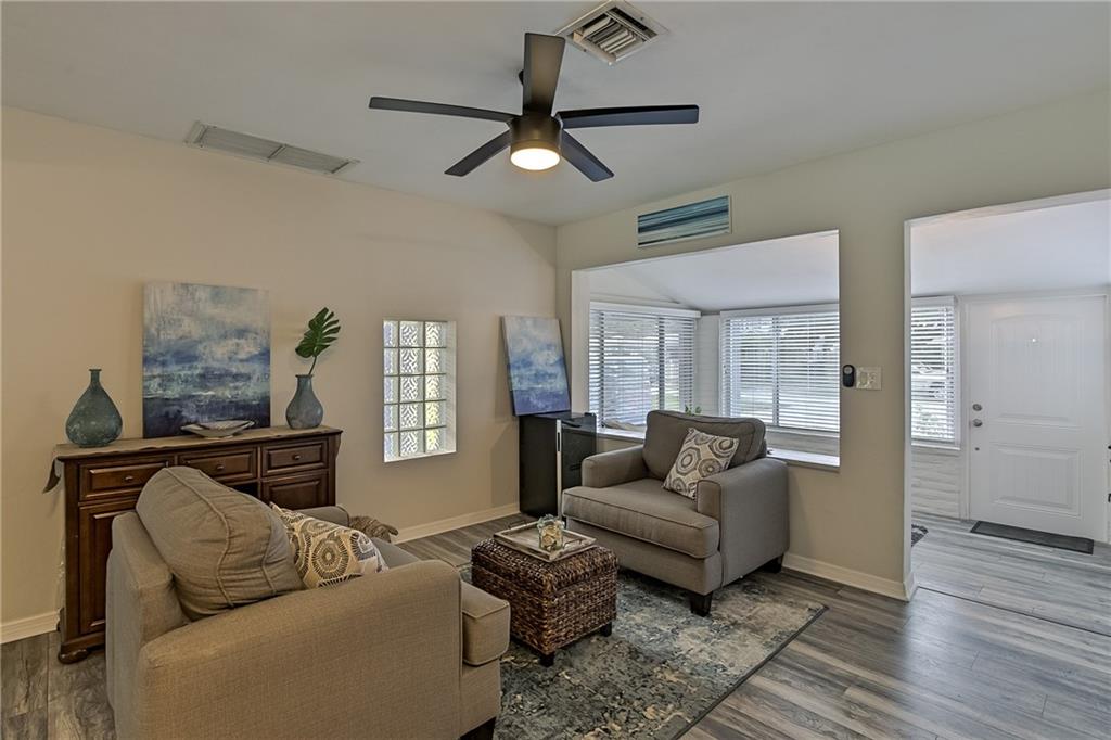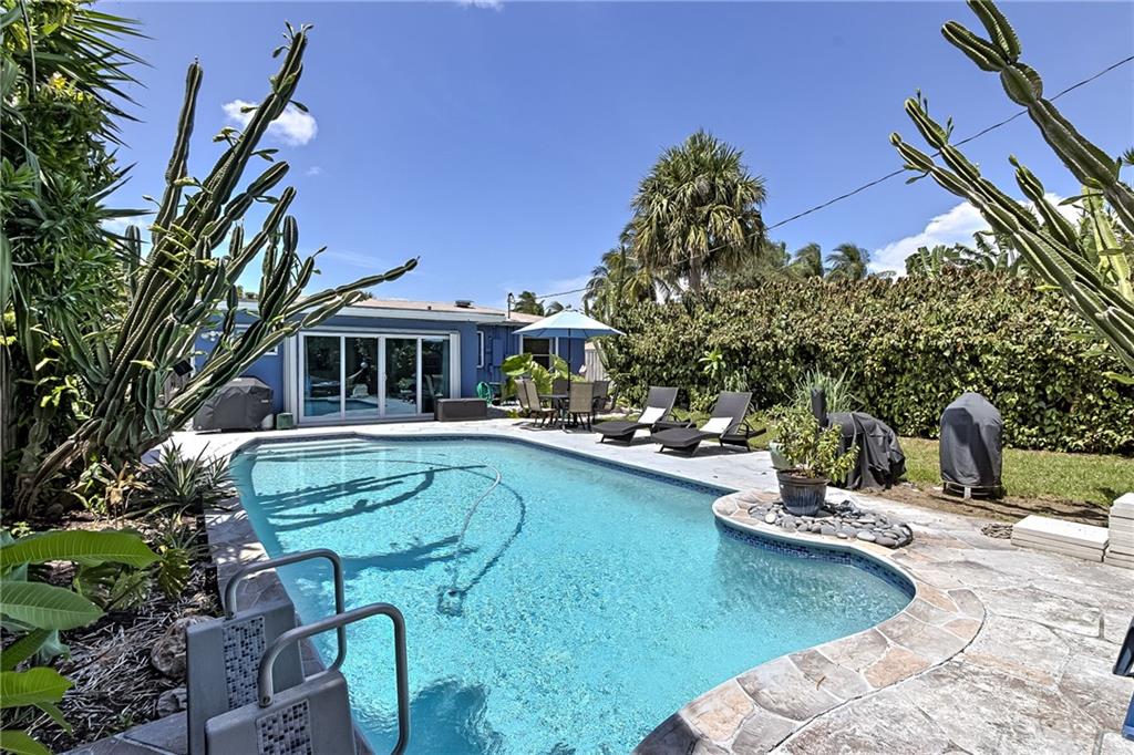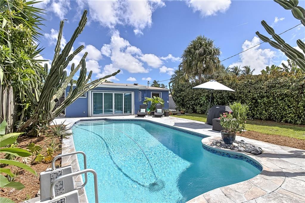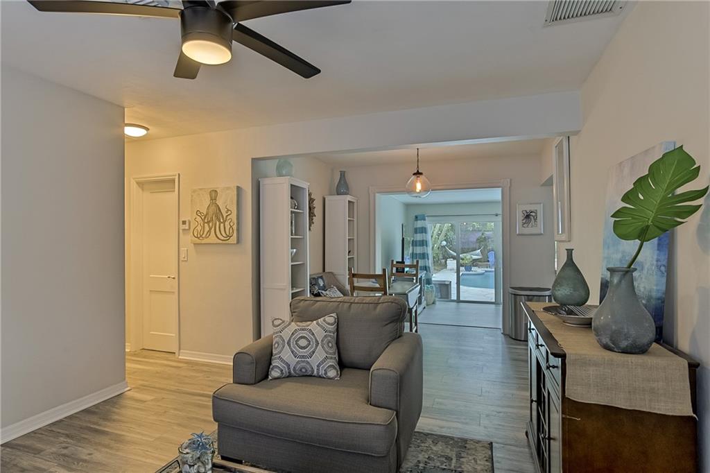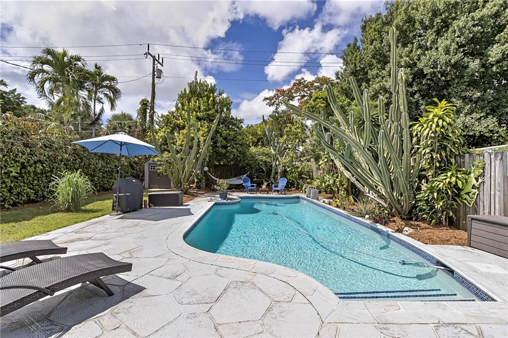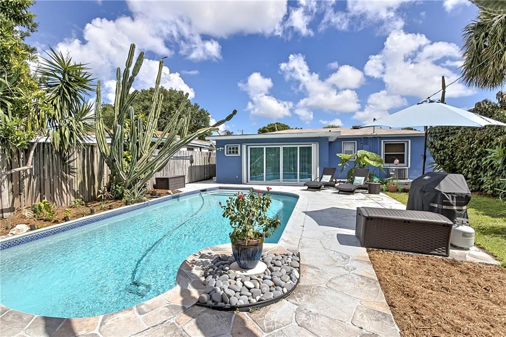 Remodeled 2 bedroom 1 bath spacious pool home. Newer kitchen with granite counters,gas stove & upgraded appliances. Home offers room at entrance that can be used as an office or sitting area, living room, dining & family room. Family room has sliders that lead out to the pool. Bathroom recently completely remodeled with walk in shower. Newer engineered wood flooring throughout entire home. Home has hurricane protection for windows and doors. Recently painted inside and out for nice fresh look. Large backyard with big pool that was recently resurfaced & also with new pump and filter system. Water heater and central a/c are newer as well. Double wide driveway is newer with one car carport. Washer and dryer are in carport area. Nice residential area close to downtown and airport. SHOWS WELL!