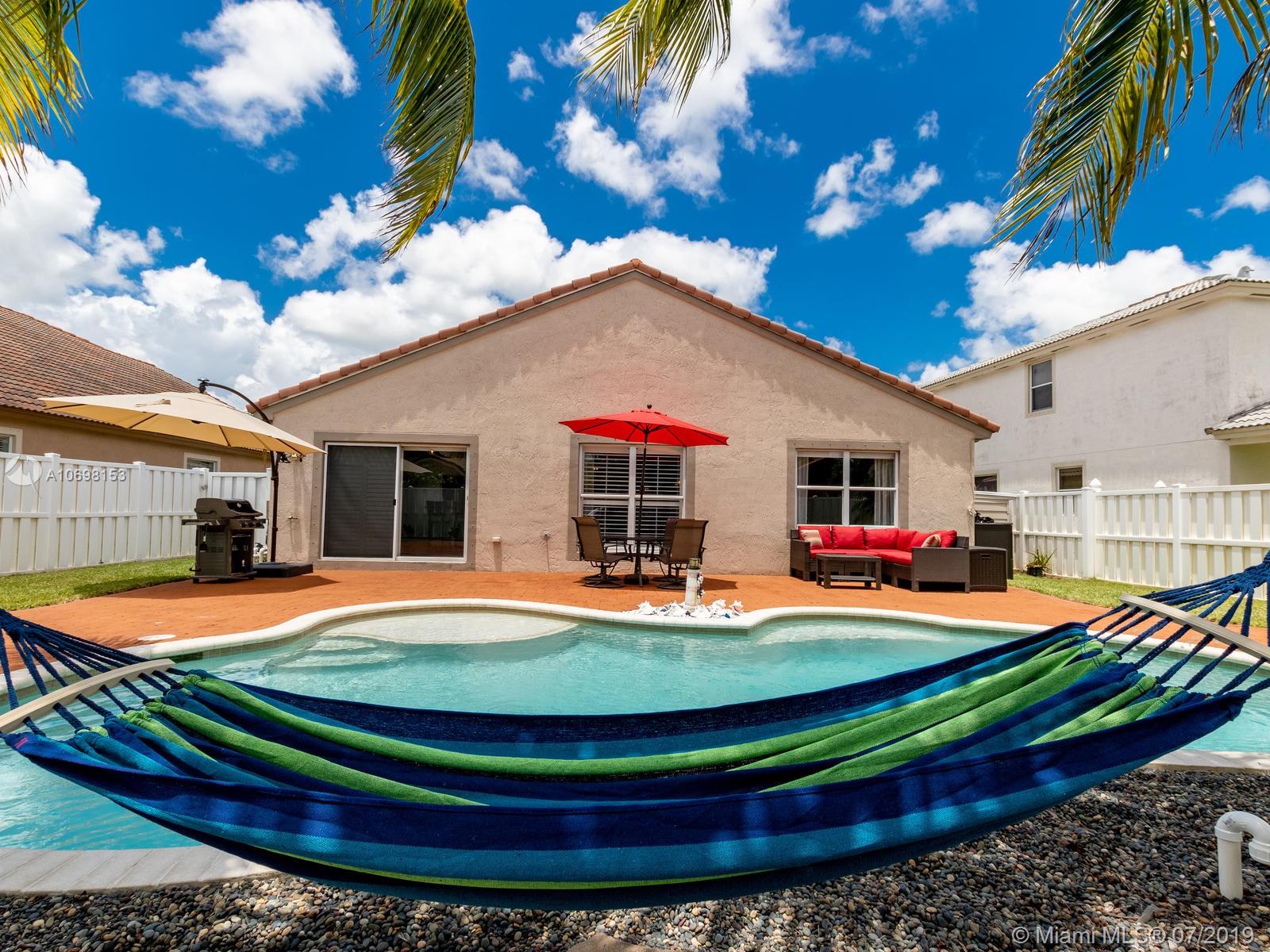 Located in this exclusive community of "PEMBROKE FALLS" sits this nicely updated, move in ready, 3 bedrooms 2 bathrooms, pool home. This one story open concept home is in the 'BIMINI' development and features remodeled kitchen and bathrooms, updated ceramic floors, and a welcoming pool as you relax in the backyard. HOA includes, cable, alarm, internet and security. This community has the most beautiful Clubhouse with pool and Tennis court, Ball Room, gym, Basketball court and Aerobics room. Very close to I-75, shops and restaurants and walking distance to schools. Property is price to sell...Don't miss the opportunity to move here.