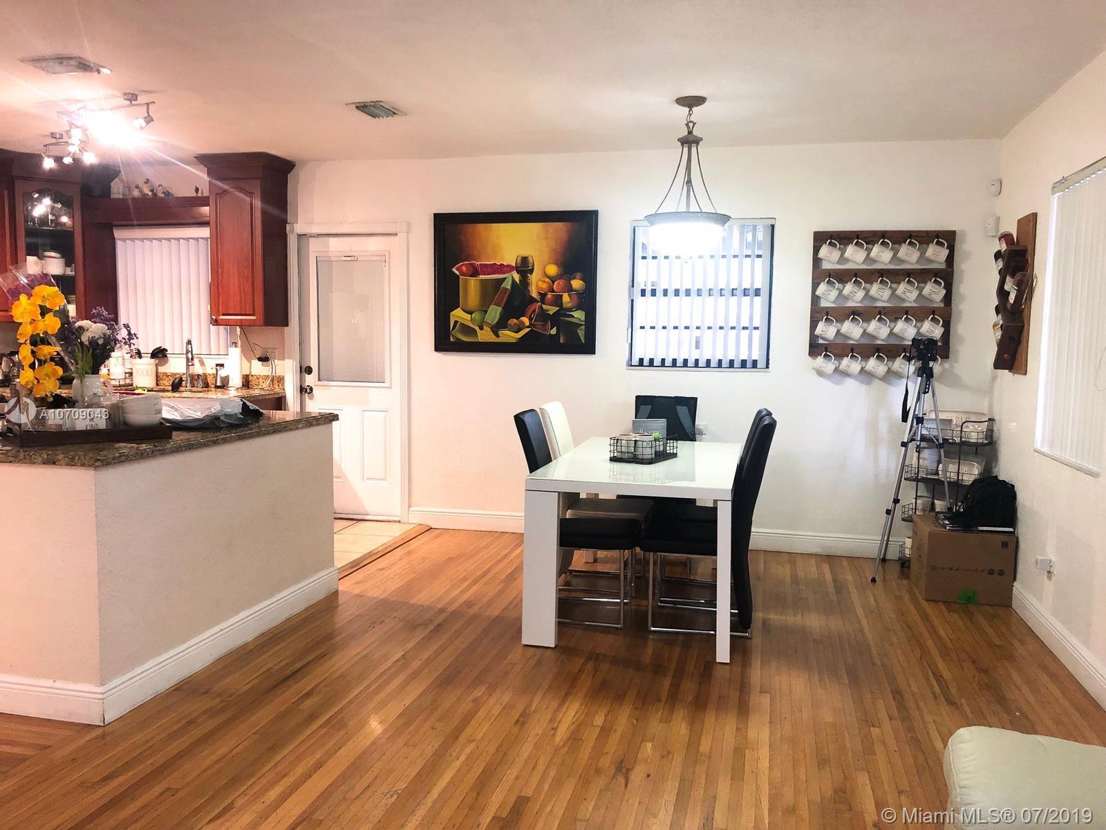 THIS IS A THREE BEDROOM/TWO BATHROOM HOUSE IN HIALEAH WITH A TERRACE, AMPLE PATIO SPACE, AND HARDWOOD FLOORS. THE DRIVEWAY IS RATHER BROAD AND INCLUDES A COVERED PARKING SPACE ADJACENT TO THE HOUSE. THE KITCHEN IS ADORNED WITH WOODEN CABINETS AND GRANITE COUNTER TOPS, AS WELL AS AN ISLAND. THE DINING ROOM AND KITCHEN ARE A SHARED SPACE, YET SPACIOUS. THE MAIN BATHROOM IS GOING TO BE COMPLETELY REMODELED.