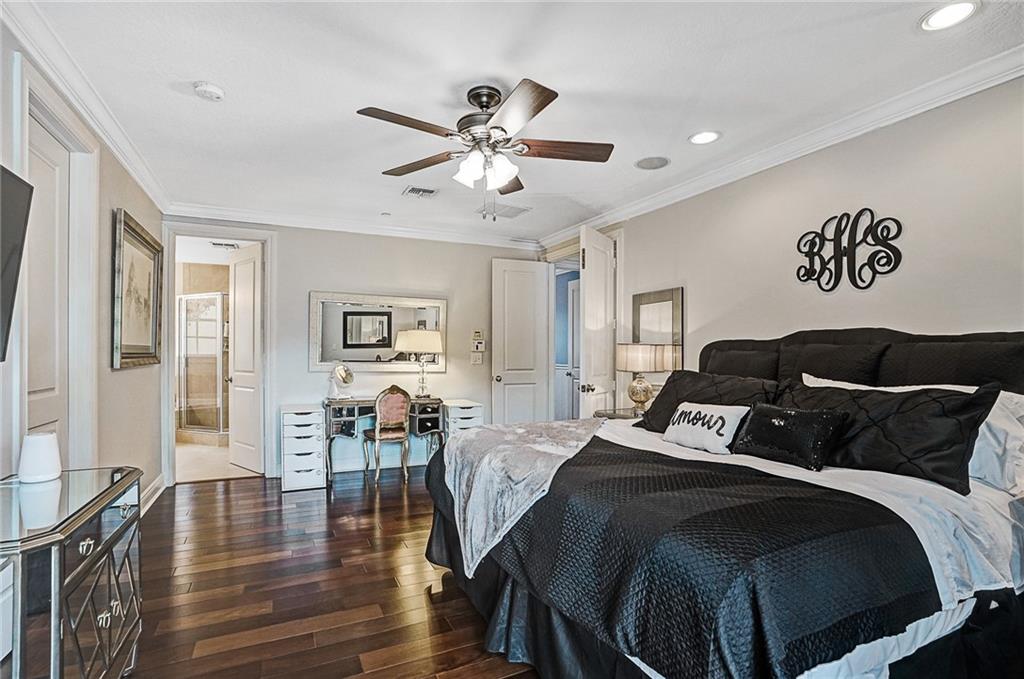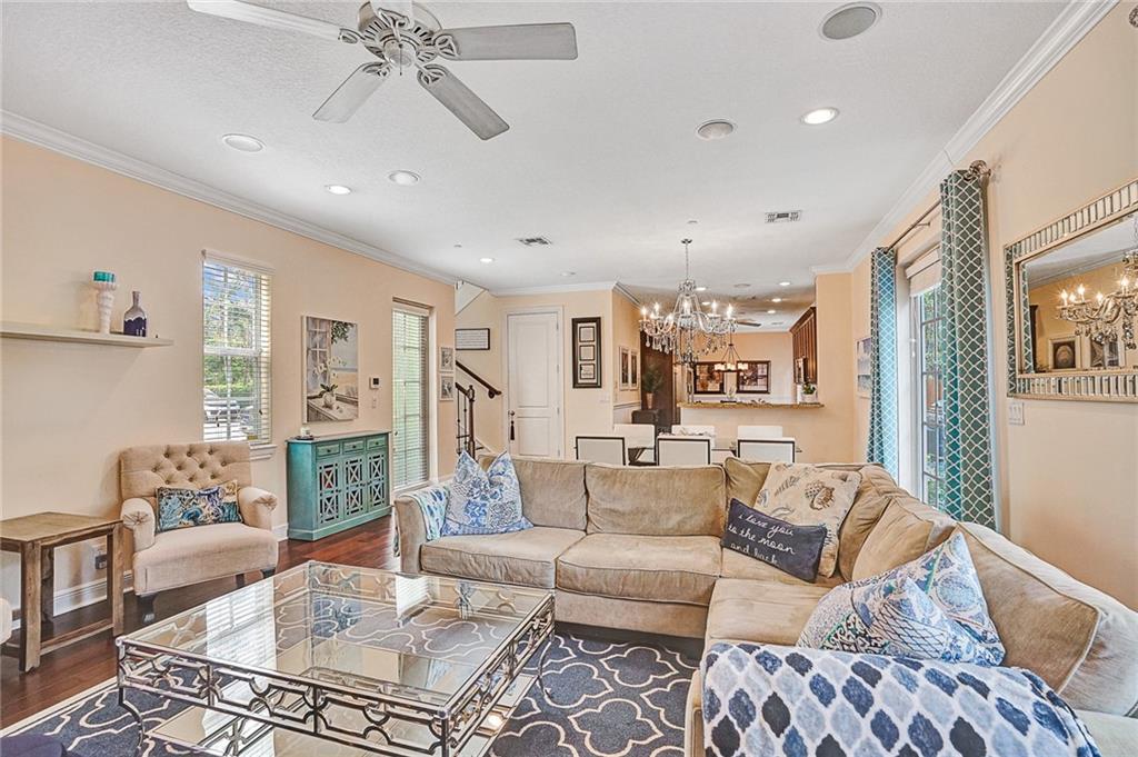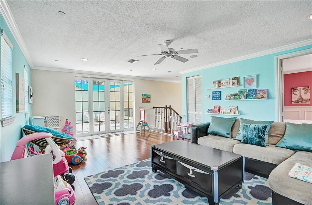 PRICED TO SELL!! Stunning 4/3.5 town-home with private swimming pool and tranquil waterfall. Largest unit in the complex with gorgeous wood flooring throughout, impact resistant windows/doors, 2 new A/C units, lots of storage and ceiling fans and speakers in every room! Large eat in kitchen with stainless steel appliances, wood cabinets, and granite counter-tops.