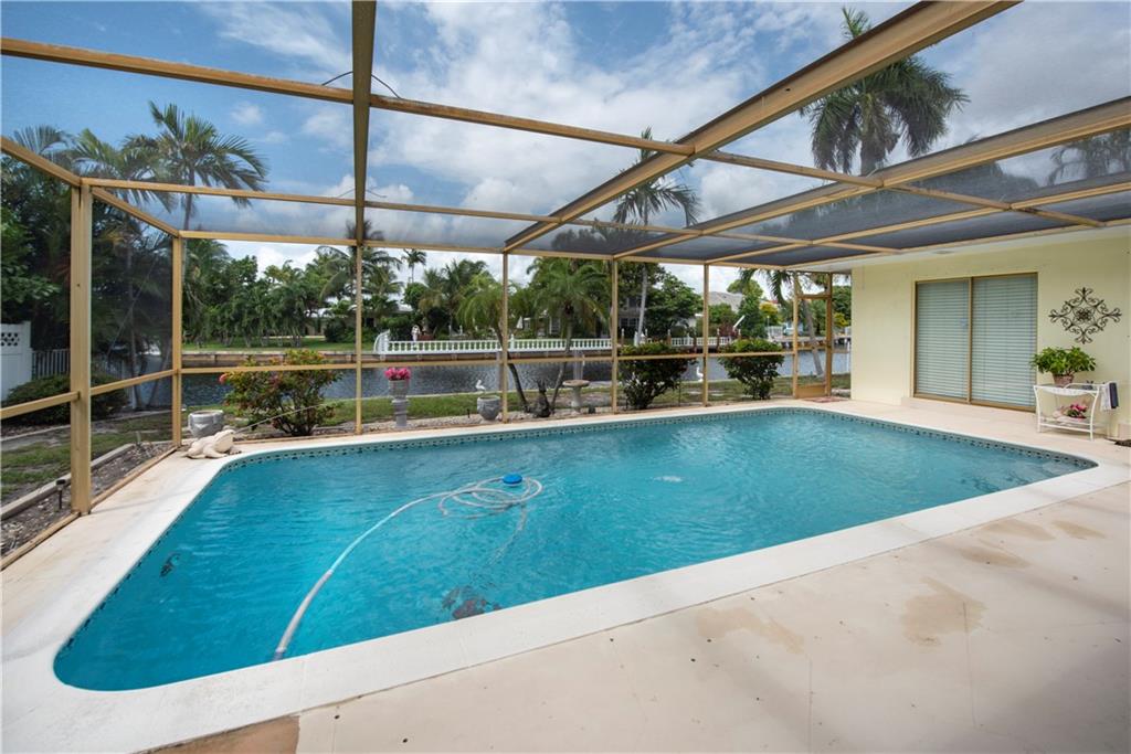 Immaculate 4/3 in the heart of The Landings! Bright, crisp, light-filled spaces, Southern exposure & long water views in 3 directions abound. Rutenberg split floor plan w/continuous neutral tile throughout. Updated kitchen w/stainless appliances & breakfast bar is the focal point of the home. Prepare gourmet meals while looking out at the water & enjoying company in the adjoining family room. Spacious master bedroom w/walk-in closet, en-suite bath & sliders open to the pool. 3 guest bedrooms - 1 of which has an en-suite bath/cabana bath & opens to pool. Screen enclosed pool w/large covered area for outdoor living. 80' of waterfront on wide canal w/long canal views, large turning basin & only 1 fixed bridge for idyllic boating setup. 2 car garage. Amazing location 1.1 mile from the beach!!