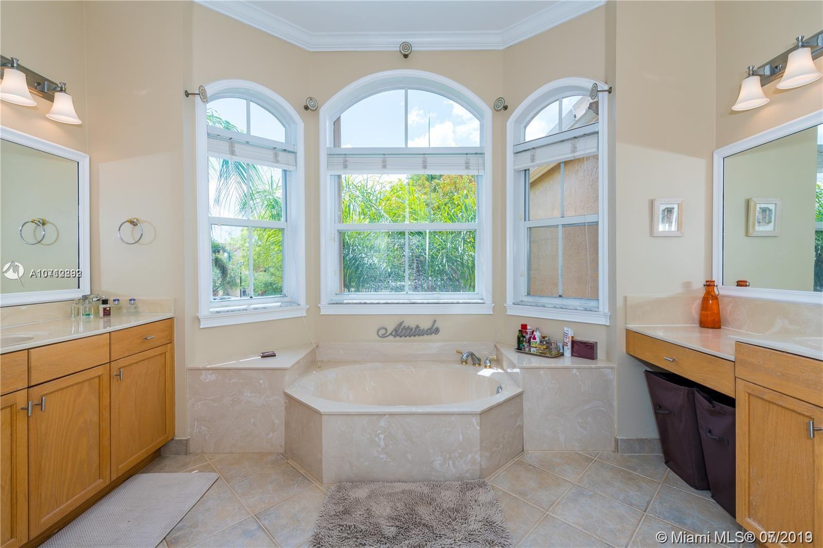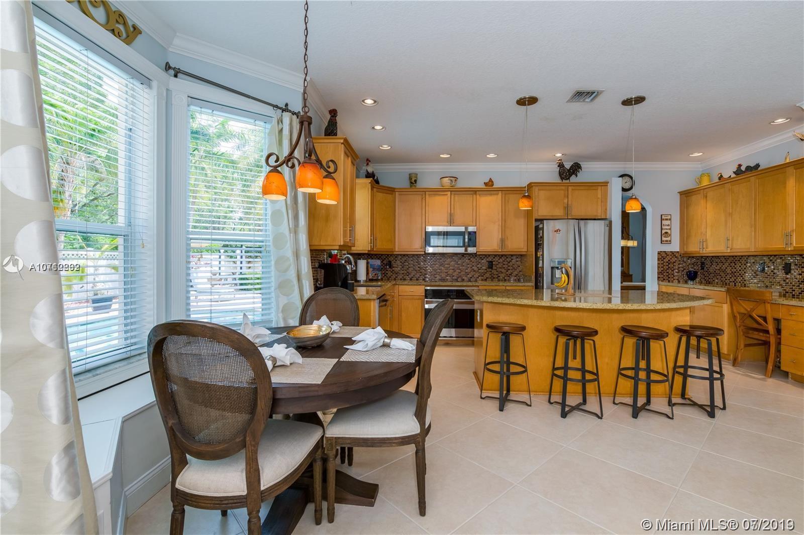 Rare opportunity to own this tastefully upgraded & impeccably maintained home by original owners. The property sits on an oversized lot with no rear neighbors. Surrounded by lush mature tropical trees the yard features a large paver patio and oversized pool which is perfect for entertaining & pool parties. The 1st-floor feature 24 inch porcelain tile, a large modern EIK with oversized center island in granite, the adjacent family room features surround sound, a new 1/2 bath on 1st fl, vaulted ceilings newer paint, drapes and more. Follow the grand circular stairs up and you will find hardwood floors, a renovated full bath, all of the large bedrooms including the elegant master suite. Located in resort style community w/ Tennis, Gym, Pool, basketball courts. 5th Bedroom taken as den option.