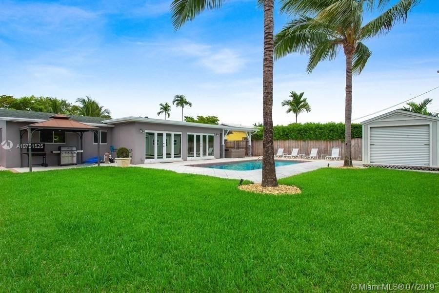 WOW! This beautifully updated pool home is move-in ready! Walk in to a spacious 3 bedroom, 2 bathroom home with a nice open layout. This residence features impact windows and French doors, crown moldings and baseboards, alarm, 2 car garage, circular paved driveway, tile floors throughout and wood “like” floors in bedrooms, formal dining space with views to the pool and recessed lighting. The kitchen offers stainless steel appliances, dark cherry wood cabinets, and granite countertops. The backyard sits on a large 9,975SF lot with a shed, pool, tropical lush landscaping and a covered patio which is great for outdoor entertaining. Location, location! Live in Hollywood Hills best locations close to major highways, shopping and A+Rated Hollywood Hills Elementary school zone.