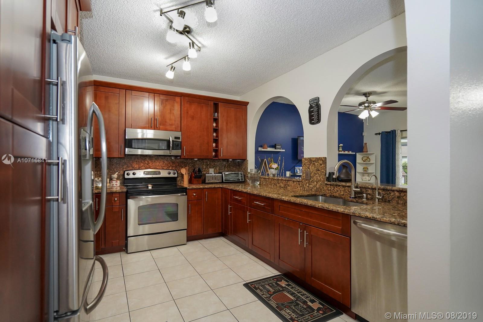 Remodeled Townhouse in the desirable neighborhood of Plantation Trace only 5 minutes away from Sawgrass Outlet mall, BB&T center, shopping, dinning and easy access to expressways. House is across the street from Flaming park and Sawgrass Elementary School. Also 20 minutes from FLL airport. There is 4 car parking space driveway and Garage. Plentiful Guest parking available.Roof is covered by HOA. This beautiful 3 bedroom townhouse has a beautiful upgraded kitchen, granite counter tops. Recently remodeled bathrooms with high end finishes. Baths have motion sensorsed lights and all doors have magnet latches. This unit also offers lots of storage and spacious rooms, keyless entry, Camera in front and back. Hurricane accordion shutters. Community has a playground and swimming pool for residents