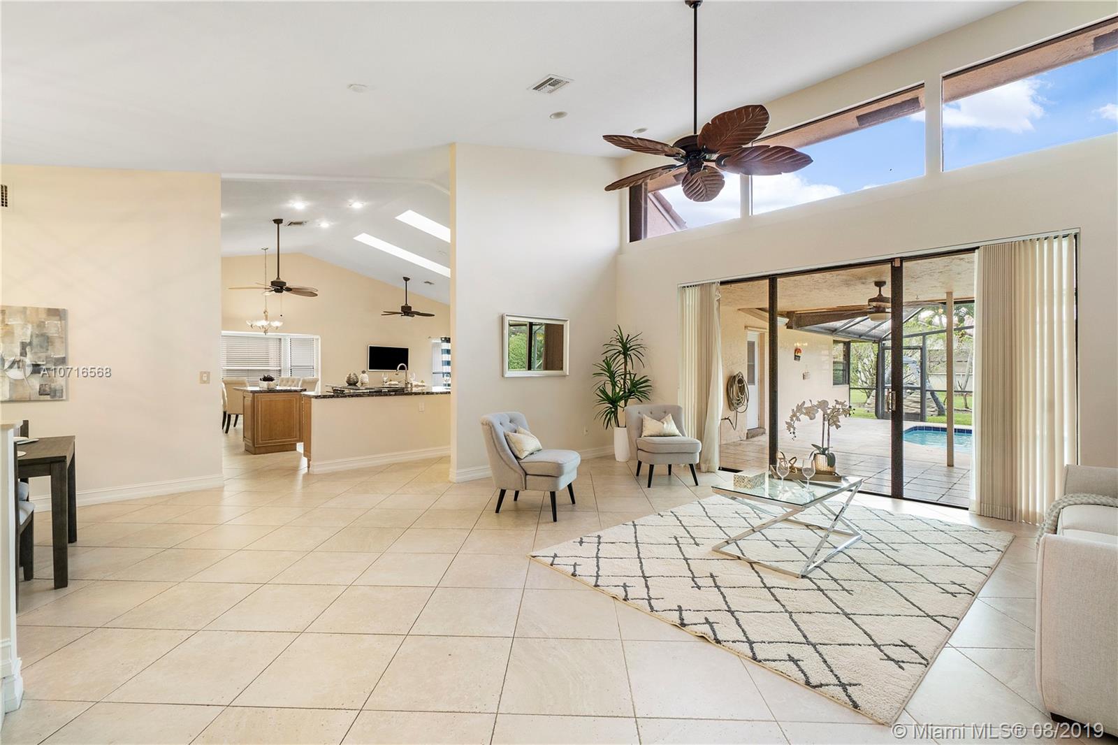 UPDATED, LIGHT & BRIGHT, OPEN FLOOR PLAN! 5Th Bedroom is BONUS ROOM, can be used as office, baby nursery, or can become extended Master Suite! Home features: Diagonally laid tile, NO Carpet, Fresh Paint, NEW kitchen remodel with thick slab granite, LED lighting, and Open Floor Concept making this home perfect for entertaining guests and family. New Travertine Pavered Pool deck (2016) along with Diamond Brite.(2016) New Solar Heating Pool Panels and New Pool Pump. Newer Washer and Dryer. Remodeled Master bathroom with Frameless Shower and dual shower heads. Huge master Closet with cabinetry. Hurricane Shutters and Hurricane Impact Garage door. Home is situated on a large corner lot.