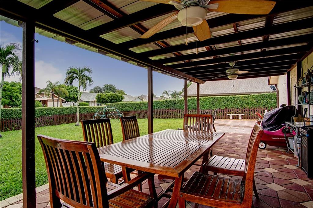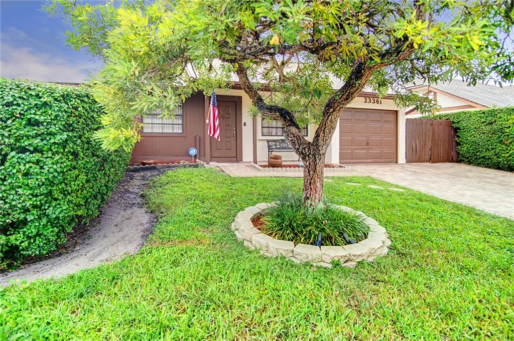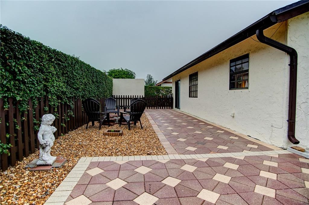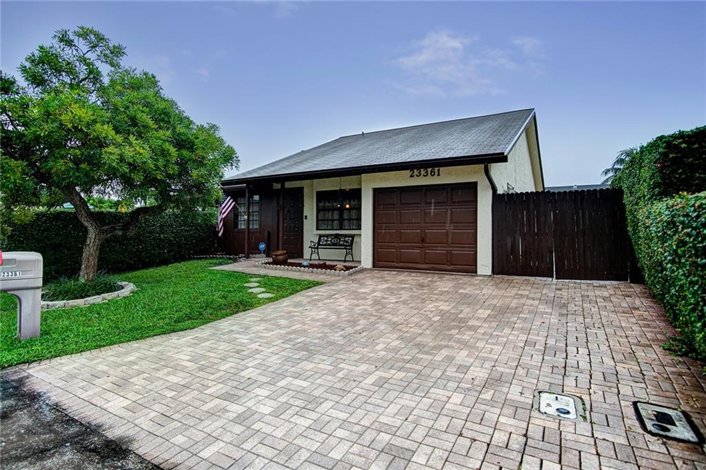 Don't miss this beautifully maintained 3 BR, 2 Bath single family home in West Boca for under $260,000. The property is a condo, but is detached on a large corner lot with a one car garage (owner converted to a writing room which can be easily converted back to garage). Let the kids play in the fenced yard while you enjoy a beverage under the large covered paver patio. The kitchen is upgraded with wood cabinets (with lazy susan) marble counter tops, stainless steel appliances, built in microwave and a breakfast area. Newer Roof replaced in 2012 and new hot water heater (2016). The side yard includes pavers with a sitting area, a concrete block detached storage room and room to park your boat. The owners take great care of their home and it shows like it!!
