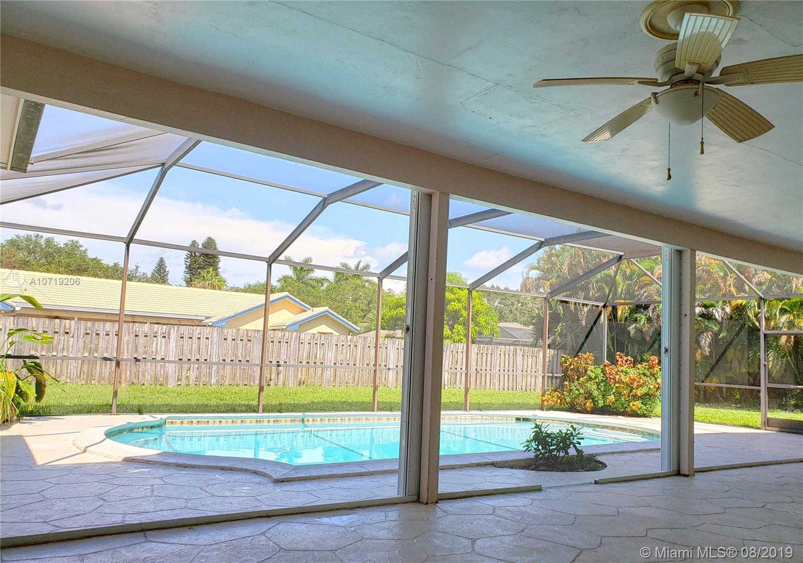 Lovely Home in prestigious Gated Community of "El Dorado Estates". This 4 Bedroom 3 Bath Pool Home rests on a huge 13,000 square foot lot. Large screened in Patio and Pool are fenced in for privacy. Large circular drive with space for many cars. It also has Accordian style Hurricane shutters. The low HOA includes: Clubhouse, Volleyball court, Tennis court, Playground and 24 hour Guard at gate. Located close to all major Highways, Shopping and Restaurants. This Home has been very well maintained and won't last! Schedule a showing today! Refrigerator in laundry room not included in sale.