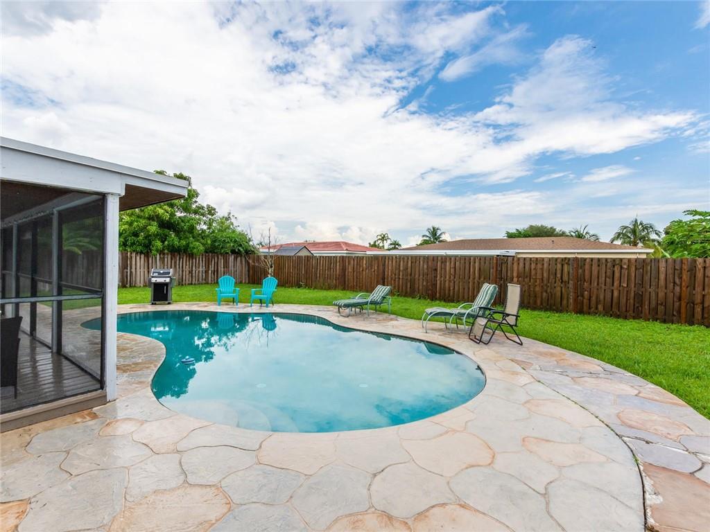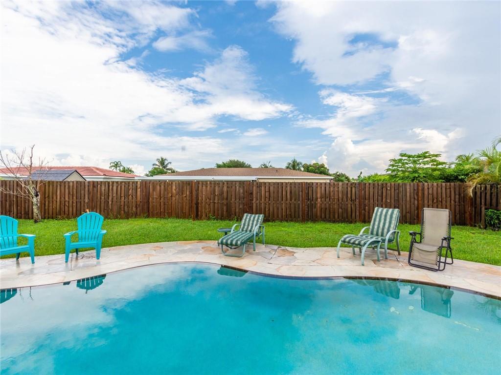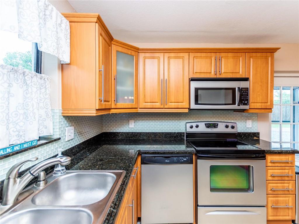 OPEN HOUSE THIS WEEKEND SAT 1-4 SUNDAY 11-1 Great location!!! Charming and cozy 3/2 bath home. Open and bright.Sit and relax by your beautiful POOL. Fully fenced in PRIVATE huge back yard. New pool pump and the roof was replaced with a METAL s-shaped roof in 2006.Screened in porch overlooks pool. Double entry gates and a storage shed. Completely redone kitchen with granite and stainless steel. Renovated bathrooms. 3 year old ac. Giant flat screen tv stays with the home.Home shows pride of ownership. VERY LOW MAINT FEES. Hurry will go fast! PLEASE DO NOT LET FRIENDLY DOG NAMED ROSIE OR CAT OUT!!!