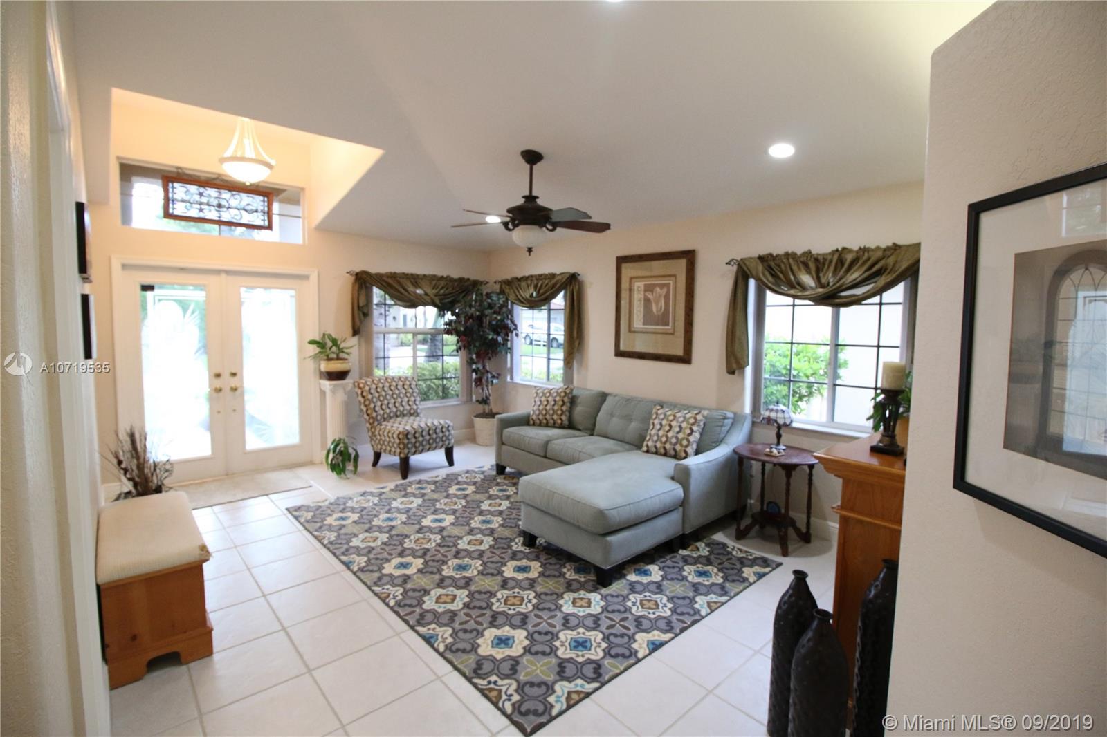 Move in ready!! Stunning 3 Bedroom, 2 Bath home 2223 sqft. Brand New Concrete Tile Roof in 2019, recently upgraded bathrooms and newer AC. 2 car garage w/ built in storage, attic w/ walk-in storage (drop stairs), epoxy floor system, generator transfer switch and utility sink. California closets, stainless steel appliances, granite counter tops. Rounded corners and soaring ceilings. Tile and carpet throughout. Brick paver driveway and back patio, back patio screen enclosure, newly painted exterior, lawn sprinkler system w/separate irrigation meter. One mile from Sawgrass Mills Mall, and BB&T Center. Conveniently located near I-75, I-595, and Sawgrass Expy. Close to Shops and Restaurants. Quiet family friendly neighborhood with no thru traffic. Must see this great family home!