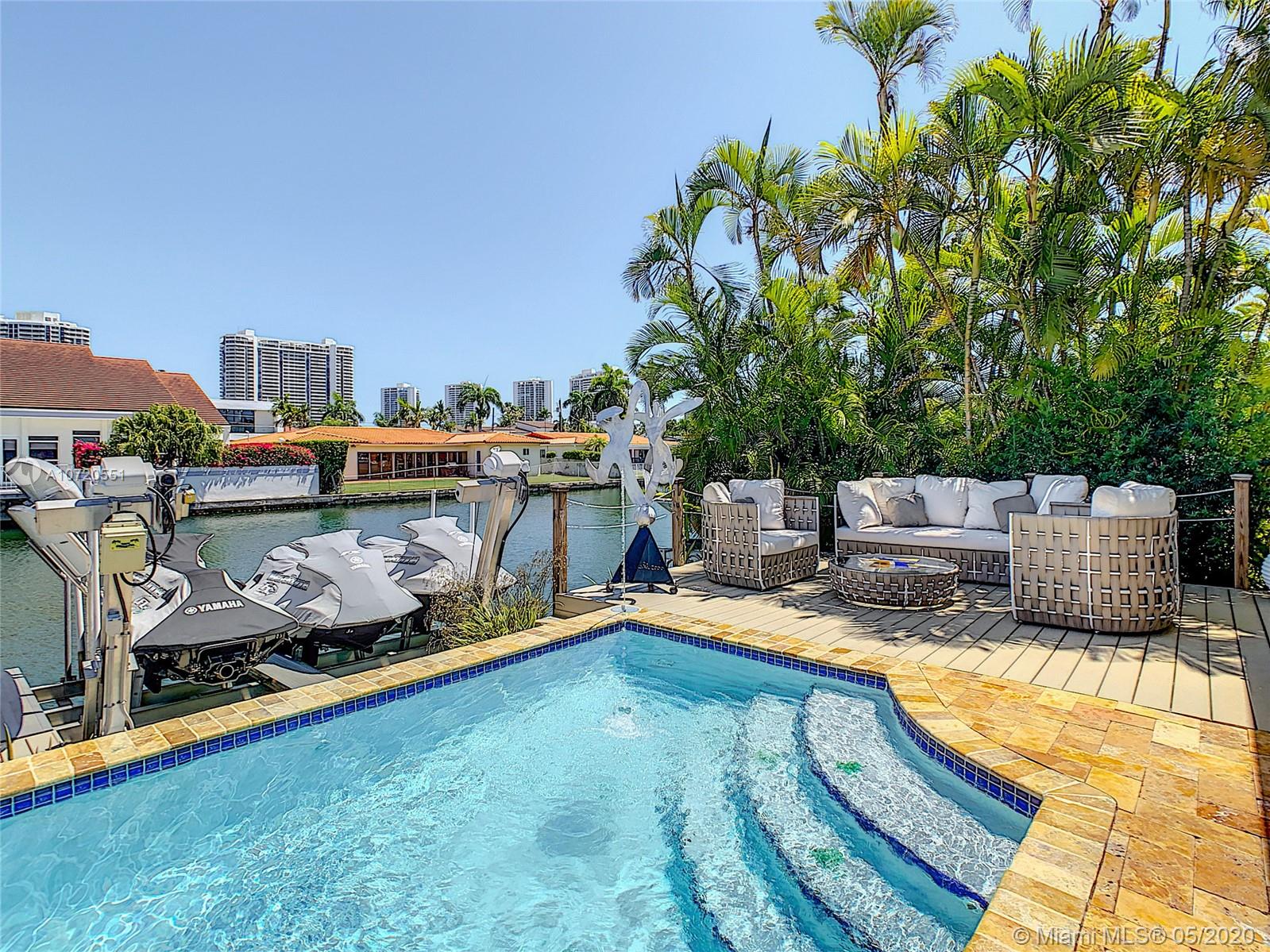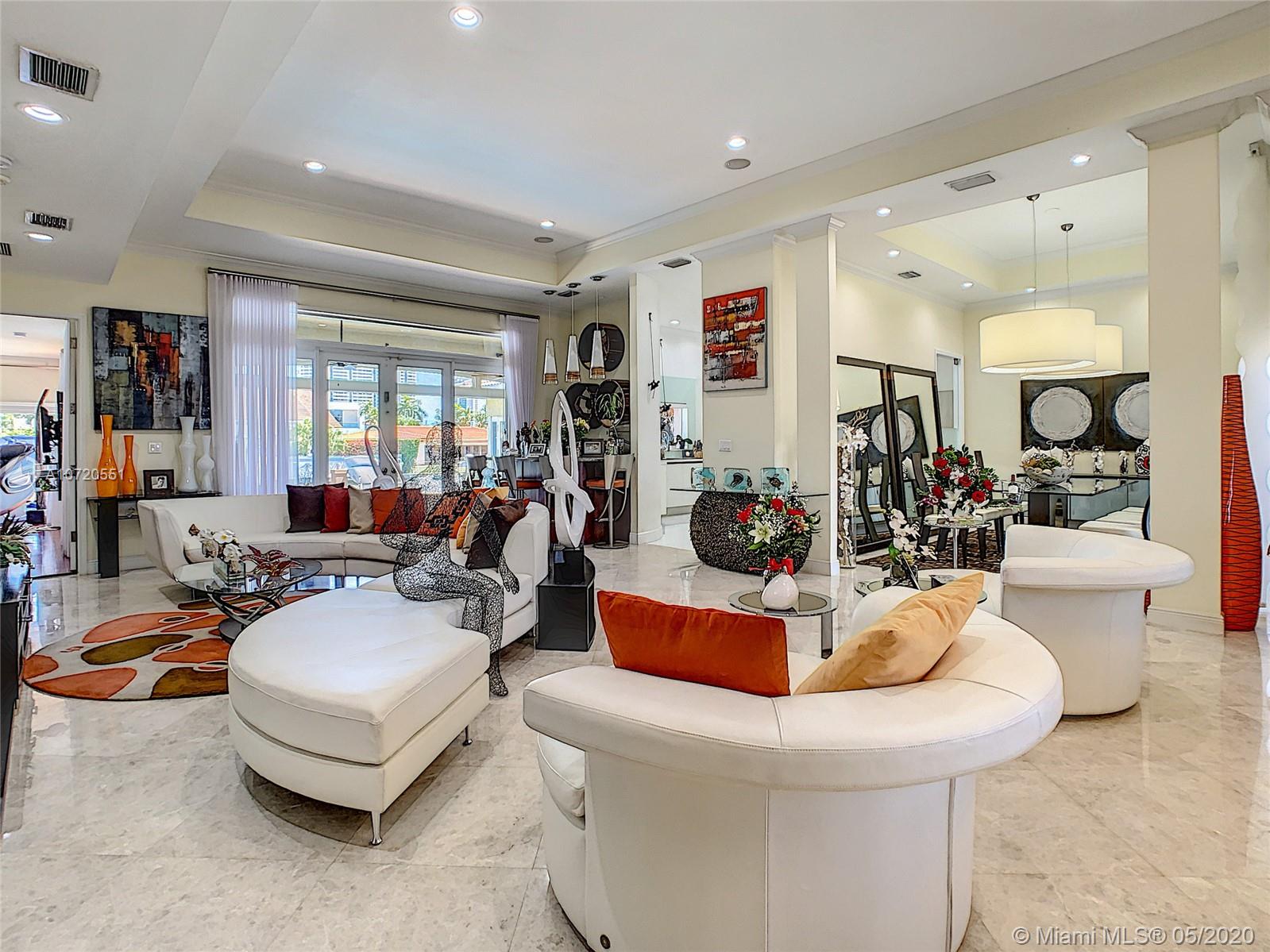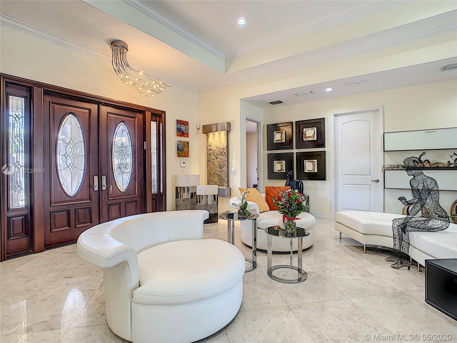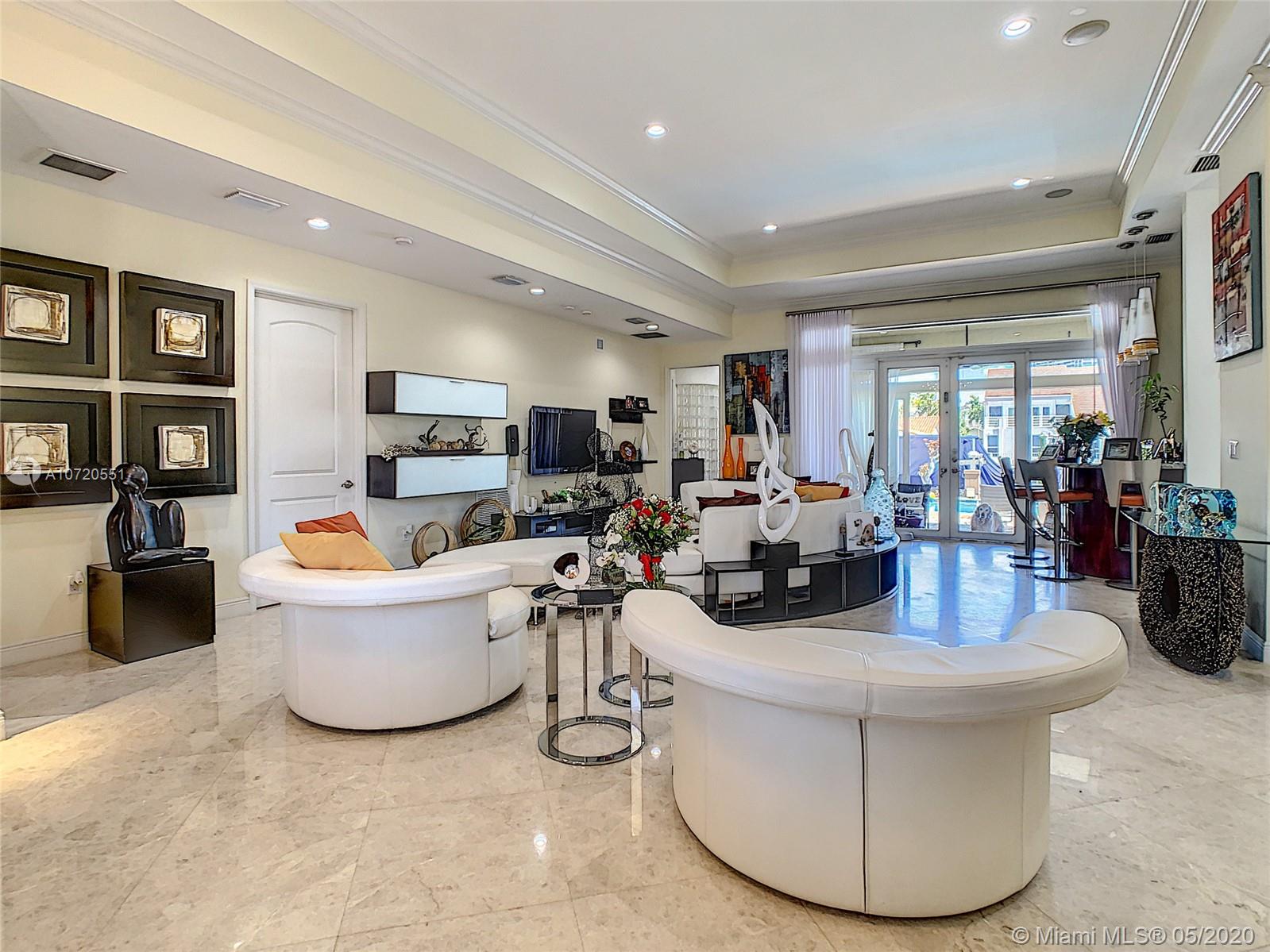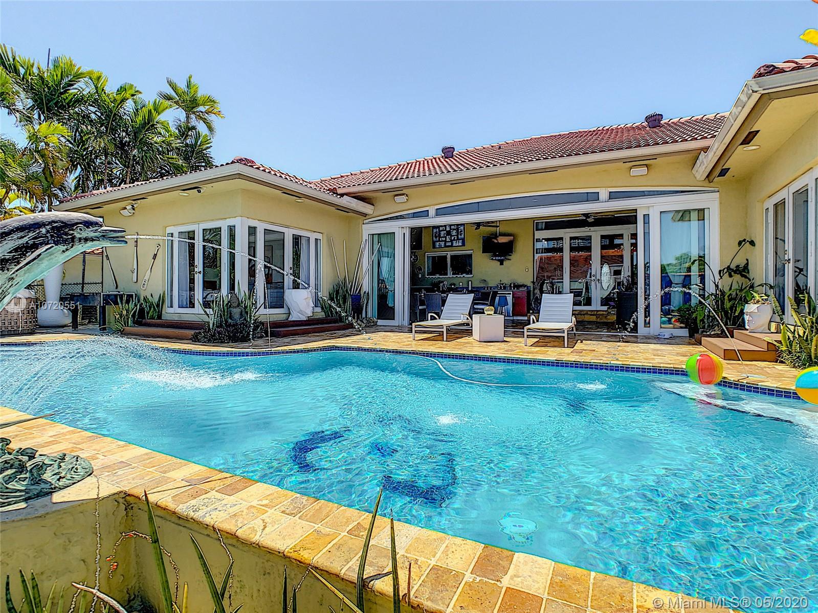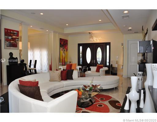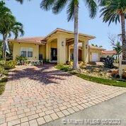 Gorgeous Custom build one Story Waterfront Home, marble and porcelain floors, Impact windows, Dream Italian design kitchen and a second kitchen at the family, 4 bedrooms, 3 bath with great Driveway at entrance. 80' water frontage with no fixes bridges. Automatic lift for a 30' boat and 2 others for jet sky .YACHTMANS DREAM IN GATED COMMUNITY WITH A RATED SCHOOLS Easy to show