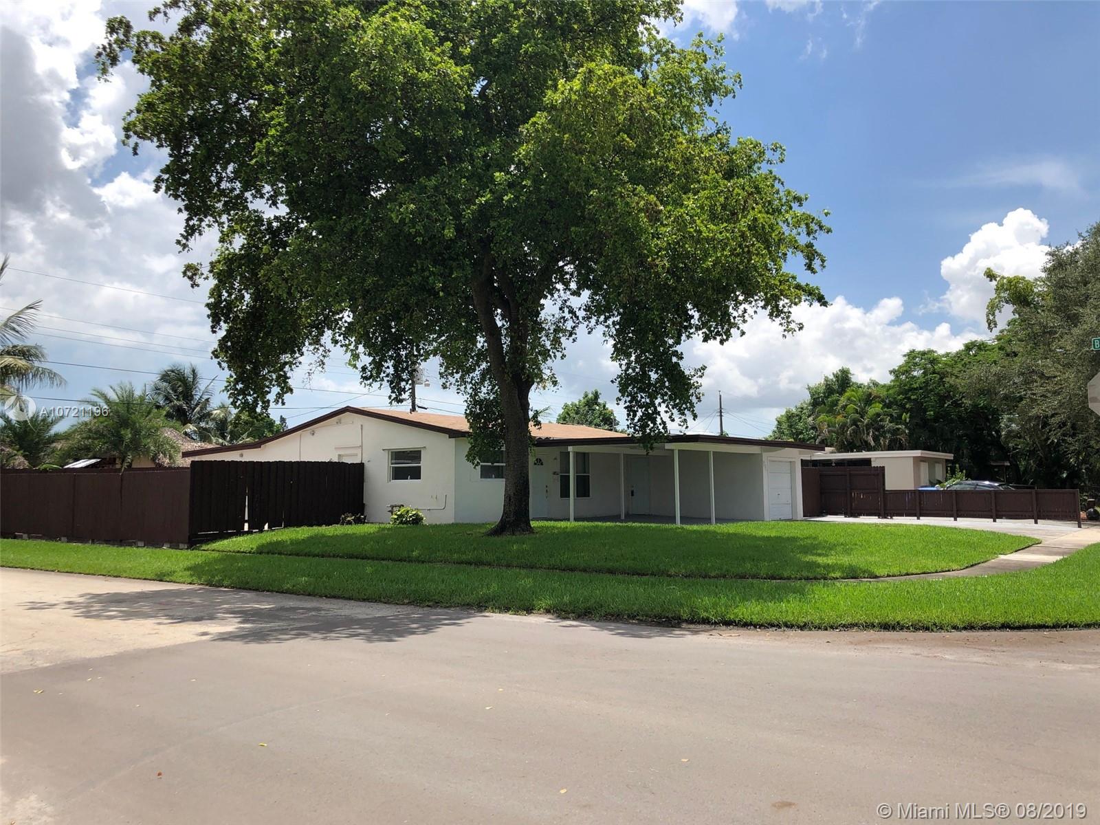 Absolutely fabulous property completely remodeled 4Beds/2Bath including but not limited to new ceramic and laminate flooring - newly remodeled bathrooms modern/contemporary style - fresh paint (interior and exterior) - new roof - contemporary kitchen style - splendid open concept for dining & living room. Located in an impressive corner lot with a beautiful front yard that includes double driveway with covered space for 1 car and a garage, wide side aisles and a large fenced backyard with enough space for a pool. One of the rooms can easily be converted into an in-law suite, with an independent entrance (as simple as placing an interior door). This property is close to all shopping, transportation & major highways. A Must See, Do Not Miss This Opportunity!
