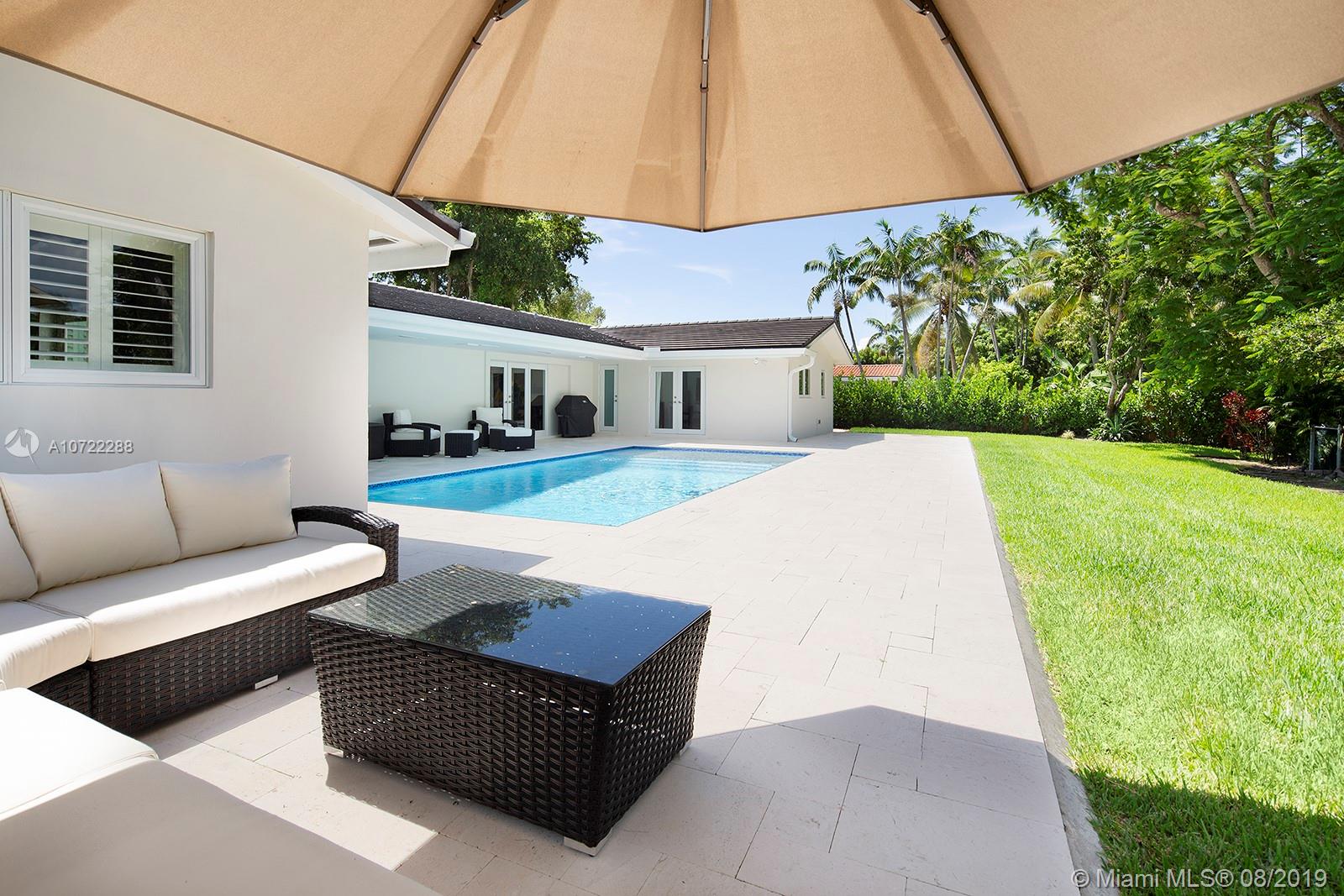 Gorgeous fully updated hard-to-find 5-bedroom family home on quiet street in desirable Palmetto Island neighborhood of Pinecrest. Modern kitchen remodeled in 2016, entire house CGI impact glass windows and doors, 2.5 year old flat tile roof w/ transferable warranty, 2018 beautiful top-of-the-line pool-patio remodel, plantation shutters, gutter system, 24" Travertine marble. LED lighting & more! Carved steps lead down to dock w/davit and navigable canals. Many more upgrades and care put into this lovely home w/high quality finishes.