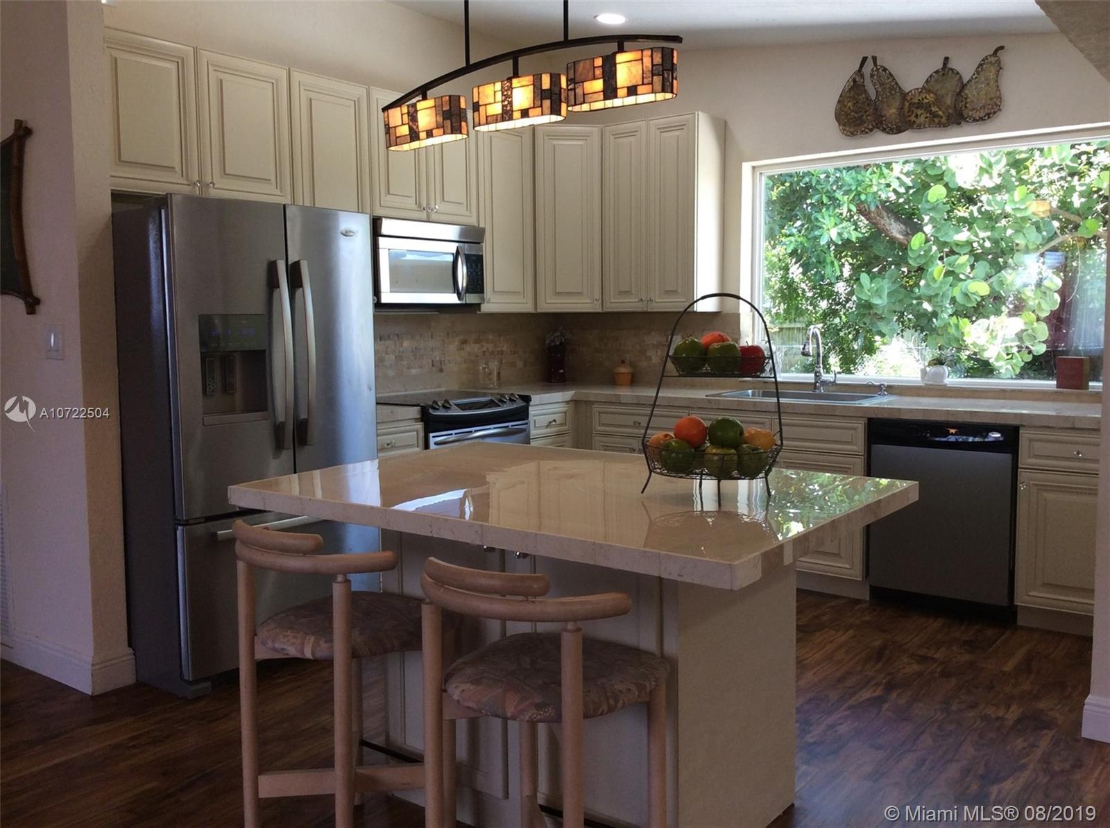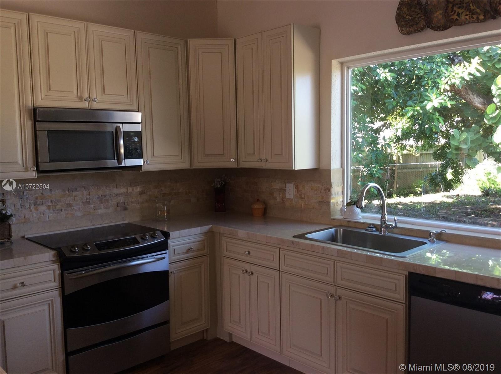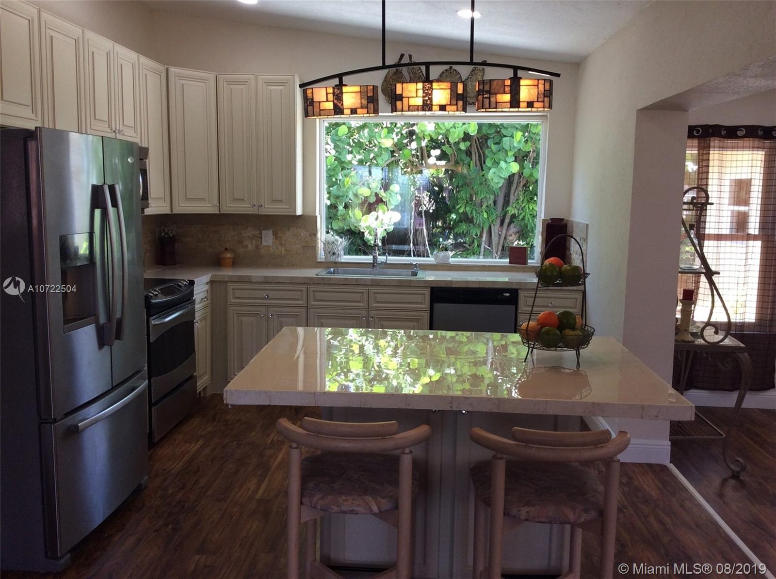 As you entered this home, all you can say is WOW! Large living and kitchen combo area with a spacious separate dining space. Tastefully upgraded kitchen with new wood cabinets and gold onyx backsplash , eat in seating island with storage , very large picture window from kitchen sink looking to the beautiful backyard foliage . High Cathedral ceilings, tankless hot water system, Oversized master bedroom suite with double sinks and separate tub area. A must see in a desirable location easy access I95, I 75 and 826. Close to Dade county line.