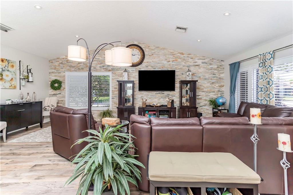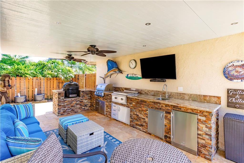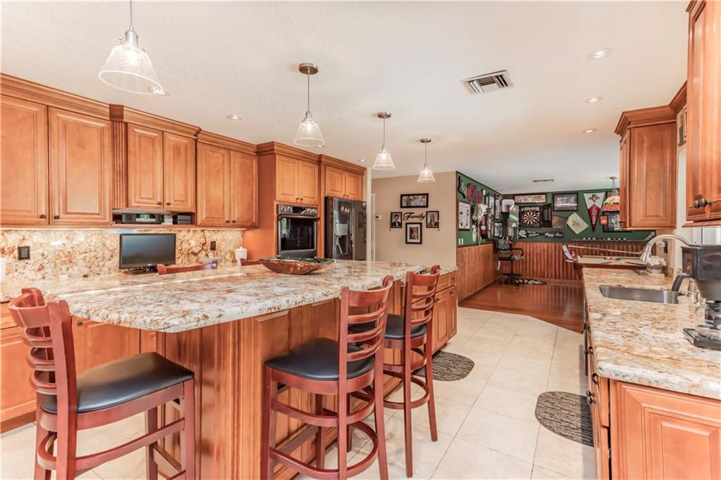 A must see Immaculate 4/2 single family pool home with upgrades galore. Property features include tile throughout living areas, huge granite kitchen with all new black stainless appliances, double oven, HUGE custom wood cabinet kitchen, under cabinet lighting, cooking island, laundry room, remodeled bathrooms with large/frameless shower, cabana bath, heated pool w/waterfall & salt system, large paver driveway & travertine tiled pool area, 2 yr old A/C, 3 yr old hot water heater, custom covered outdoor kitchen with granite top & backsplash, sink, infrared grill, Primo ceramic cooker, fridge, skillet, outdoor hot/cold shower, security cameras, outdoor lighting, accordion shutters, shed, lush landscaping throughout w/private fenced back yard with artificial play area & 13 yr new s-tiled roof.