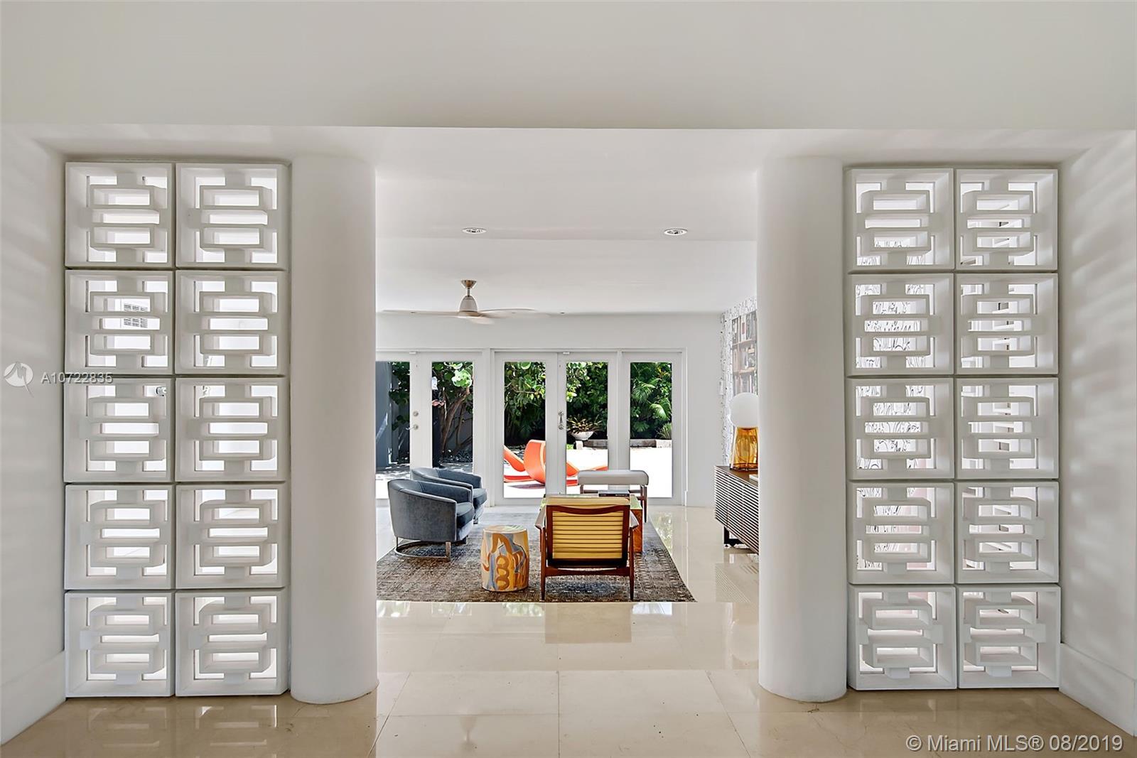 Located on one of Miami Shores Grandest Boulevards, this exquisite MiMo house offers expansive living spaces with tropical walled gardens & private pool area. Walk to Miami Shores Golf Course & easy access to all the amenities that Miami Shores offers. The foyer opens to sunny living room w/ 12’ high ceilings, then to a glamorous family room w/ French doors to the pool. The 4 bedrooms - 2 ensuite- are located at the 4 corners offering privacy. Conservatory-like office space with windows all around to enjoy the traditional 1940’s palm court. Large kitchen & open sunlit breakfast space overlooking garden. Two driveways – in front and in rear - plus 2-car garage. The pool areas unique architectural elements – Mission style arches – provide the feeling of being at an Italian Summer Villa.