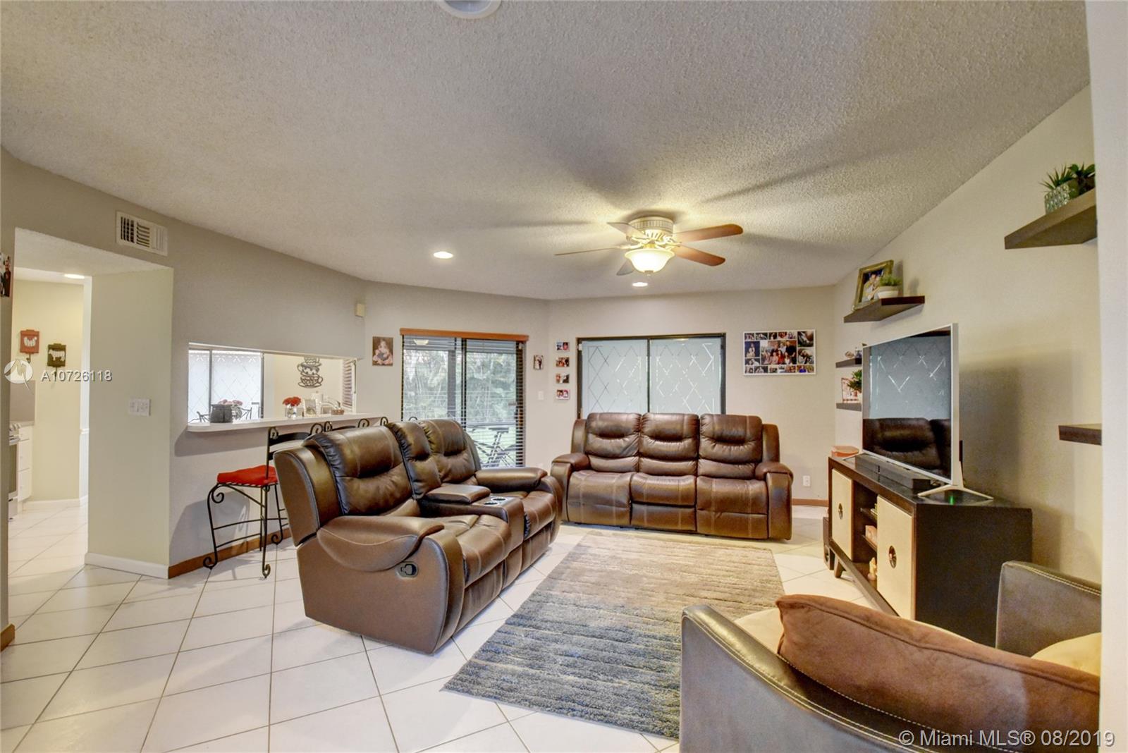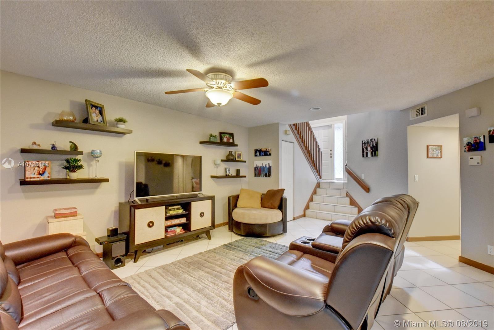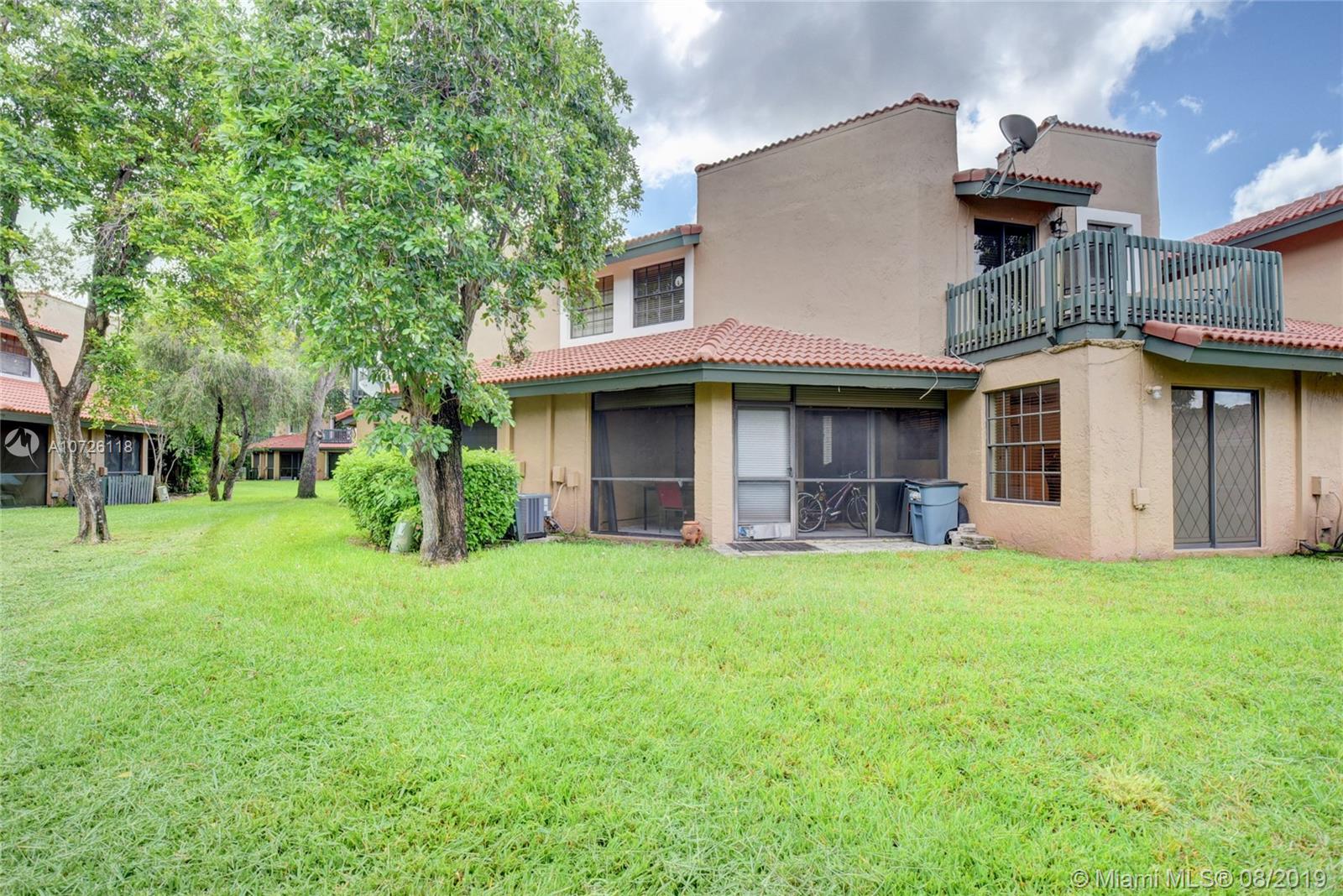 A must see. This immaculate spacious 3 bedroom/3 bathroom townhome in a gated community located in Plantation. Tile floors on living area and laminate floors upstairs. Master features a private balcony overlooking large backyard. Walking distance to shopping and close to highways, dining, parks and recreation. Pet friendly community with clubhouse, pool, playground and basketball court. 2 year old AC and full washer/dryer. 2 parking spaces with plenty of guest parking.