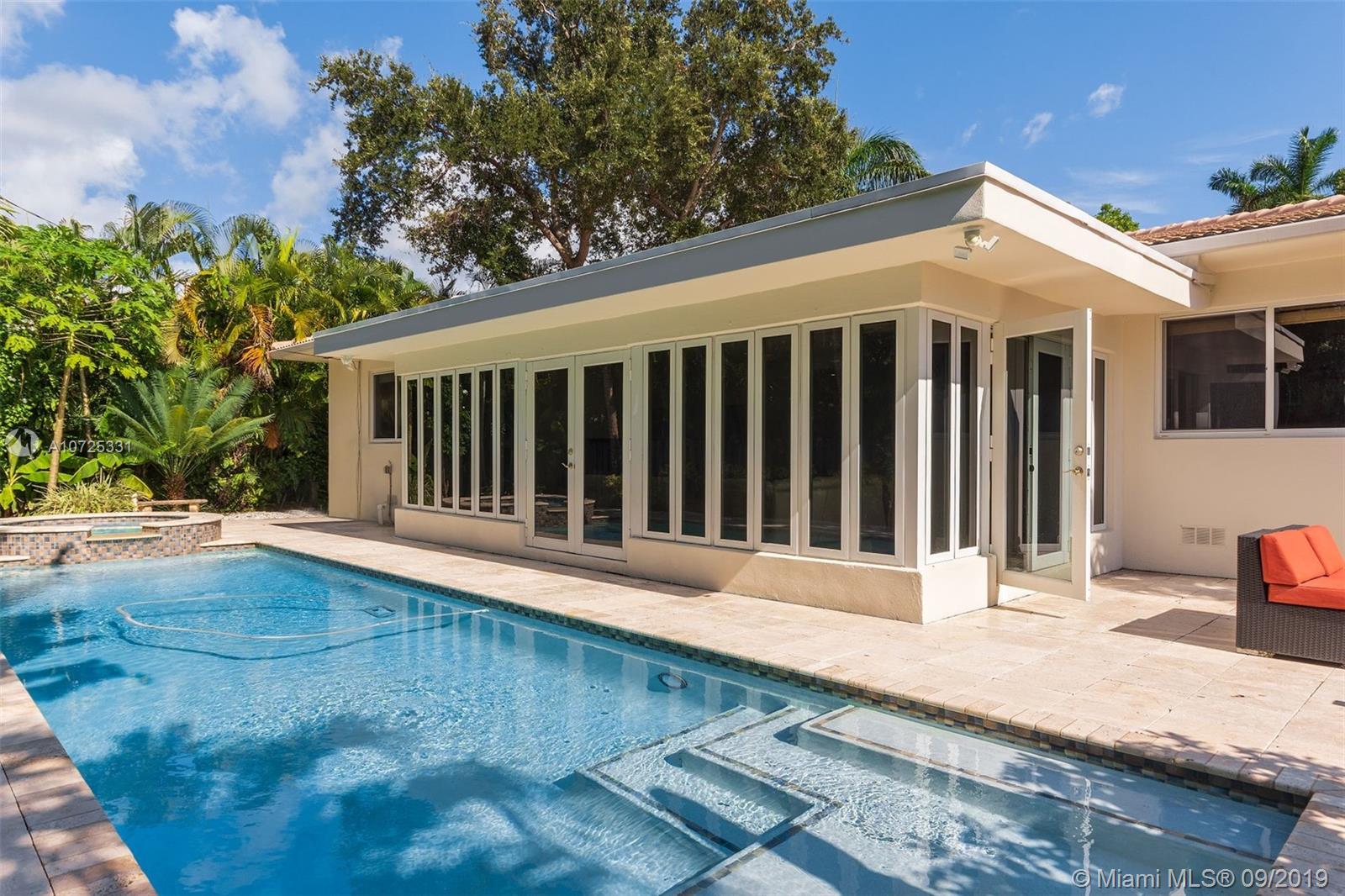 MIAMI SHORES MID CENTURY MODERN EAST OF US-1. 3 BEDROOMS, 2 BATHS, TWO CAR GARAGE AND POOL WITH SPA. BIG OPEN LIVING SPACES MAKE THIS HOME PERFECT FOR ENTERTAINING GUESTS. FAMILY ROOM OVERLOOKS THE POOL AND TROPICAL GARDEN. HUGE EAT-IN KITCHEN WITH CUSTOM WOOD CABINETS AND TOP OF THE LINE APPLIANCES. INSIDE LAUNDRY ROOM WITH STORAGE. MASTER BEDROOM HAS UPDATED PRIVATE BATH AND WALK-IN CLOSET. 2 BIG GUEST BEDROOMS SHARE A FULLY RENOVATED BATH. IMPACT WINDOWS, NEWER ROOF, HEATED POOL AND SPA. GREAT PARKING, LOTS OF STORAGE, QUIET NEIGHBORHOOD. MOVE IN CONDITION. LOW MAINTENANCE HOME... ALL THE WORK HAS BEEN DONE FOR YOU.