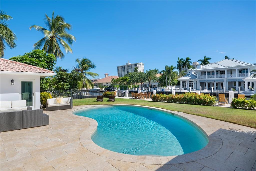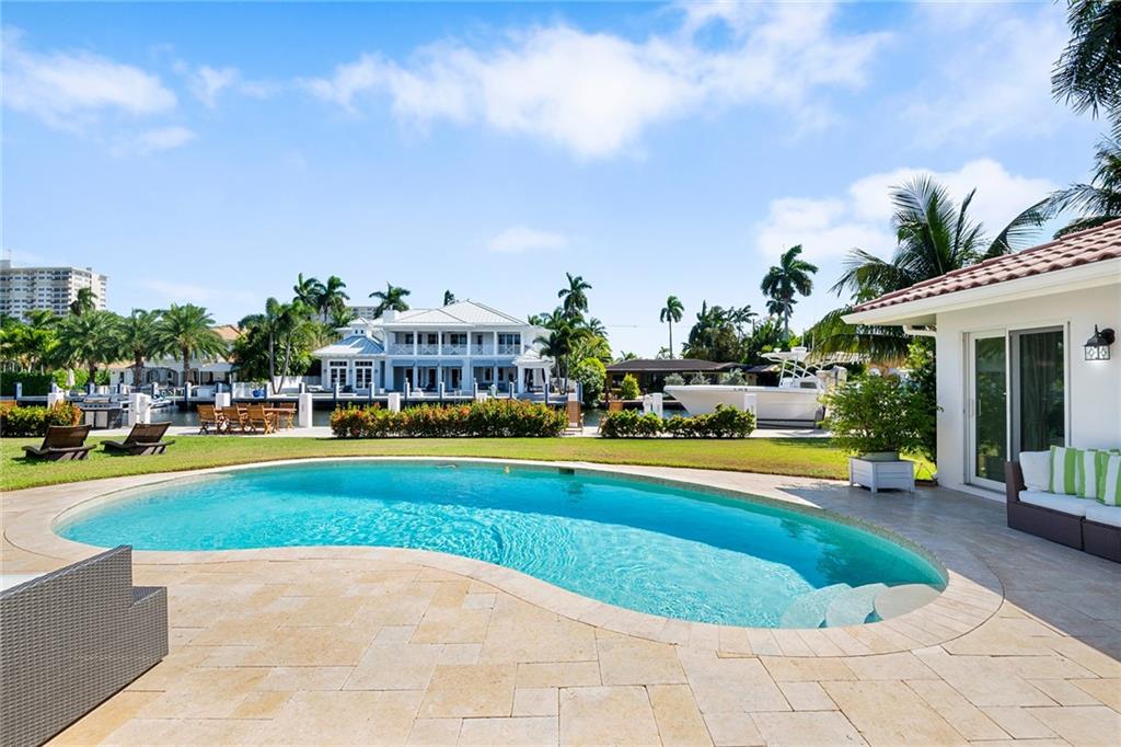 BOATERS DREAM HOME EXTRA LARGE LOT AND A HALF 13,500 SQ FT LOT Located in Exclusive security guard gated Seven Isles neighborhood of the Las Olas Isles. with 24 hour guard and roving attendant. This tastefully Updated 3bedroom 3 bath Ranch home sits on almost 115 ft of waterfront, with newer concrete raised dock with boat lift. Dockage for large yacht or multiple boats & watercraft.. This home has been updated with new Volume ceilings and chefs kitchen, marble floors and high impact windows and doors. XXXLarge master bedroom suite.