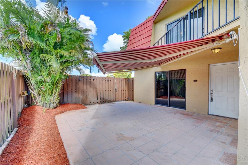 Wow! This is STUNNING! IMPACT windows throughout and probably the most stylishly upgraded 2, 2.5 in Boca Rio! Featuring a gorgeous new kitchen, natural travertine countertops, A massive built in bar with extra STORAGE. Remote control extra large retractable awning- perfect for outdoor living! Smooth ceilings throughout. 5"baseboards, new designer bathrooms with barn door and double vanities. Custom tile and glass walls. Both bedrooms has en-suites. Tile on the diagonal and rich cherrywood laminate upstairs. 30 second stroll to the pool, tennis and racket ball. Pet and family friendly, easy access to Turnpike. LOW HOA. Lots of guest parking