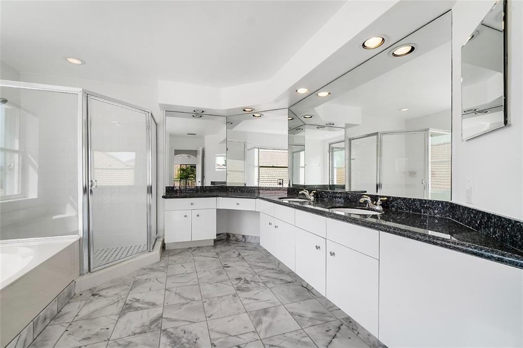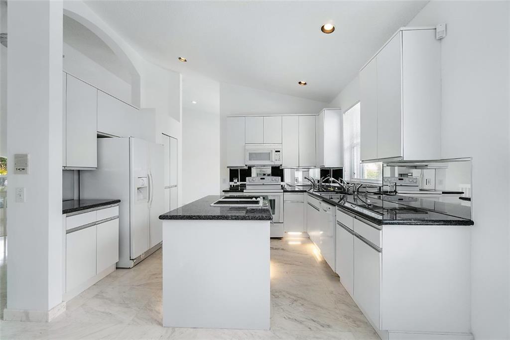 Beautiful 2 level contemporary home with lakefront views. Double door entry to foyer, with Carrara marble floors. Formal dining room. Kitchen Island, Jenn-Aire grill, Granite, New Stainless Steel Appliances. New Washer and Dryer. Great dinette for everyday meals overlooking the family room. Custom contemporary wall unit w/ wet bar. One bedroom on the first floor. Master bedroom w/en-suite bathroom. Large walk-in closet. Master bedroom's balcony for enjoying the lake view. Two nice size bedrooms on the second level as well as a full bathroom w/laundry chute. Accordion Hurricane Shutters. Top-rated schools. Reasonable HOA : Manned Gated, pool, and spa, full exercise room, Basketball, tennis courts, tot playground High-speed internet & Basic cable. AS-IS CONTRACTS ONLY. See supplement.